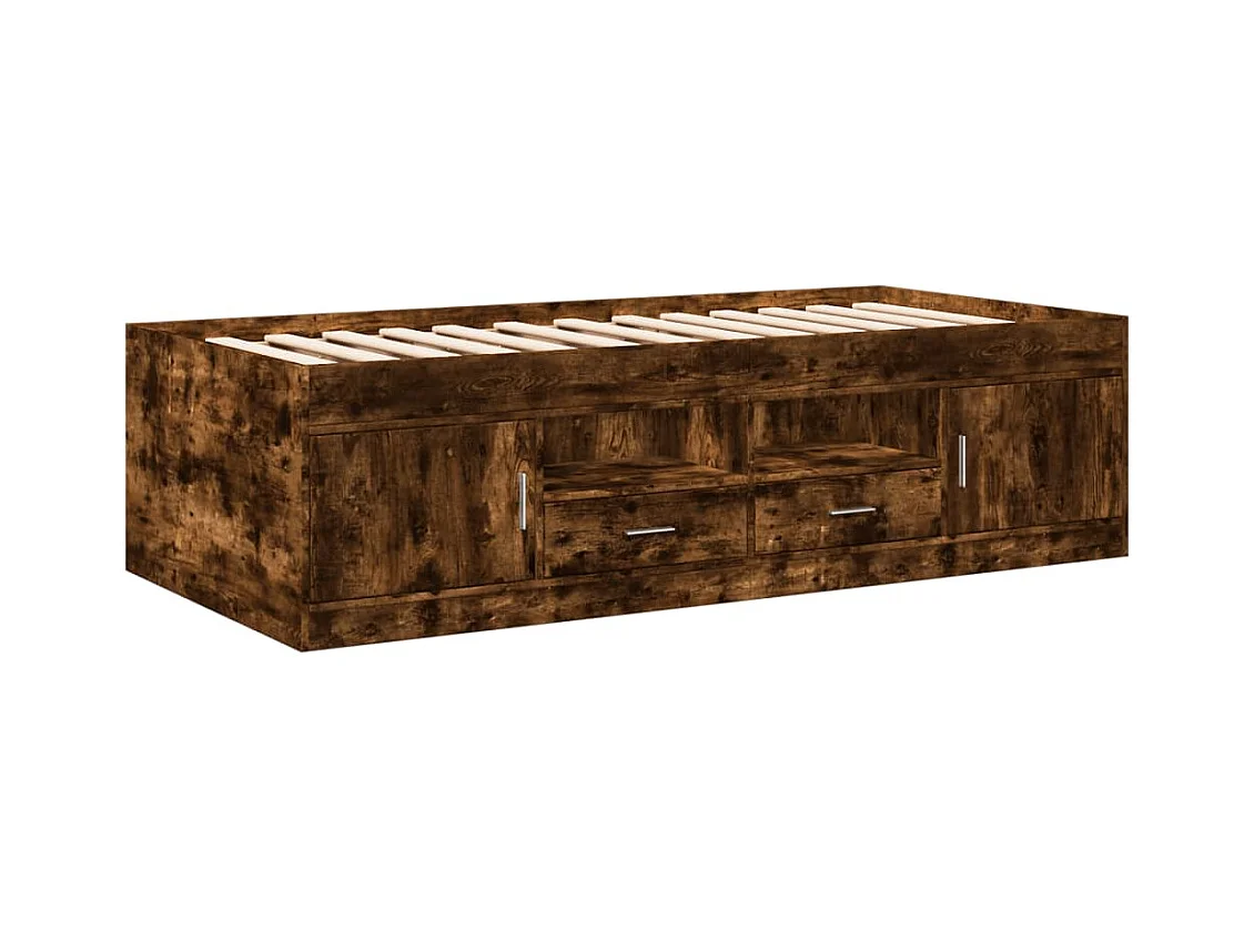 Lit de jour et tiroirs chêne fumé 90x200 bois d'ingénierie