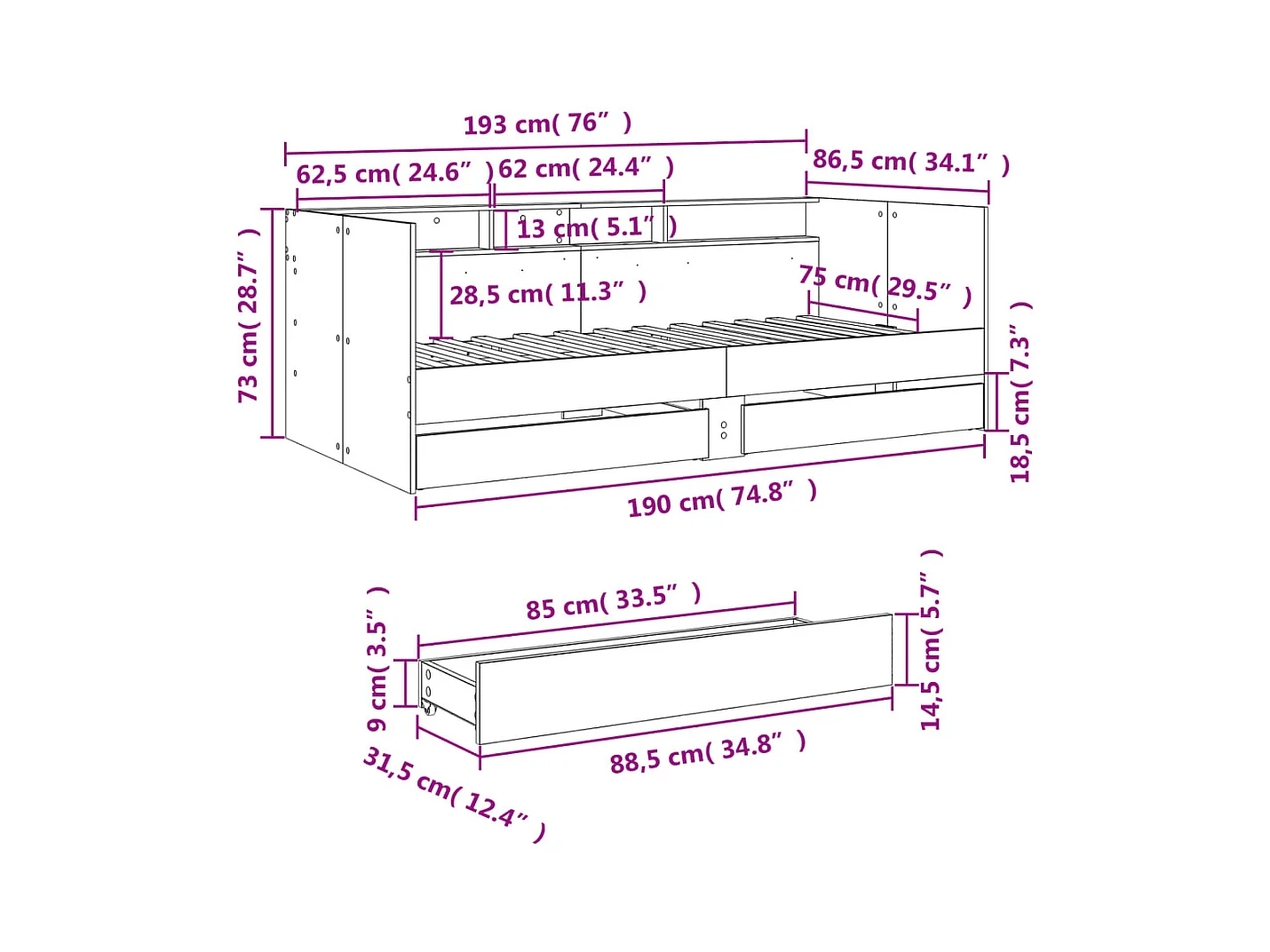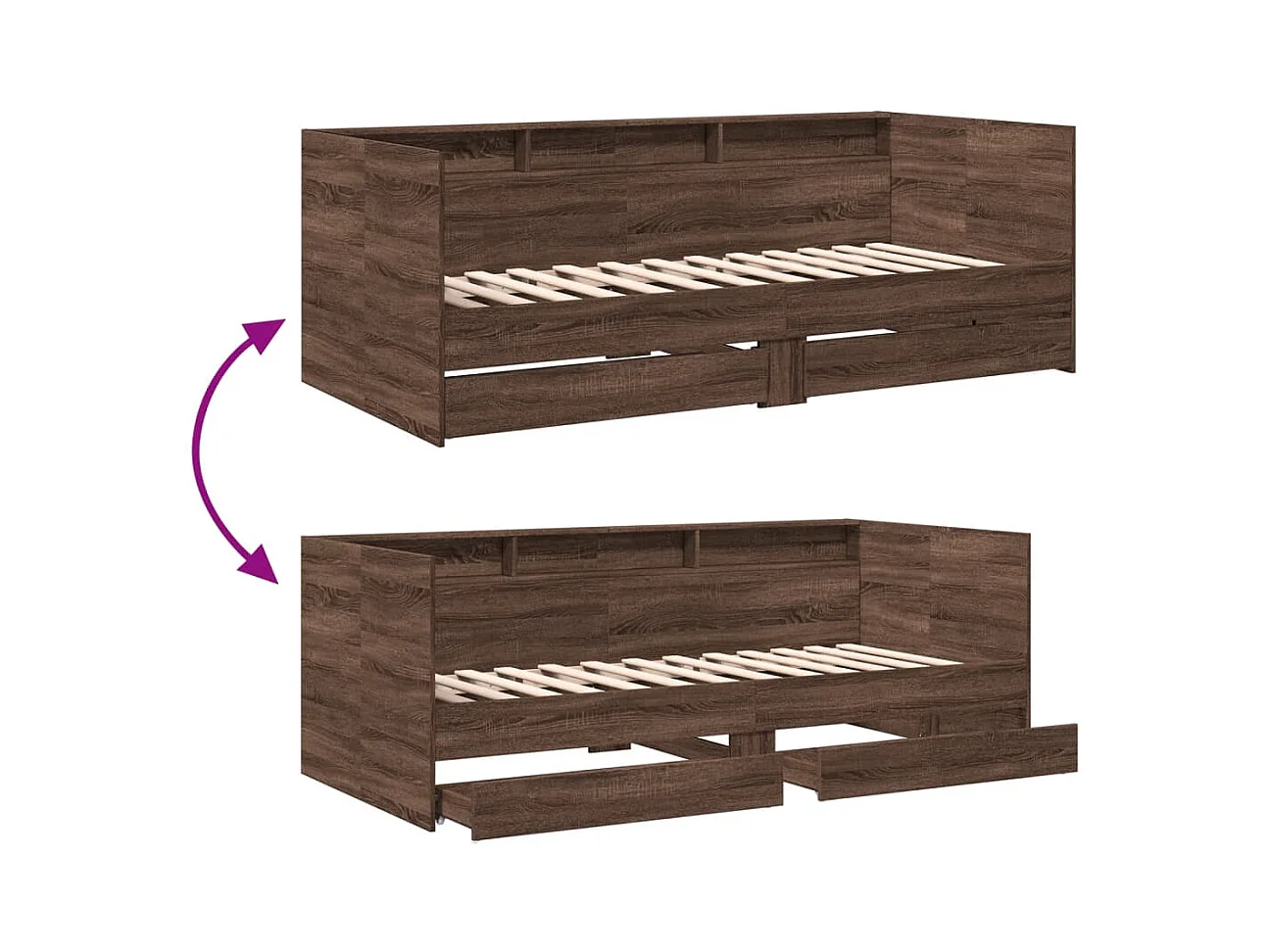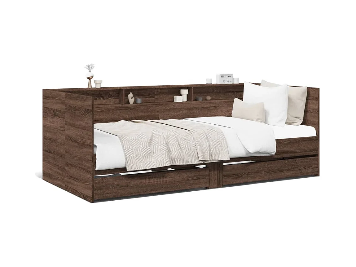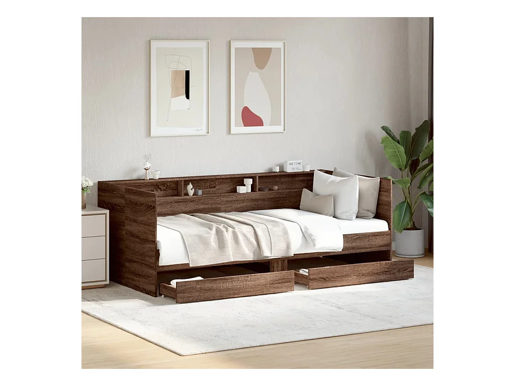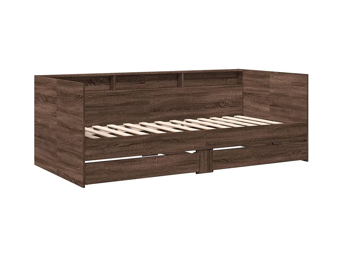 Lit de jour et tiroirs chêne marron 75x190 bois d'ingénierie