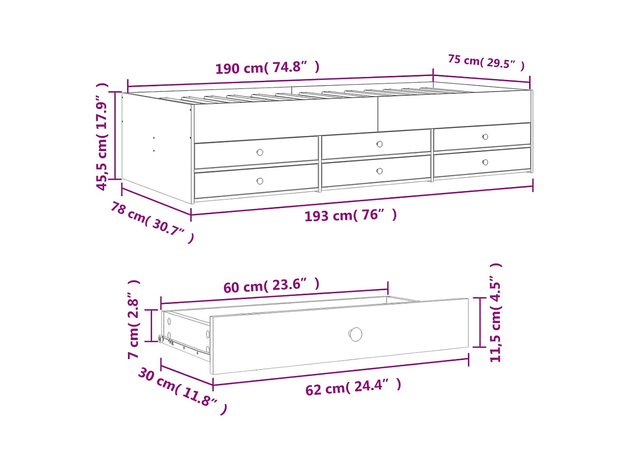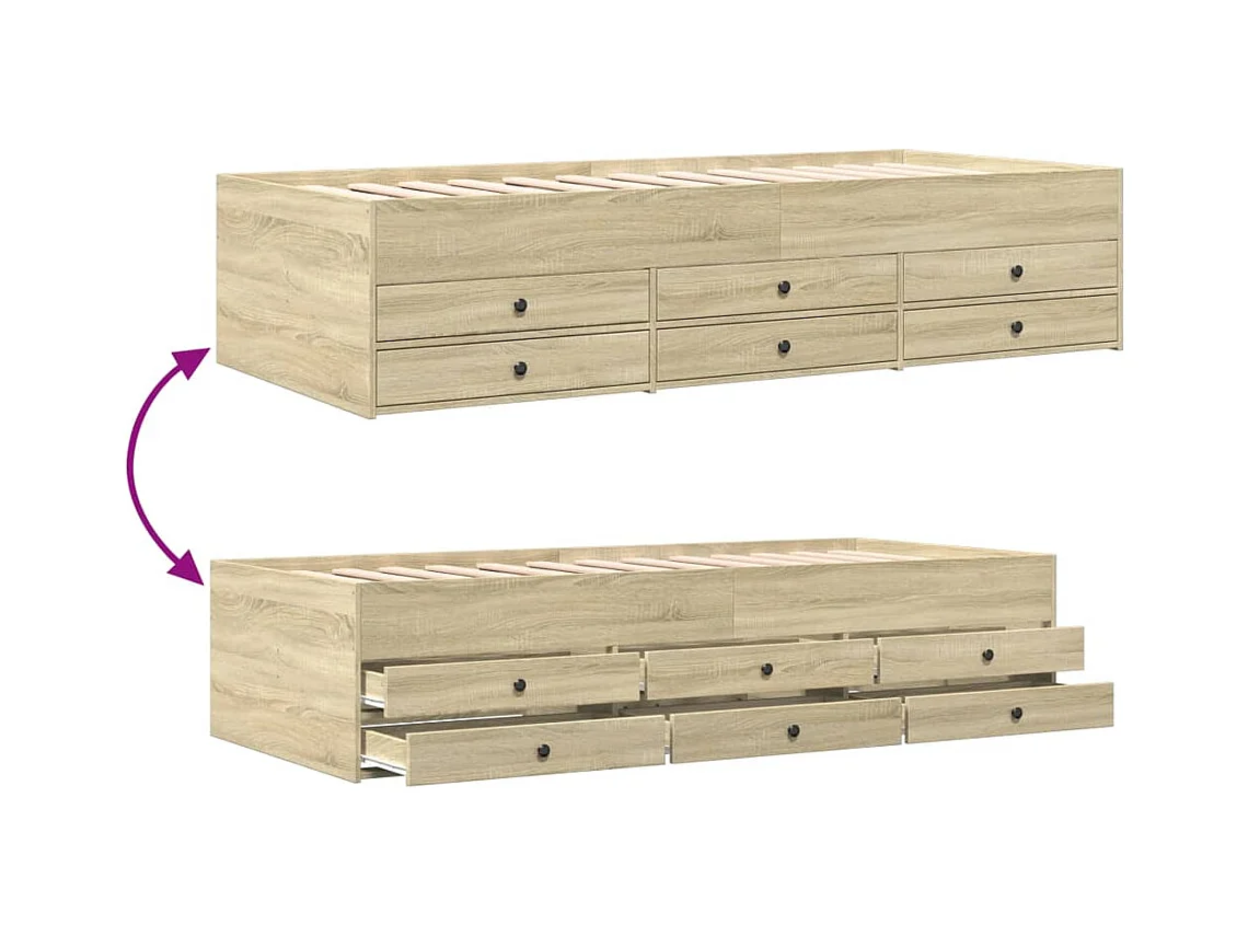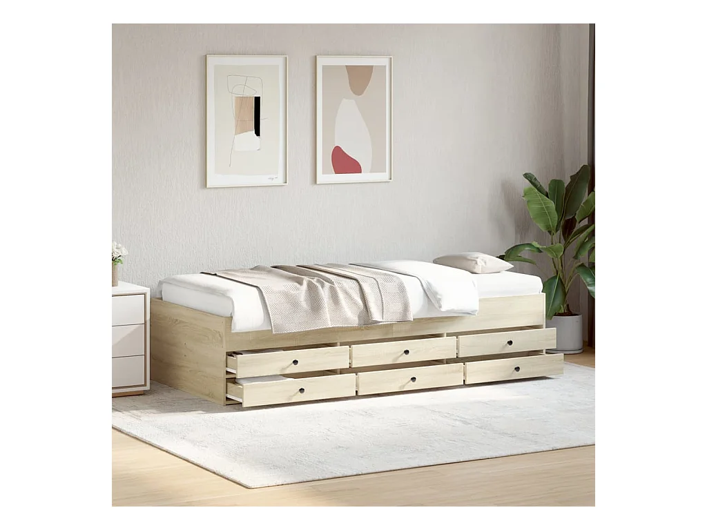 Lit de jour et tiroirs chêne sonoma 75x190 bois d'ingénierie