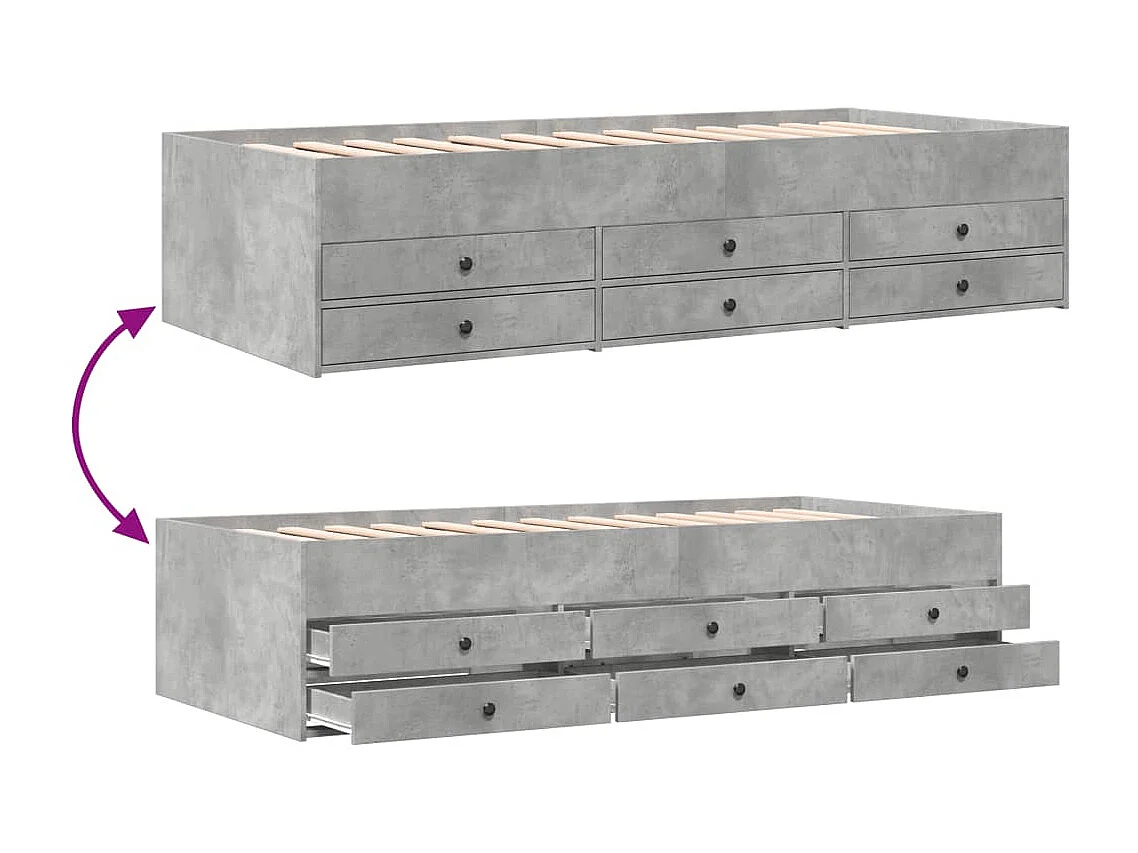 Lit de jour et tiroirs gris béton 90x200 bois d'ingénierie