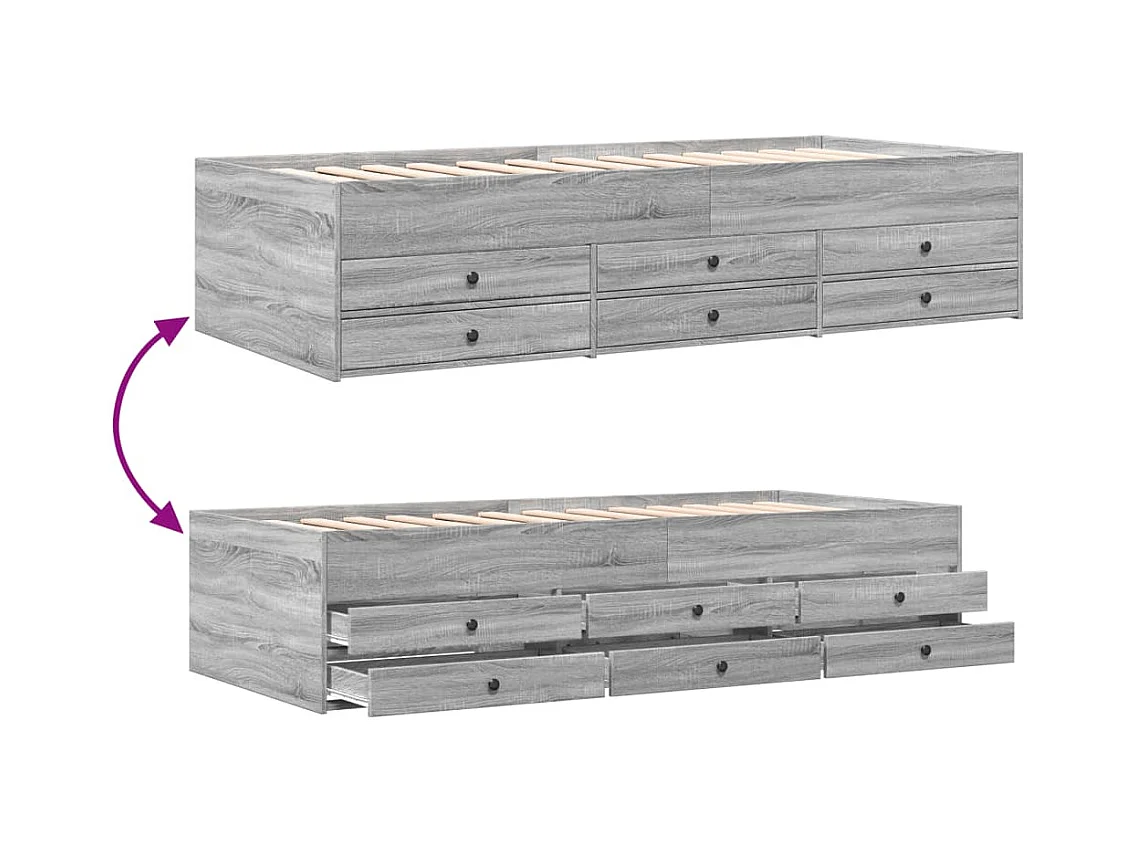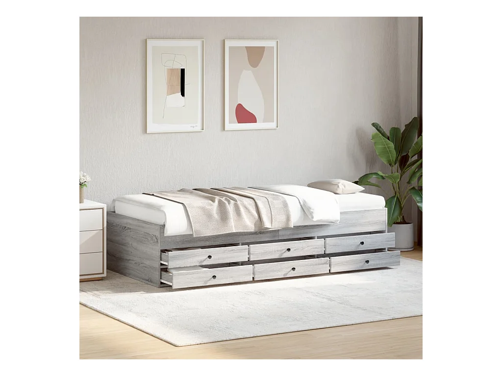 Lit de jour et tiroirs sonoma gris 75x190 bois d'ingénierie