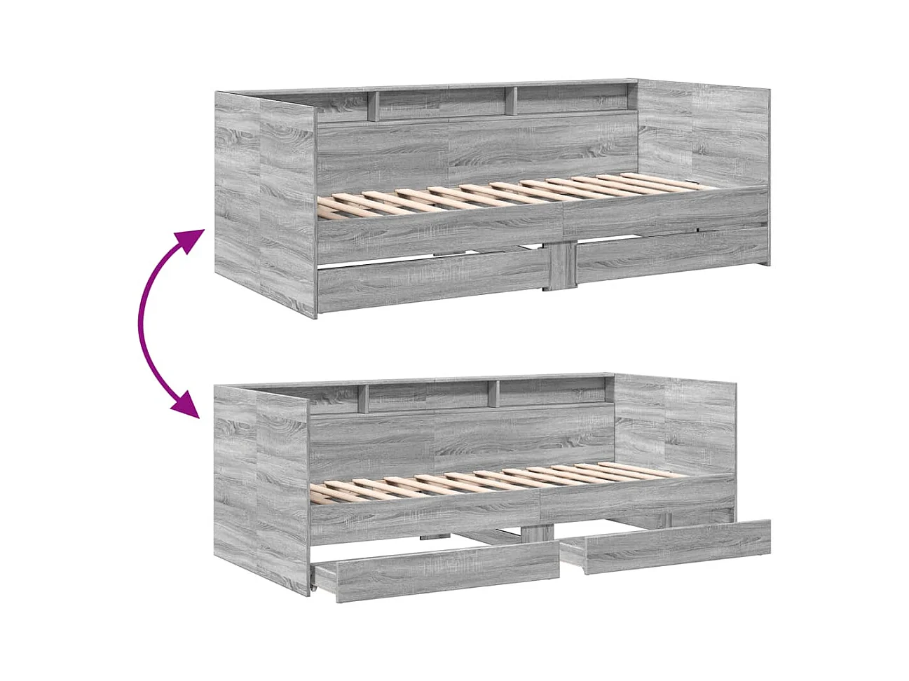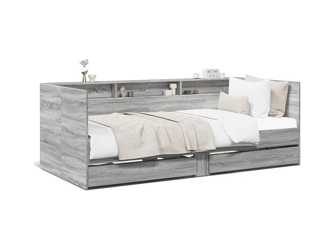 Lit de jour et tiroirs sonoma gris 90x190 bois d'ingénierie