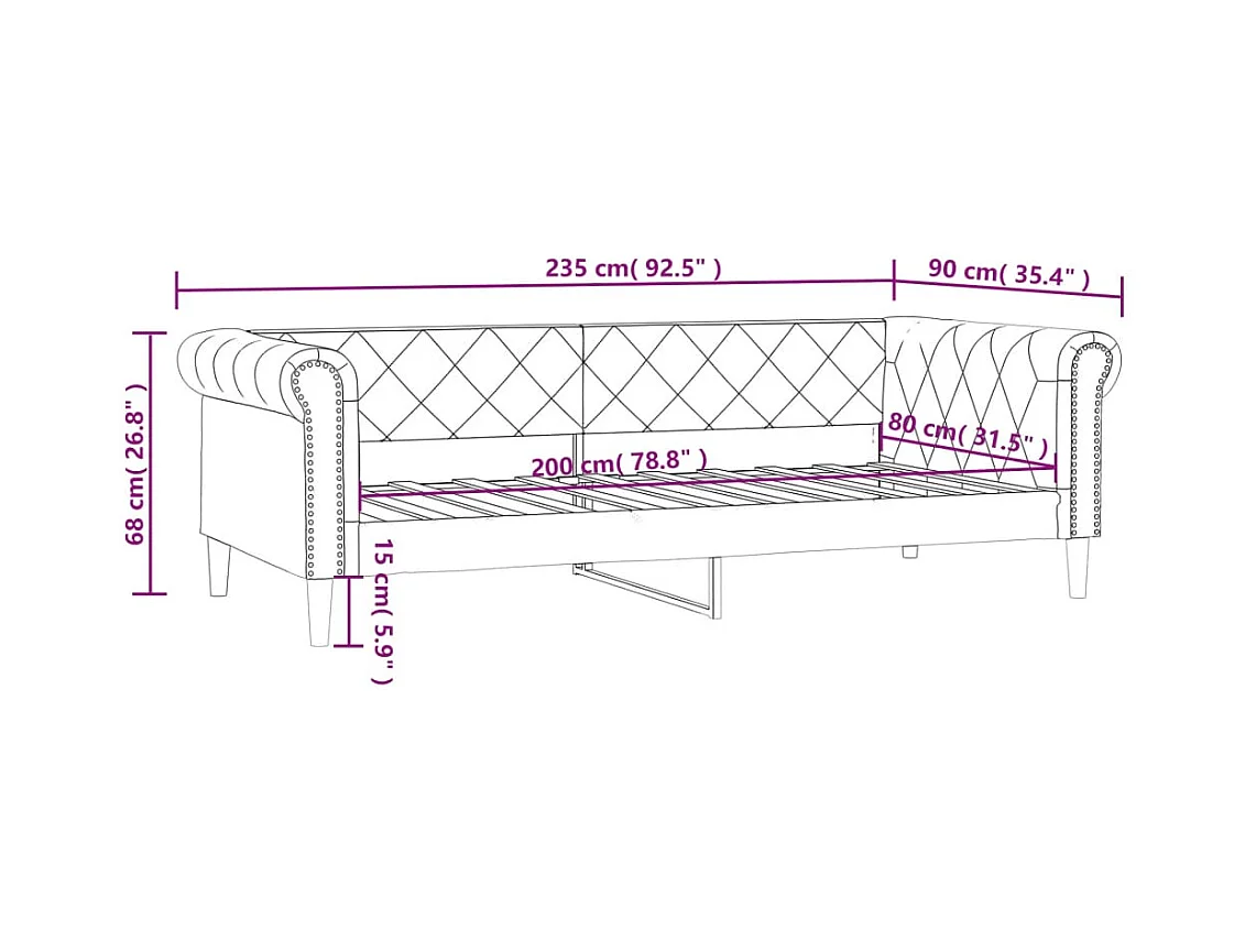 Lit de jour noir 80x200 similicuir