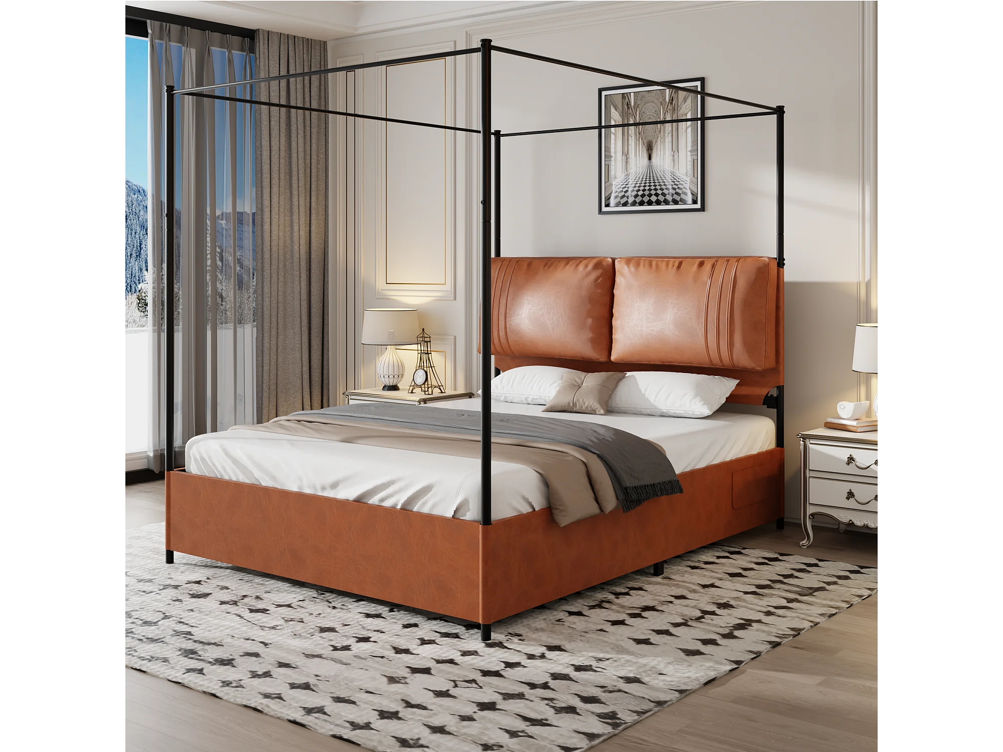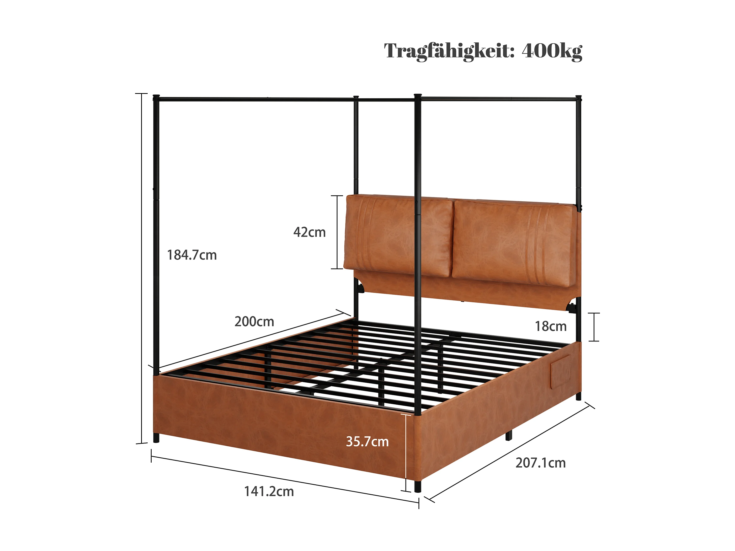 Lit de luxe moderne, 140 x 200 cm, cuir et métal, avec 4 sommiers réversibles