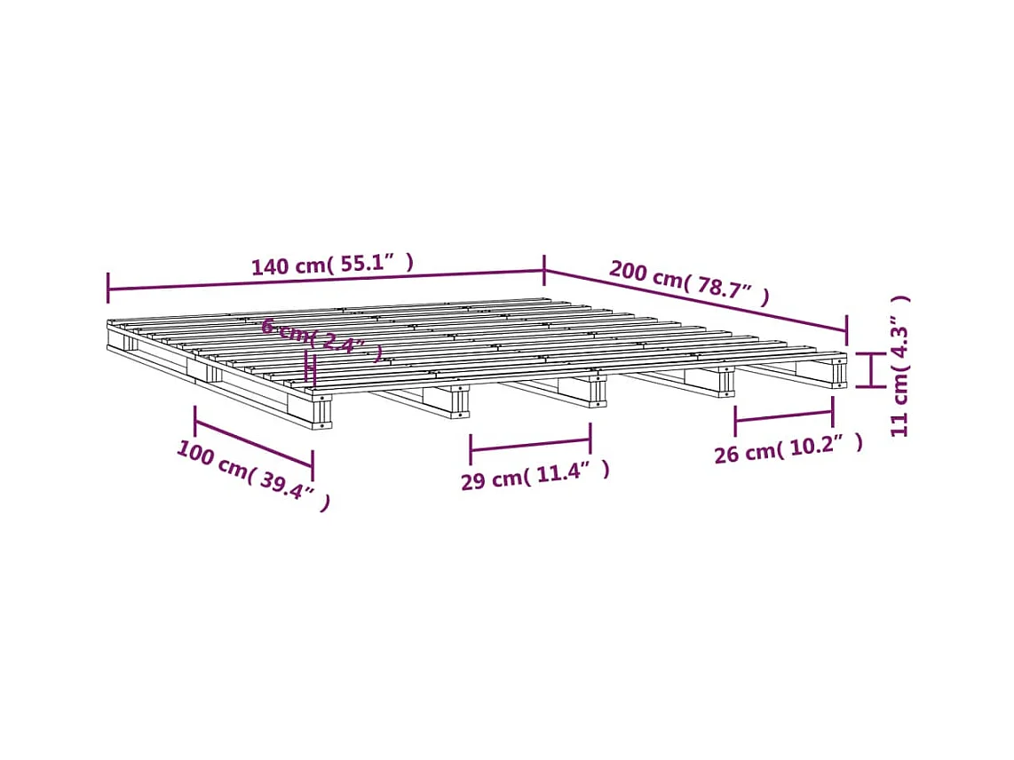 Lit de palette 140x200 cm bois de pin massif