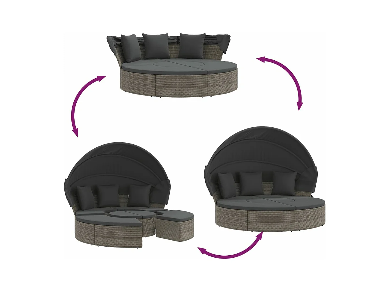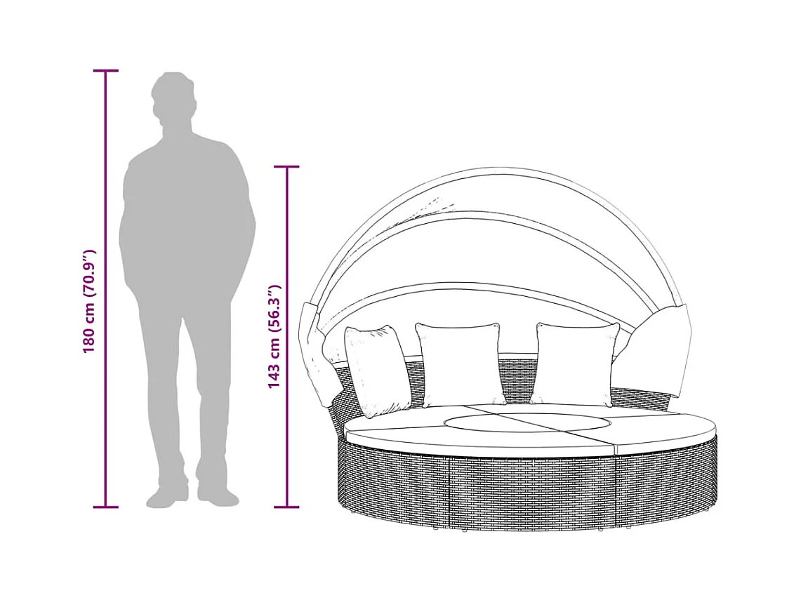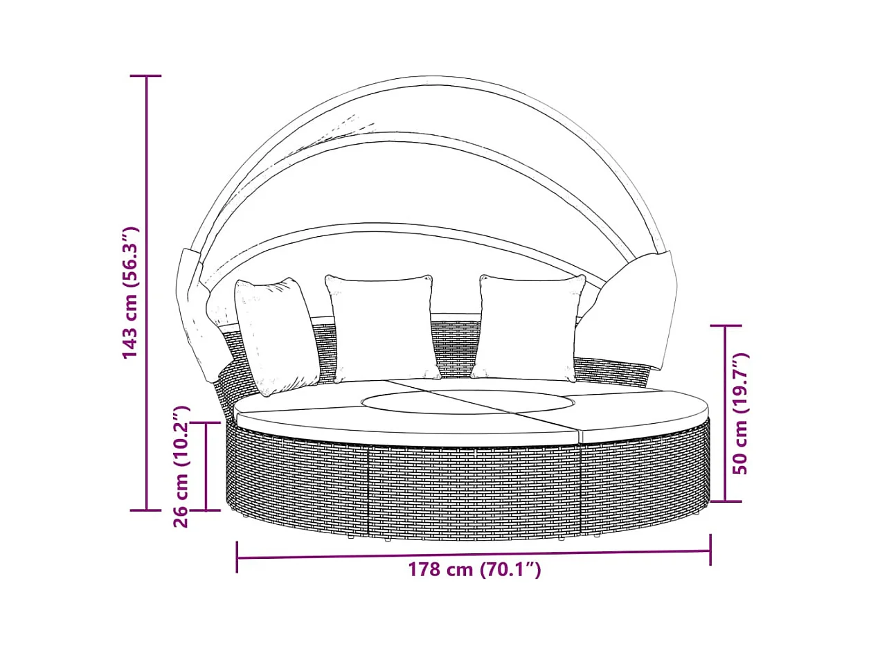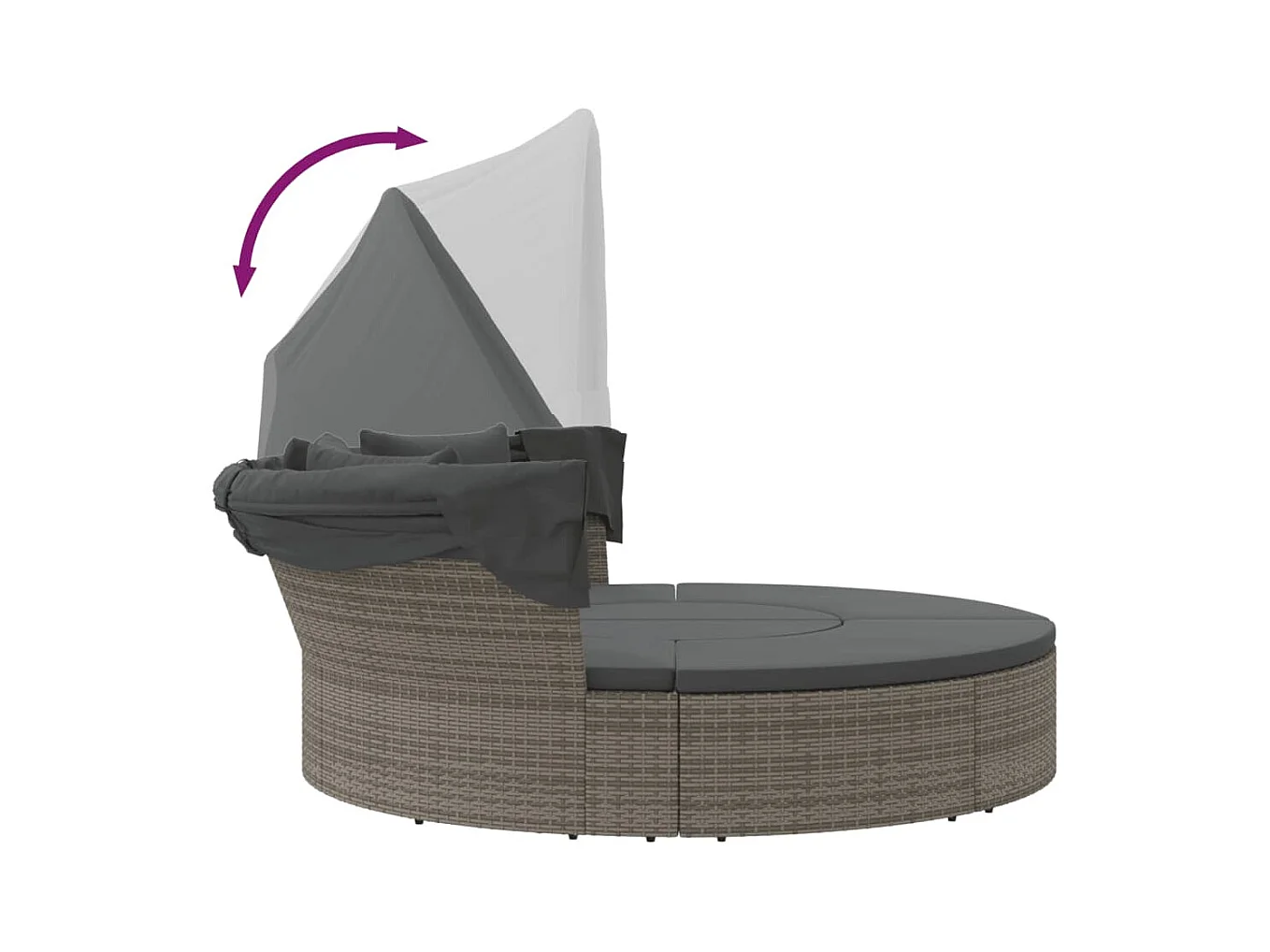 Lit de repos d'extérieur avec auvent et coussins résine tressée