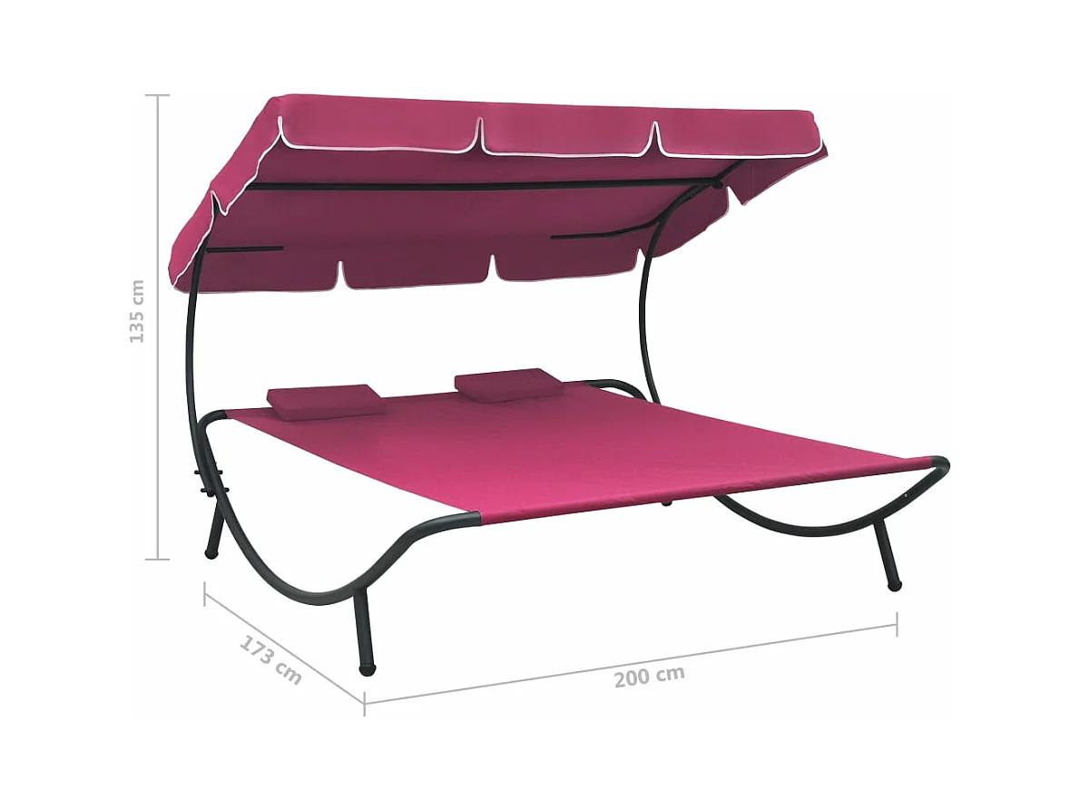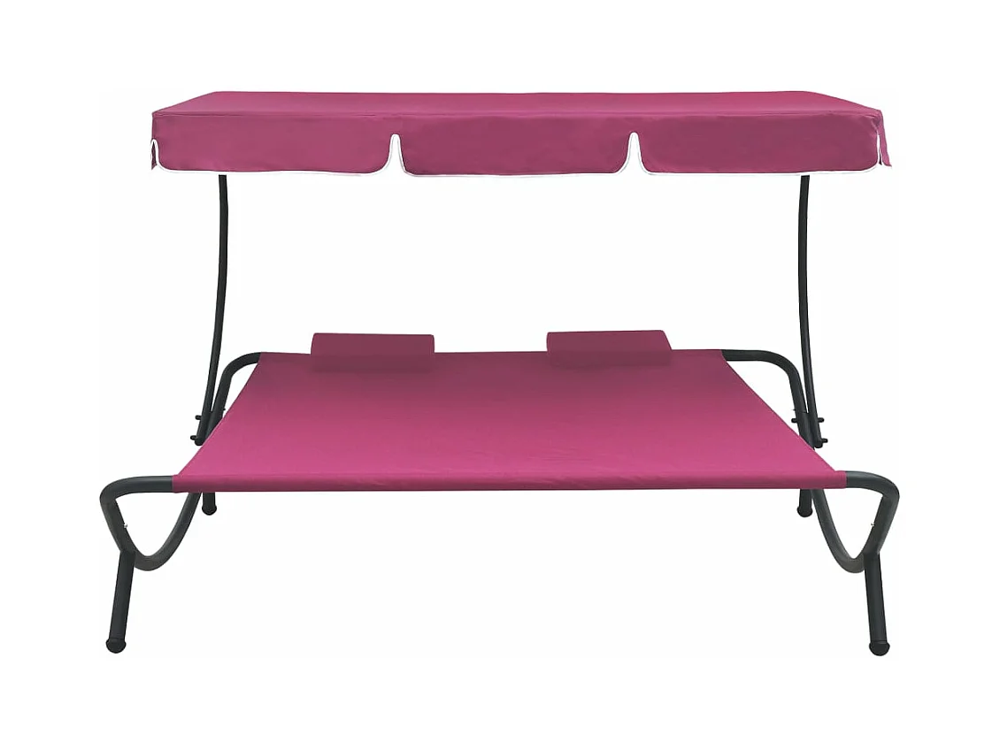 Lit de repos d'extérieur avec auvent et oreillers Rose