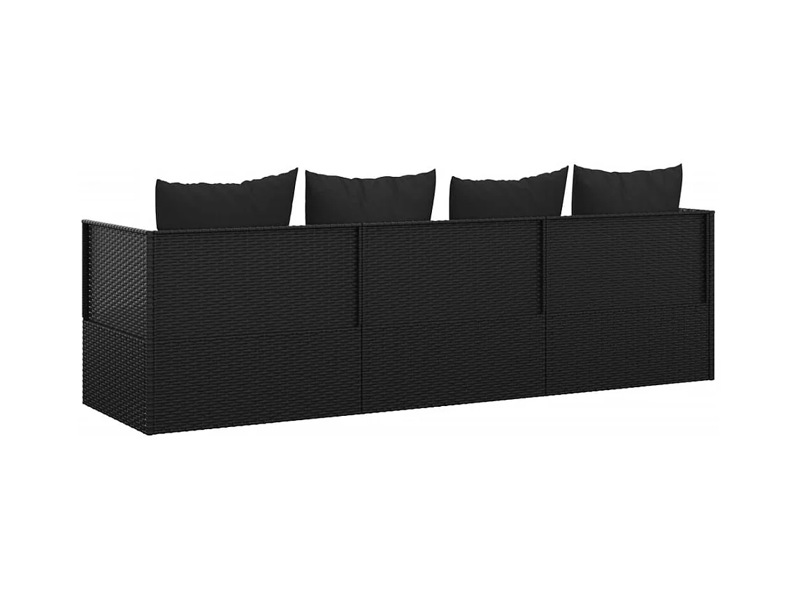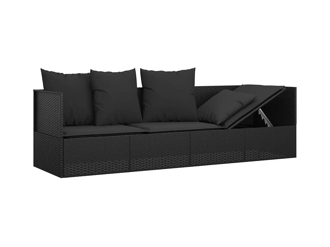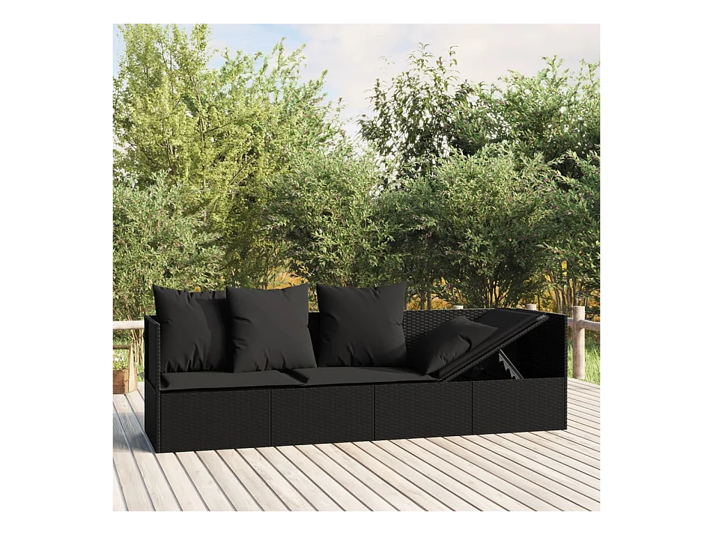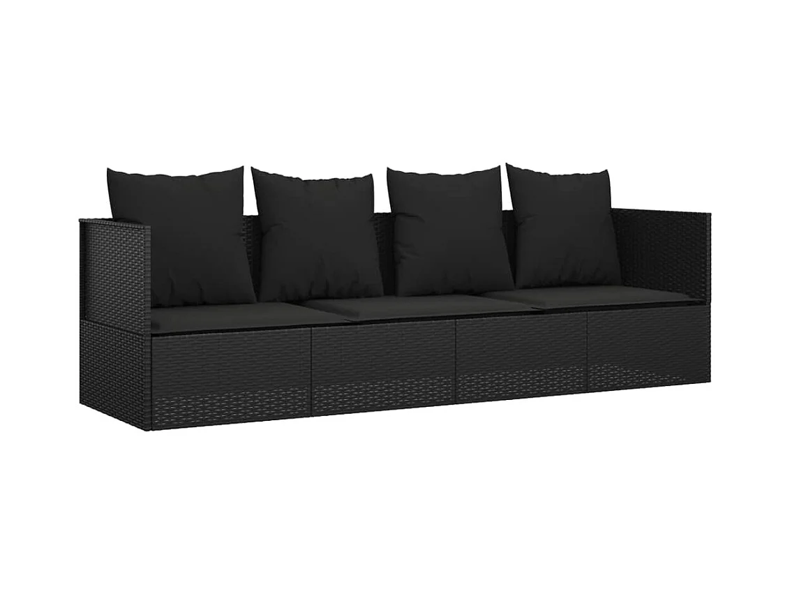 Lit de salon d'extérieur avec coussins Noir Résine tressée
