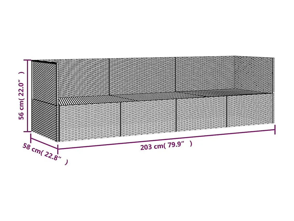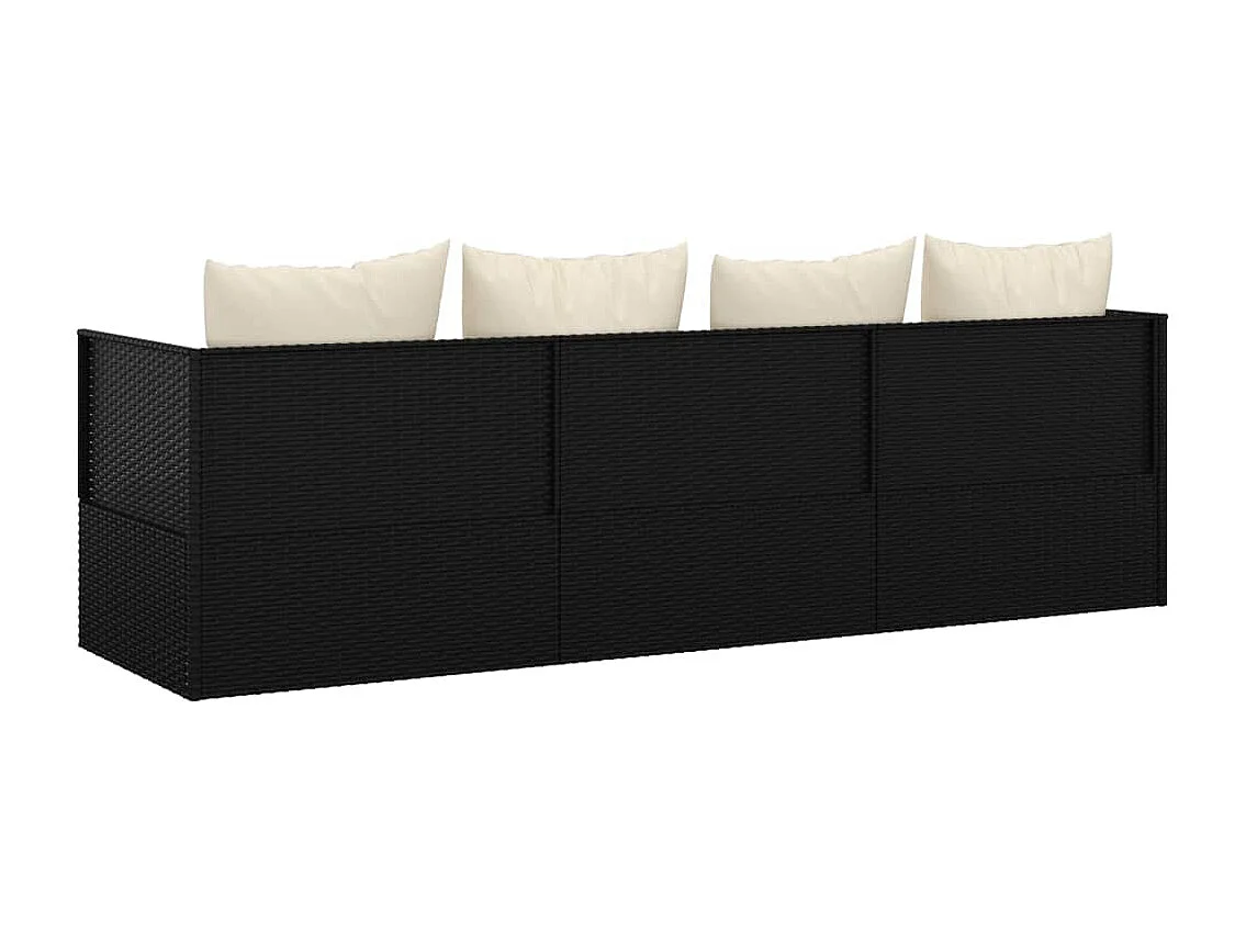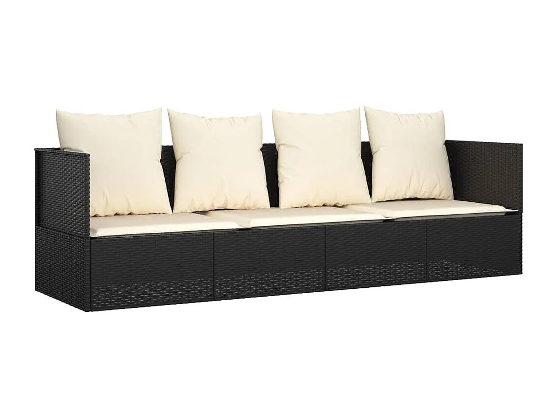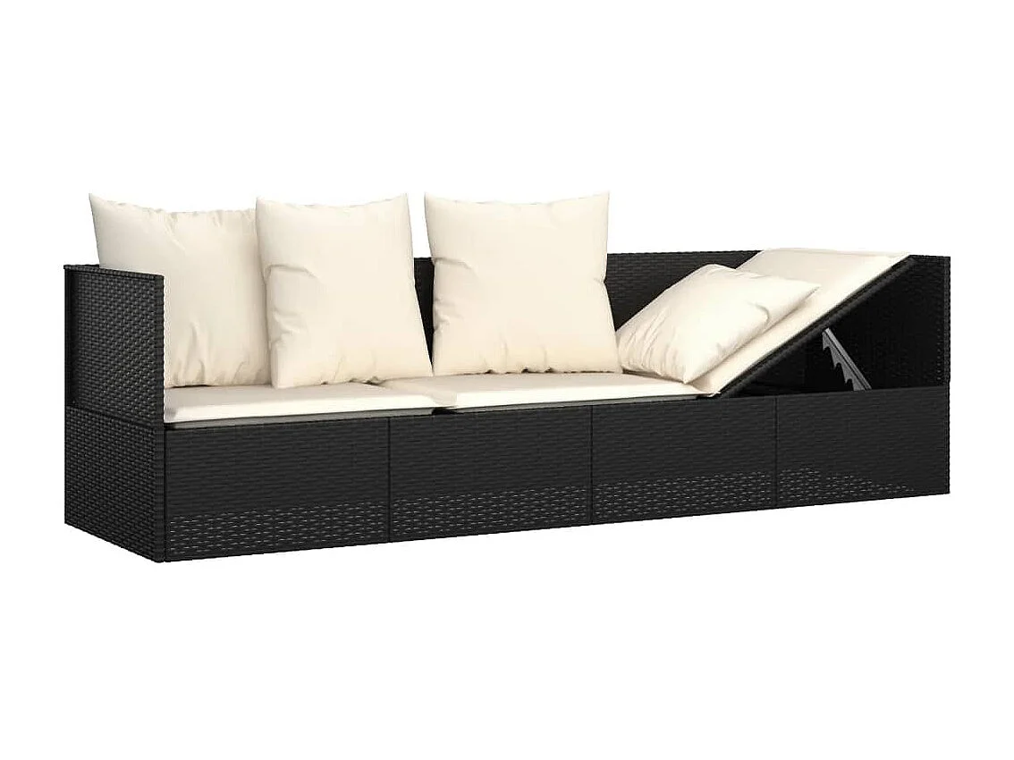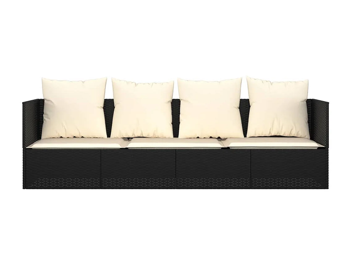 Lit de salon d'extérieur avec coussins Noir Résine tressée