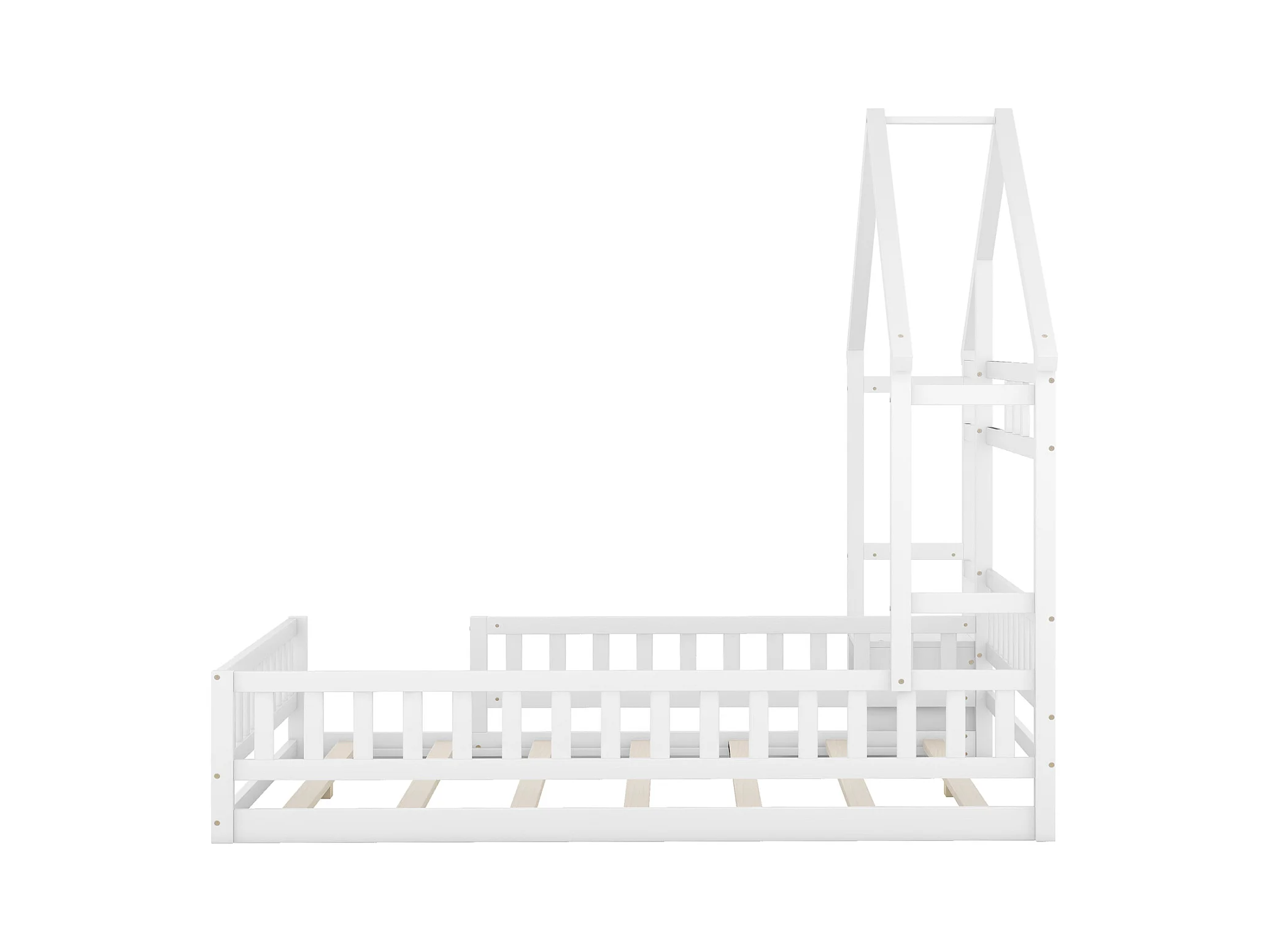Lit de sol, 140 x 200 cm, avec protection anti-chute, avec table de chevet et ménage décoratif,blanc
