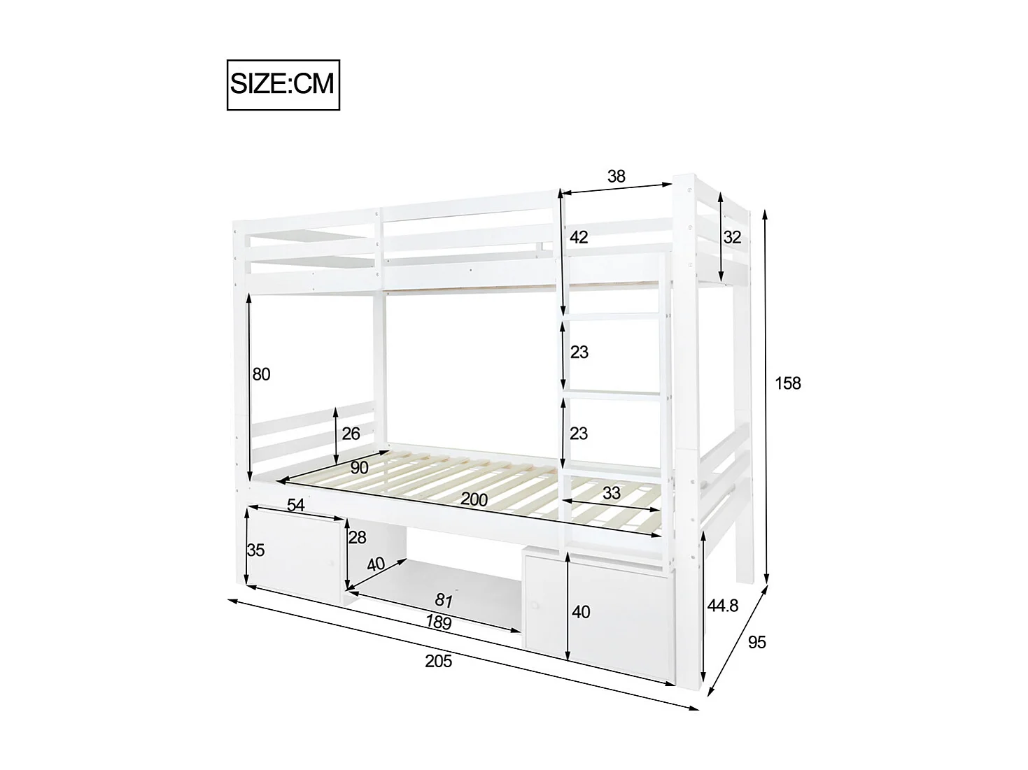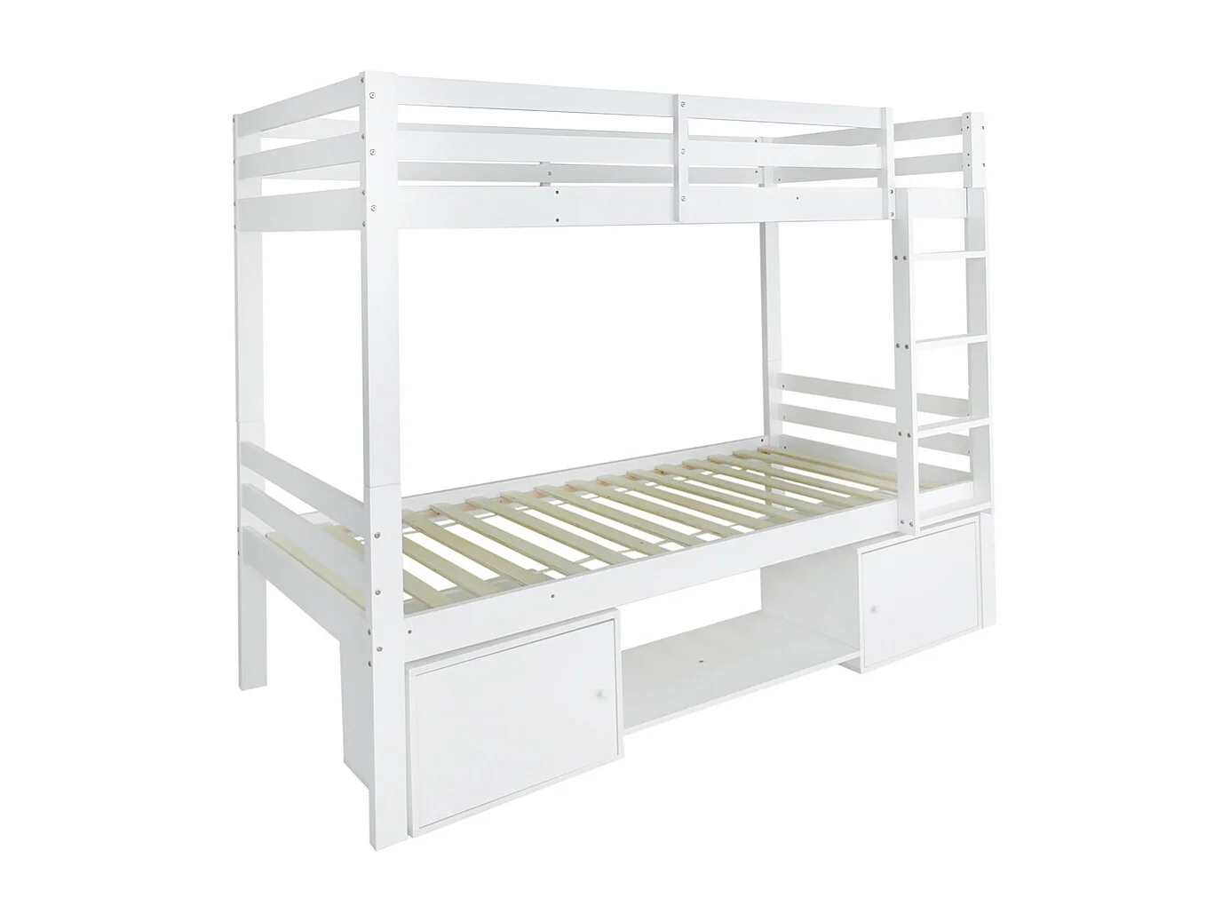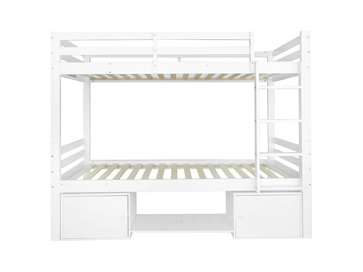 Lit d'enfant 90x200cm en bois de pin massif - lit superposé avec étagères à chaussures et casiers - lit cabane avec 2 lits simples - blanc