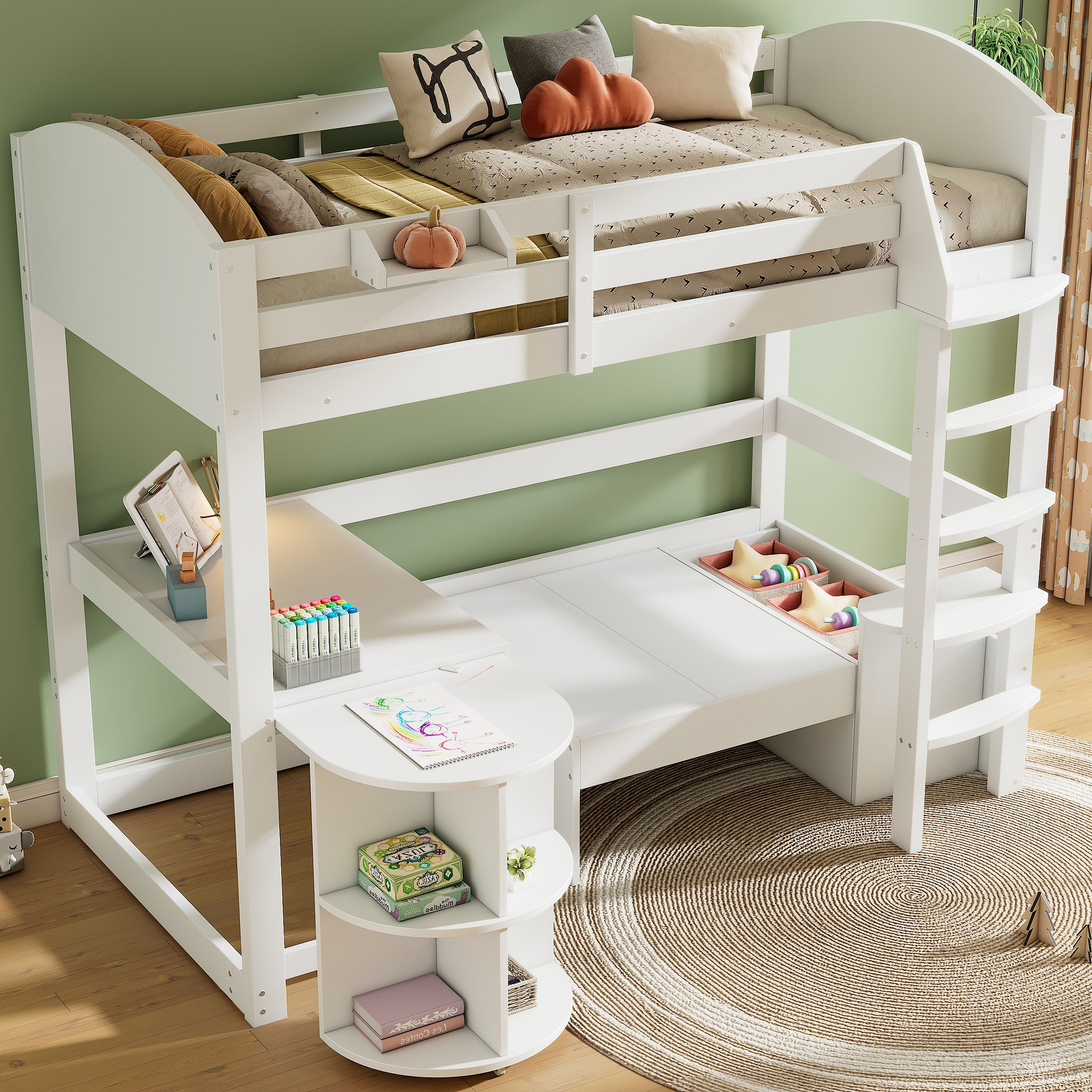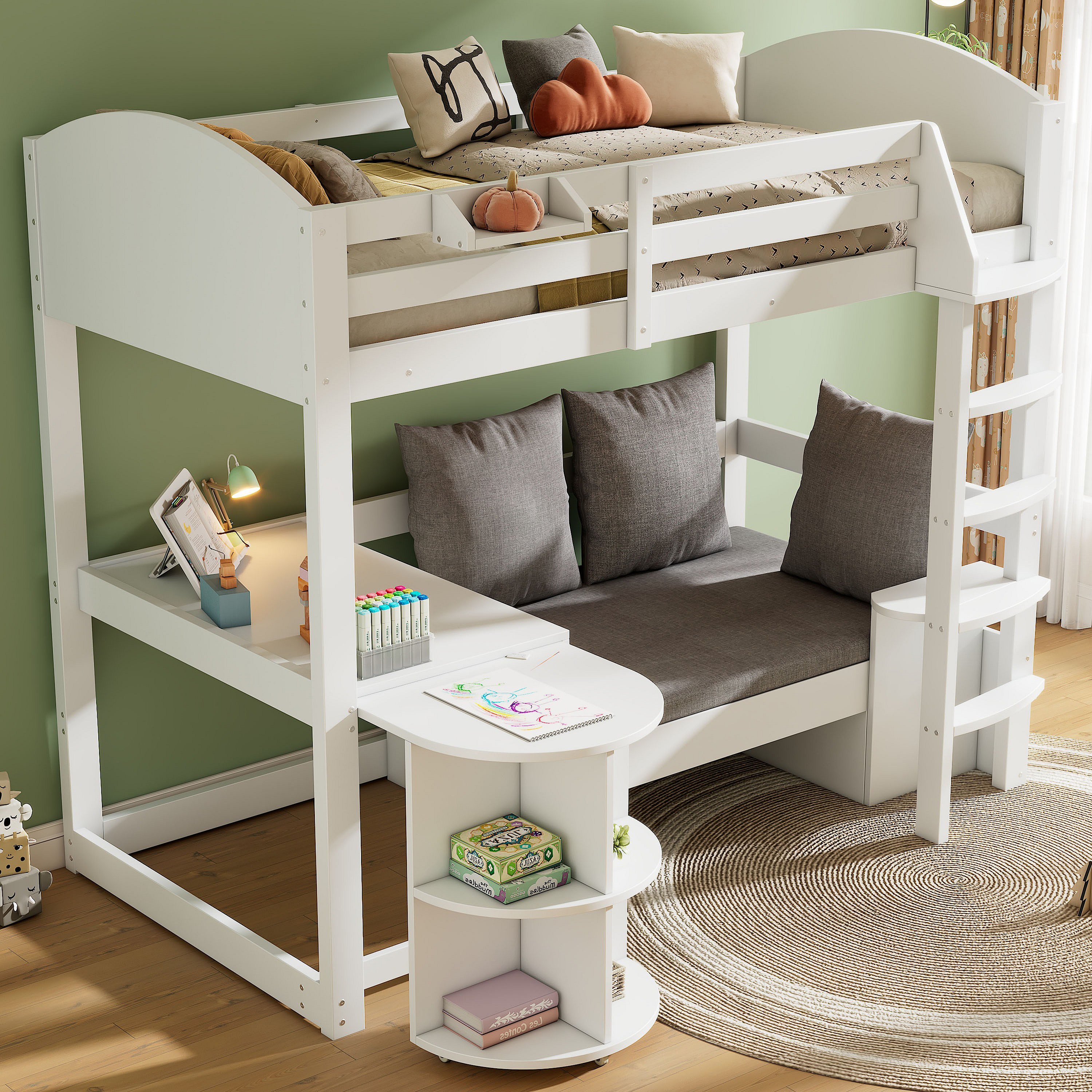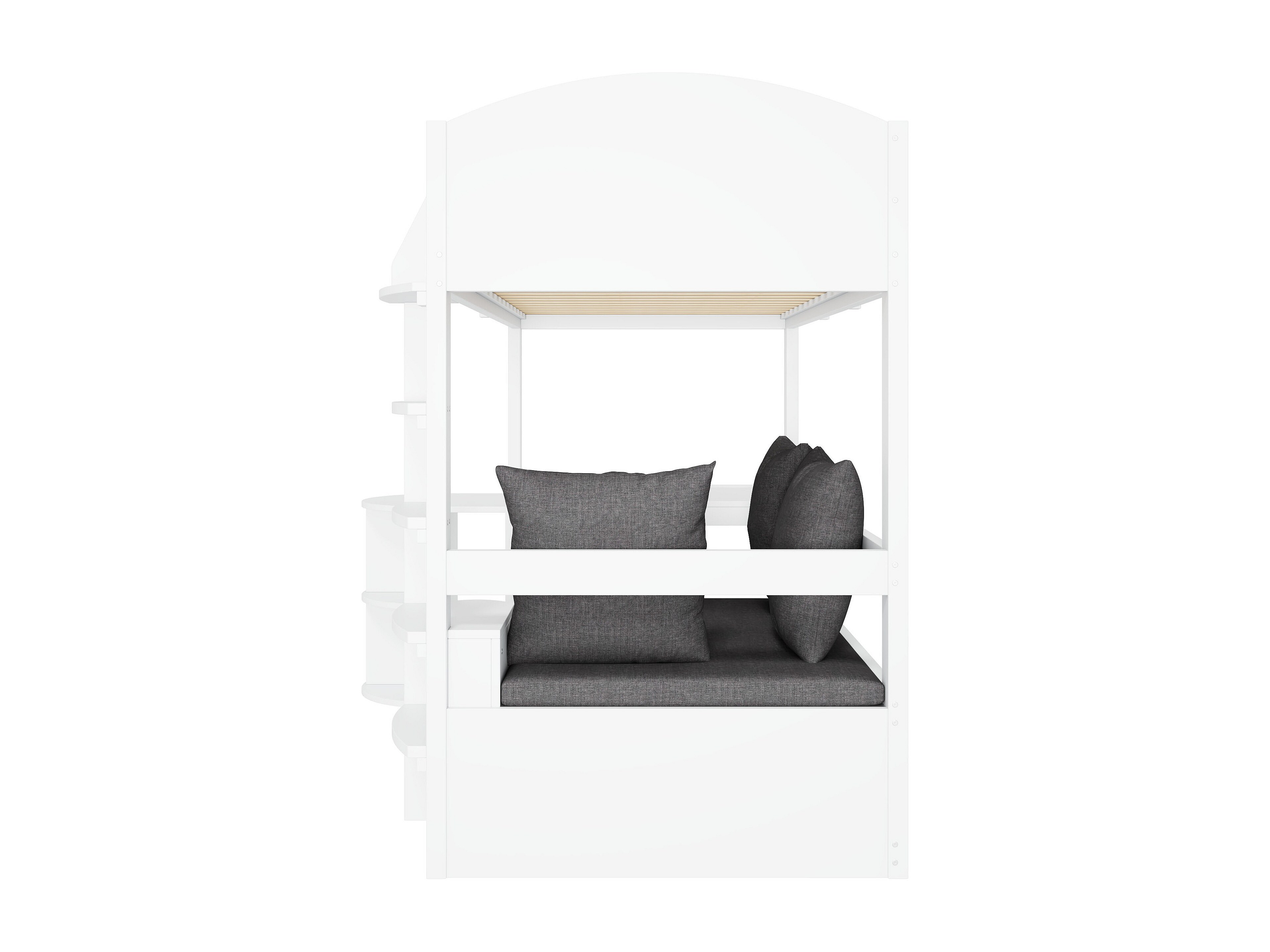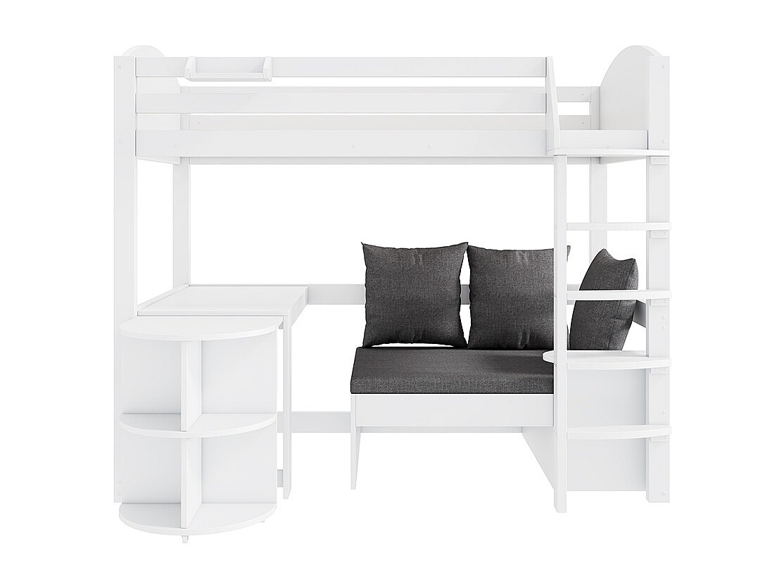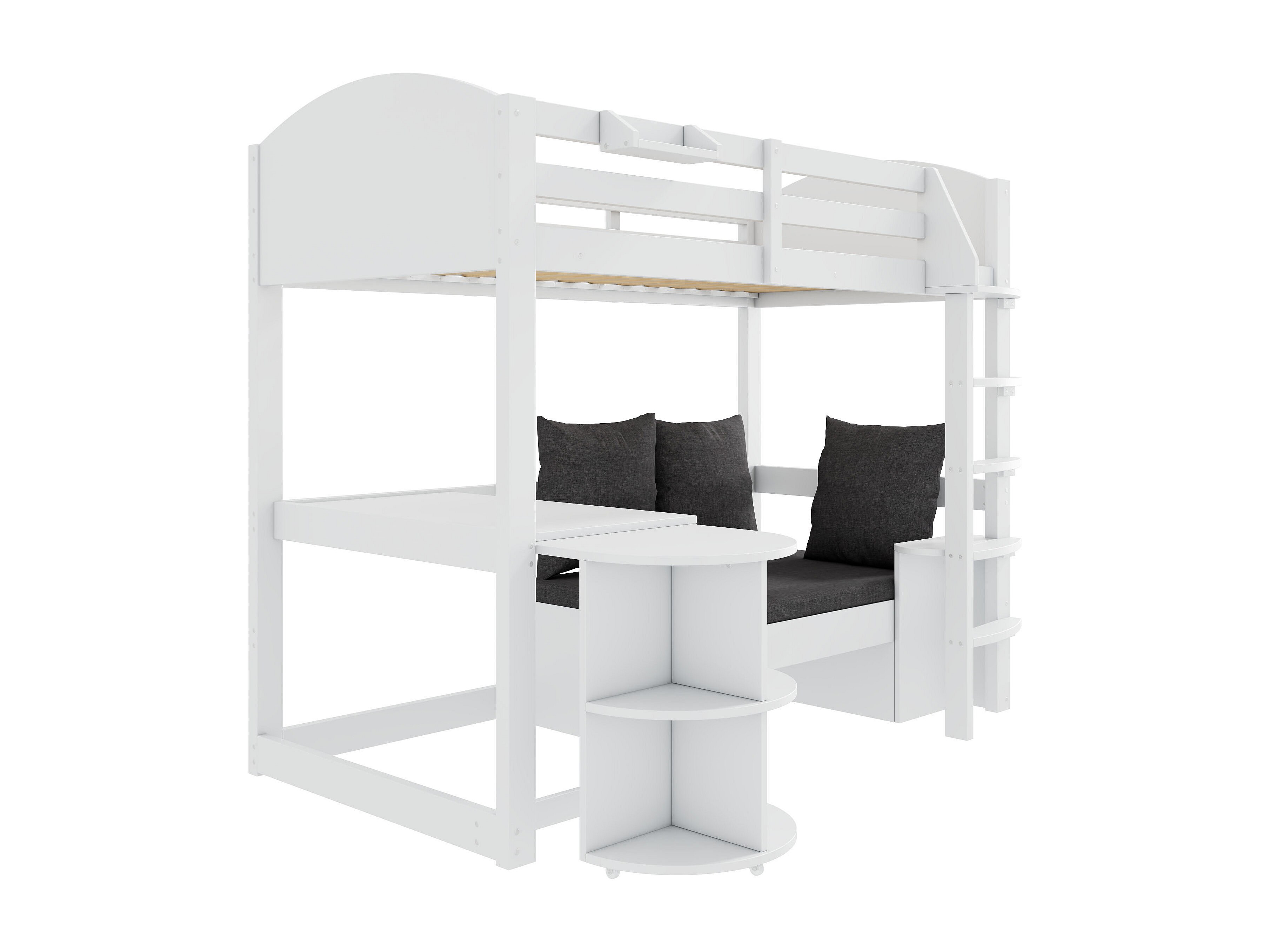 Lit d'enfant avec échelle, table extensible, trois coussins et rembourrage, bois massif, blanc, 90*200