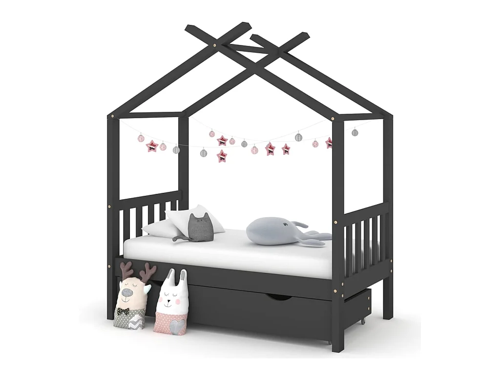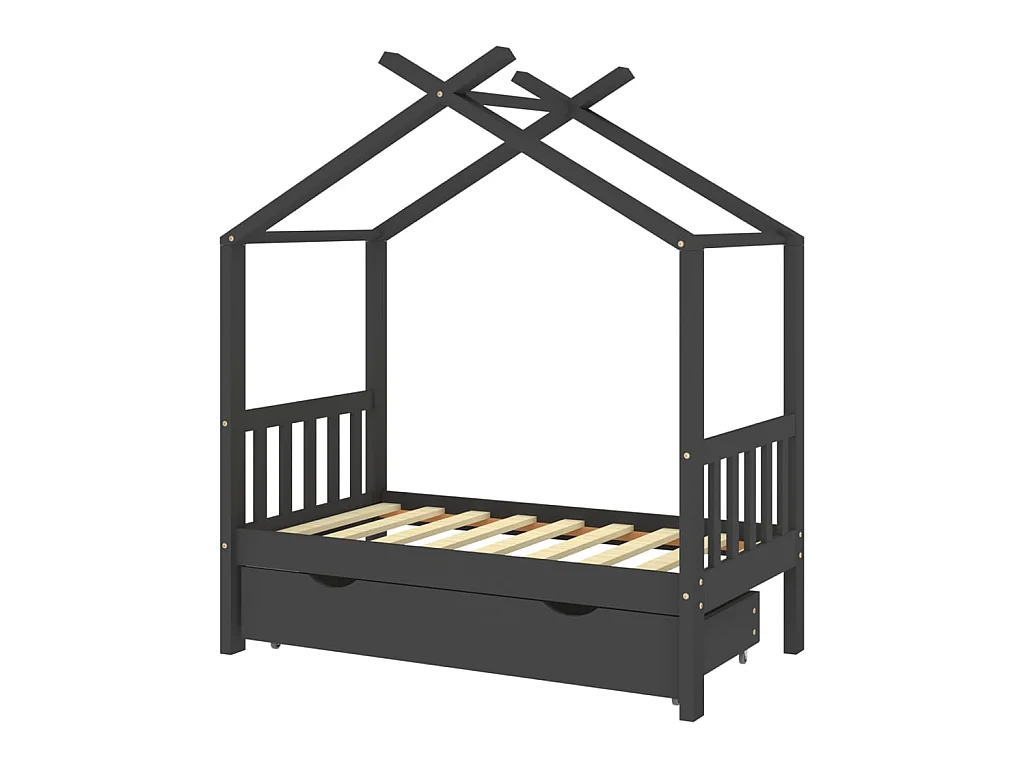 Lit d'enfant avec un tiroir Gris foncé Pin 70x140