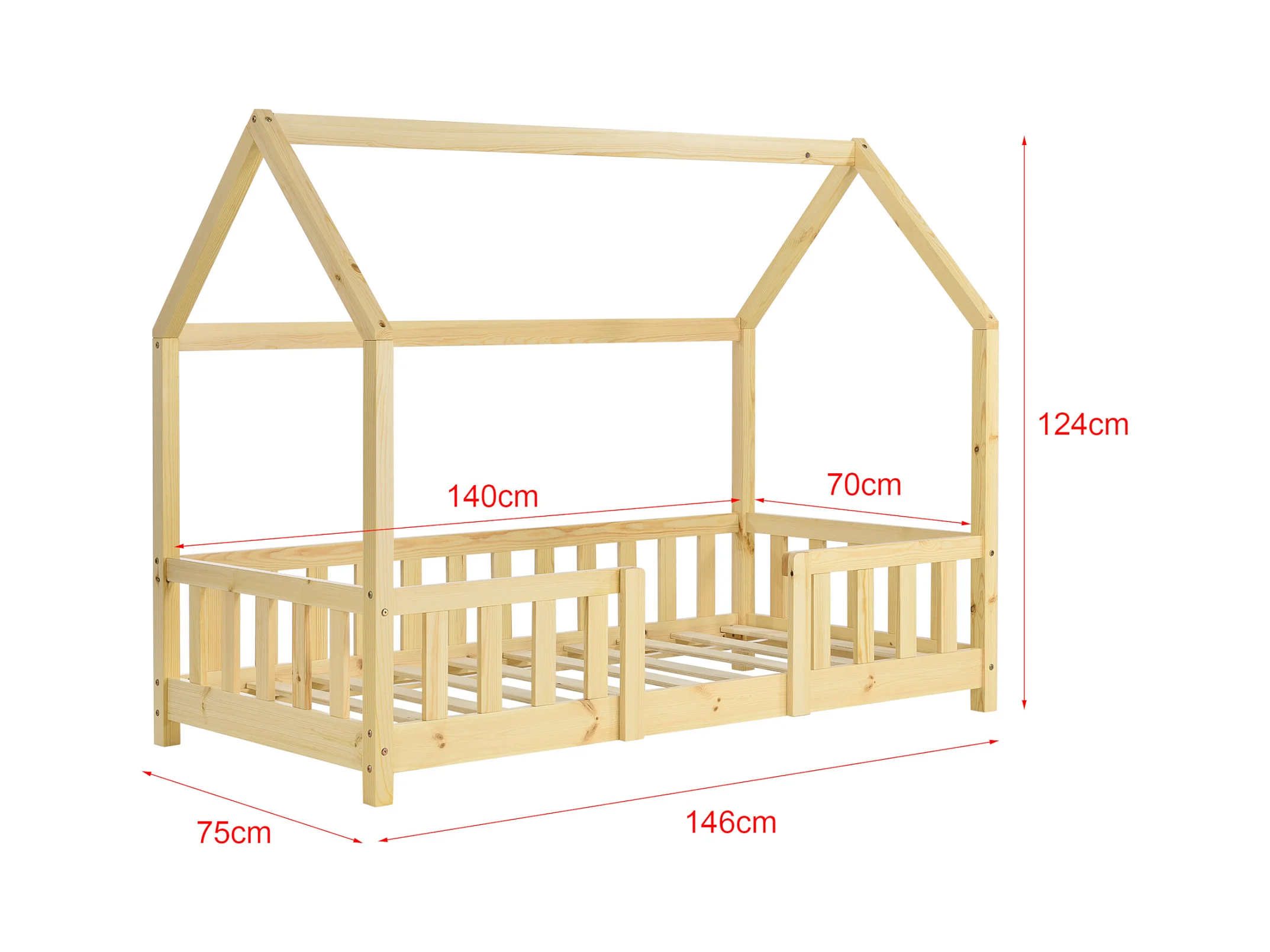 Lit d'Enfant Design Forme Maison Sisimiut Pin 140 x 70 cm Naturel [en.casa]