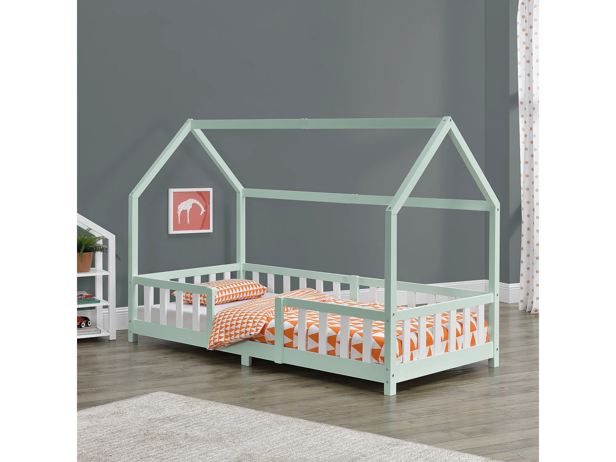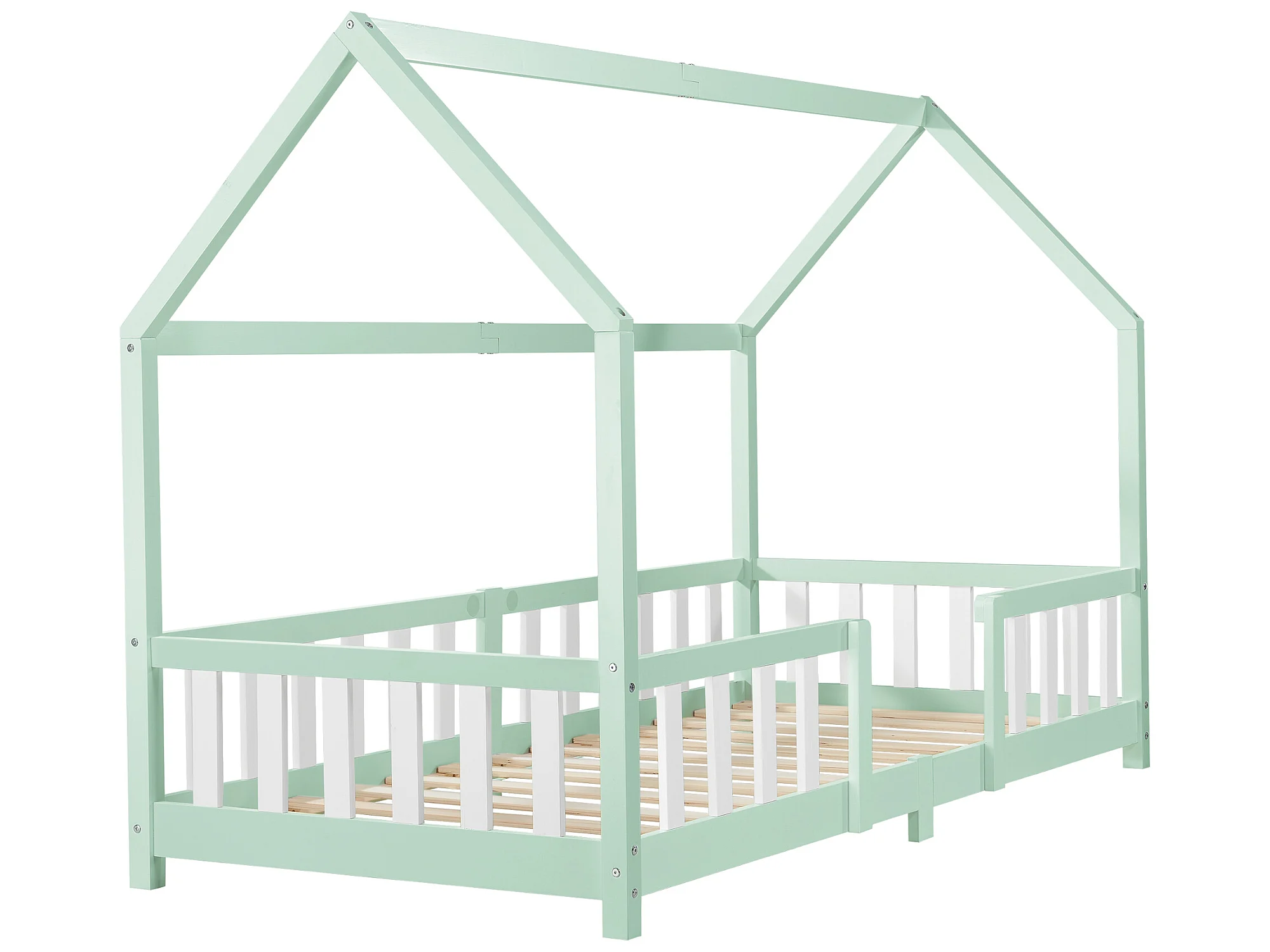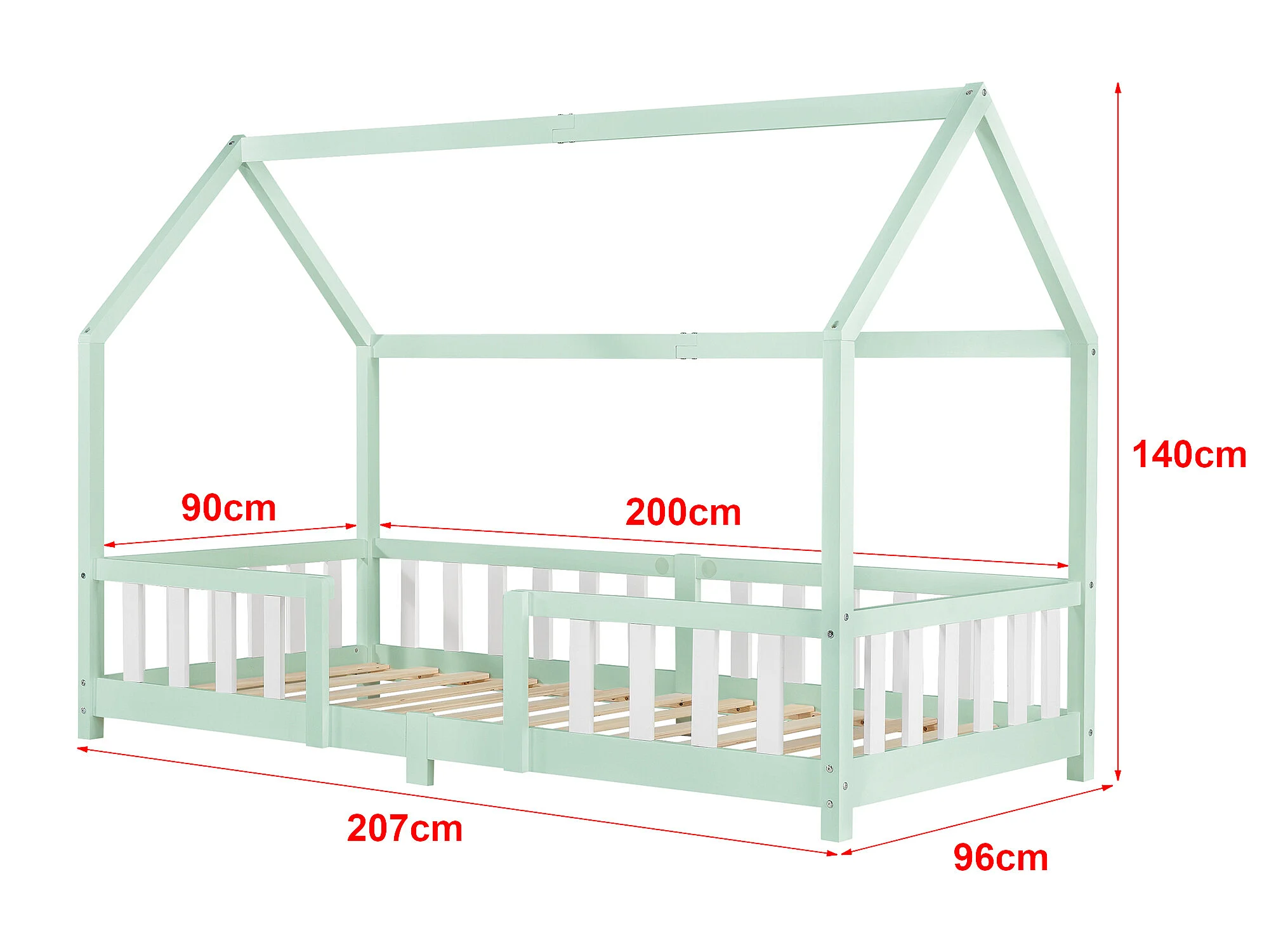 Lit d'Enfant Design Forme Maison Sisimiut Pin 200 x 90 cm Menthe Blanc Mat Laqué [en.casa]