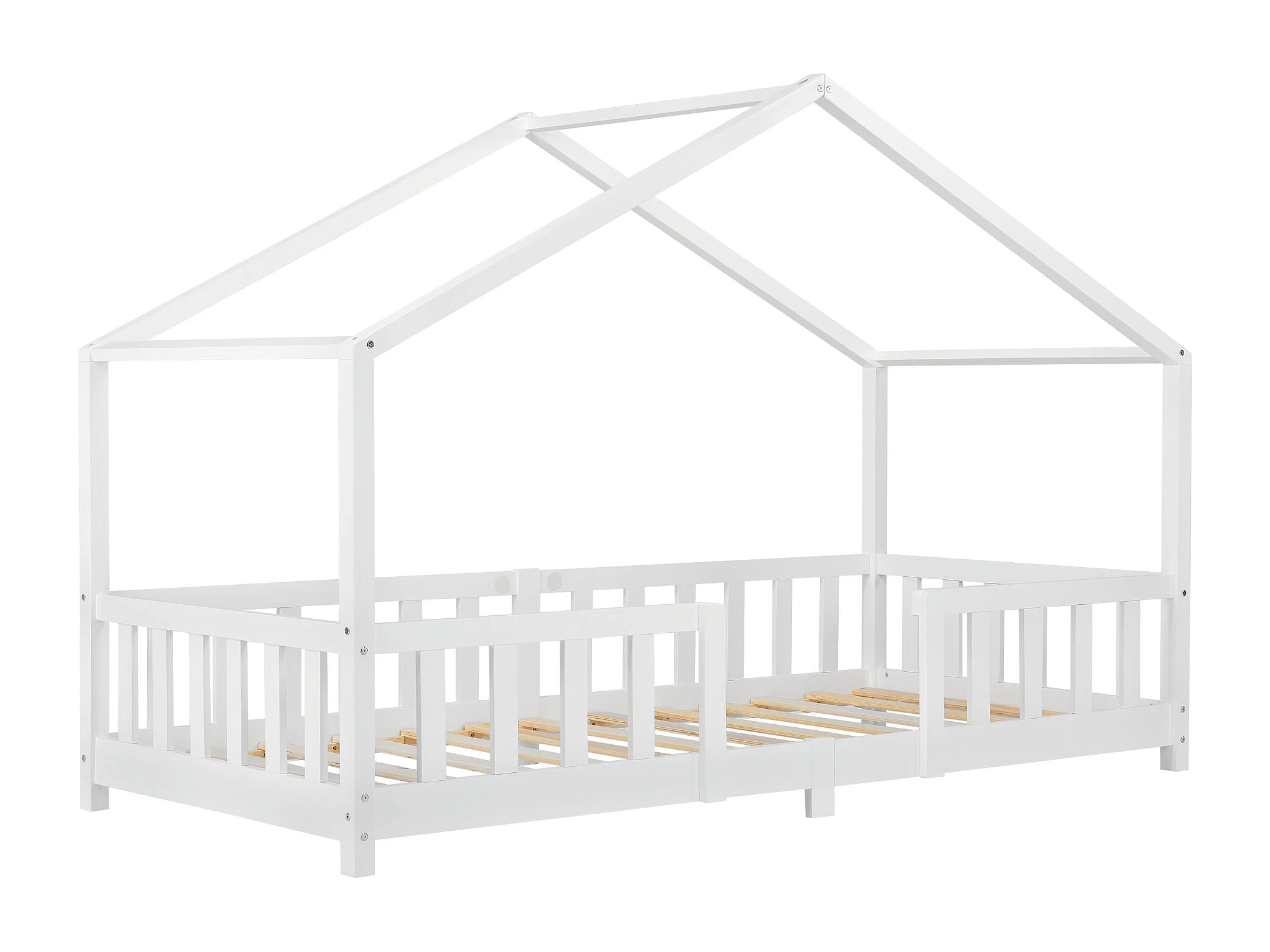Lit d'Enfant Forme Maison avec Grille de Protection Treviolo 200 x 90 cm Blanc Mat Laqué [en.casa]