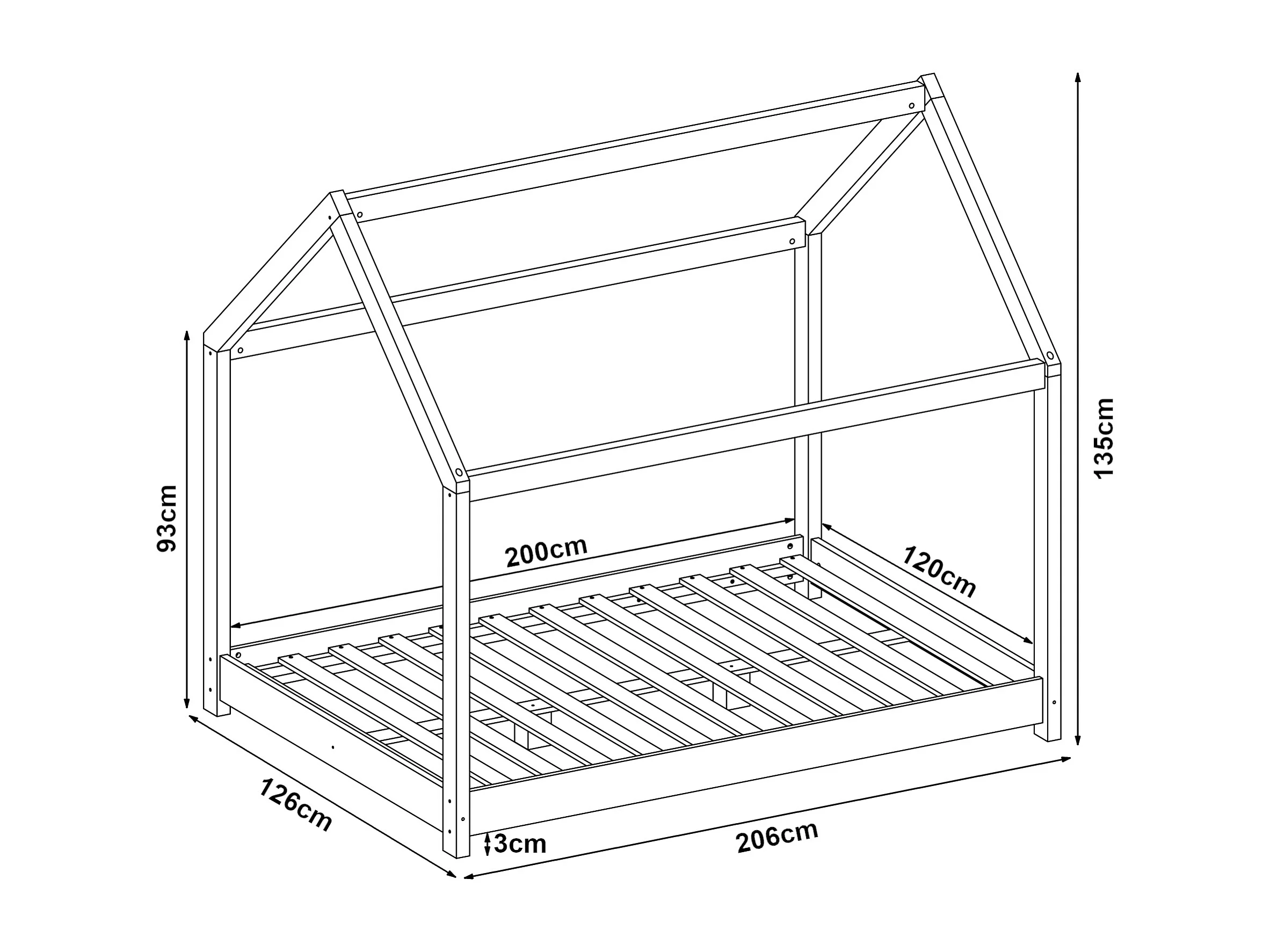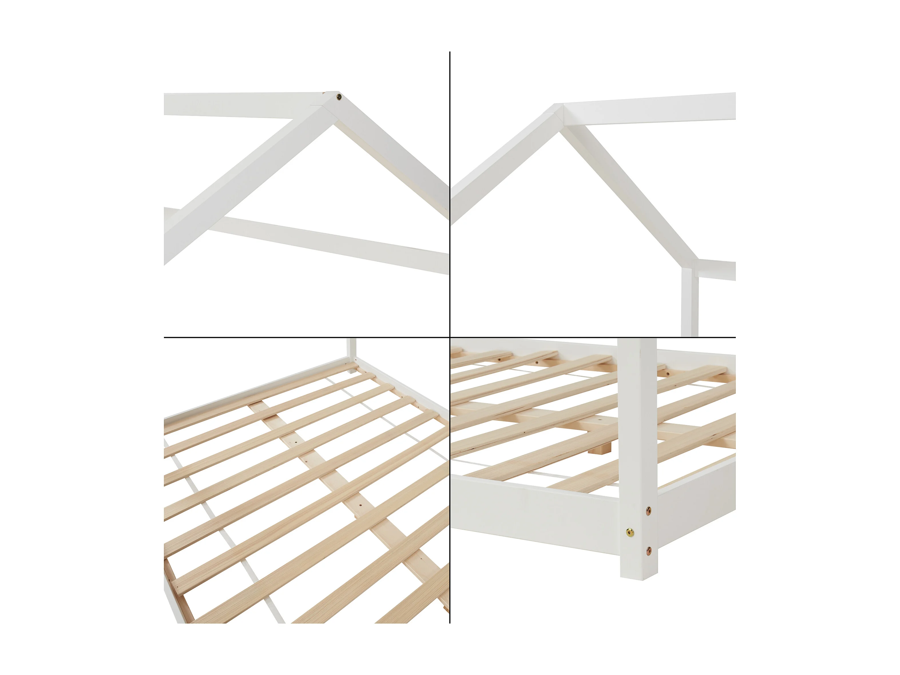 Lit D'enfant Forme Maison Cerro Avec Matelas Mousse À Froid 120 X 200 Cm Blanc