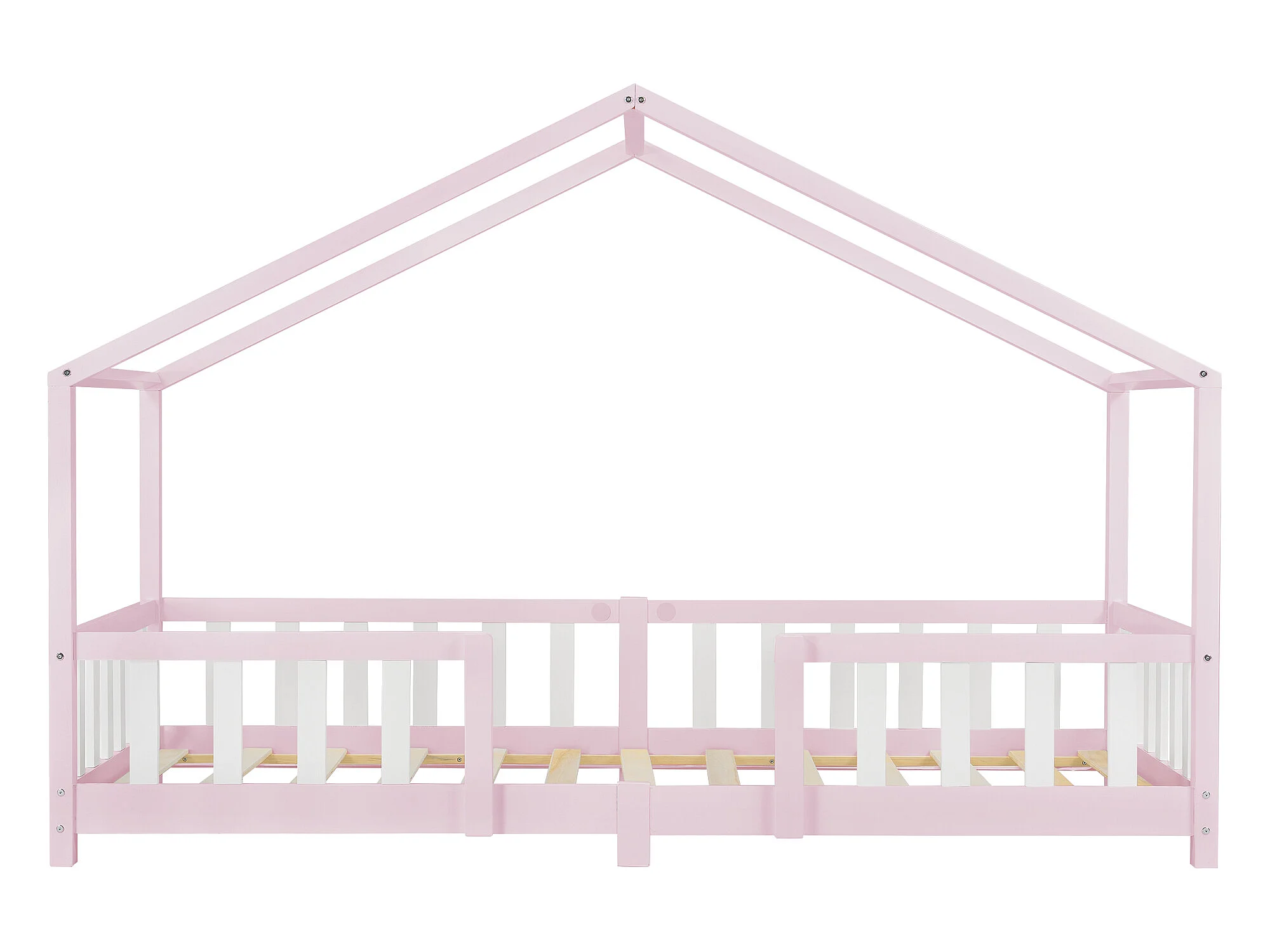 Lit D'enfant Treviolo Forme Maison Avec Matelas À Mousse À Froid 200X90 Cm Rose Blanc