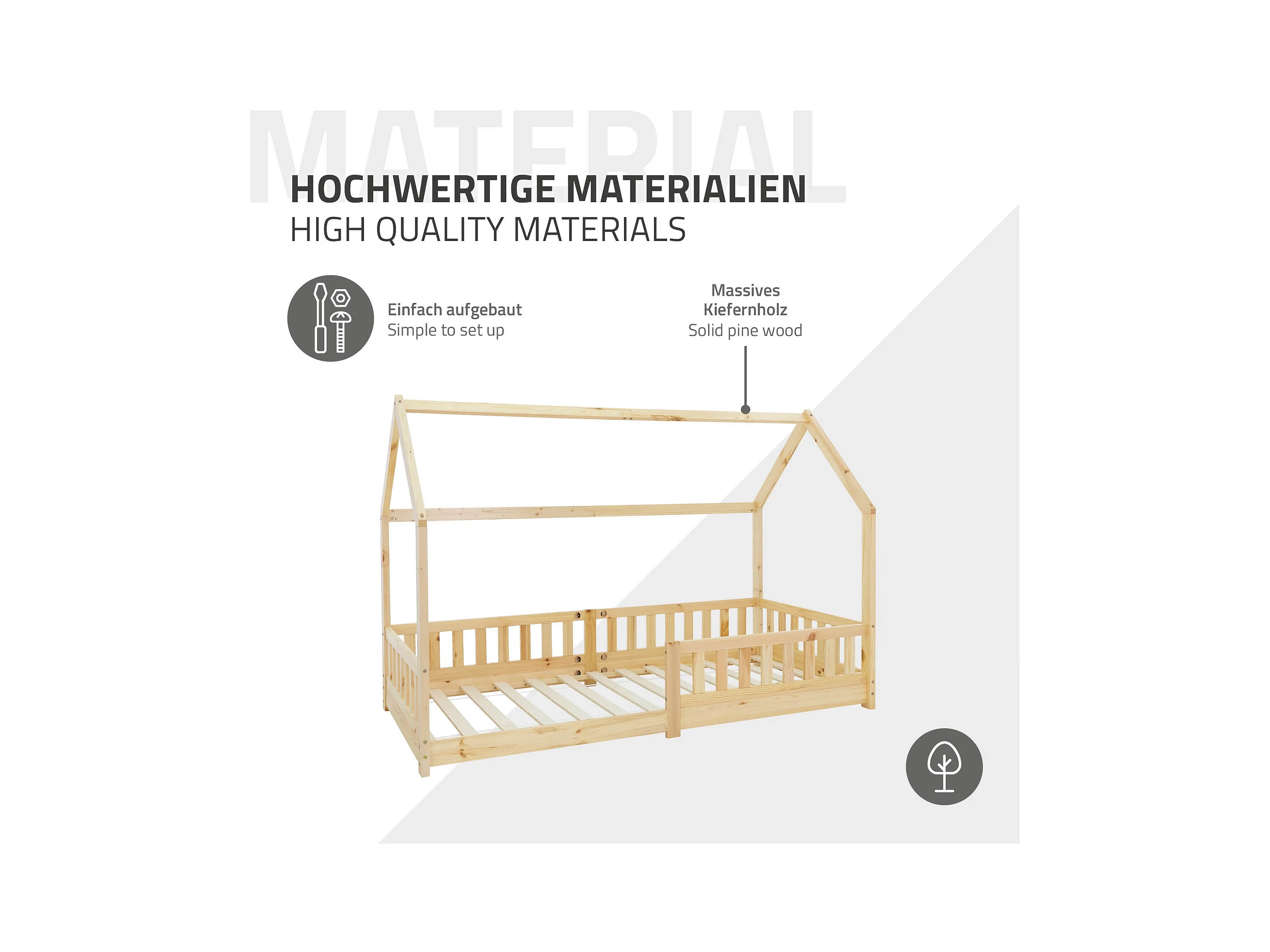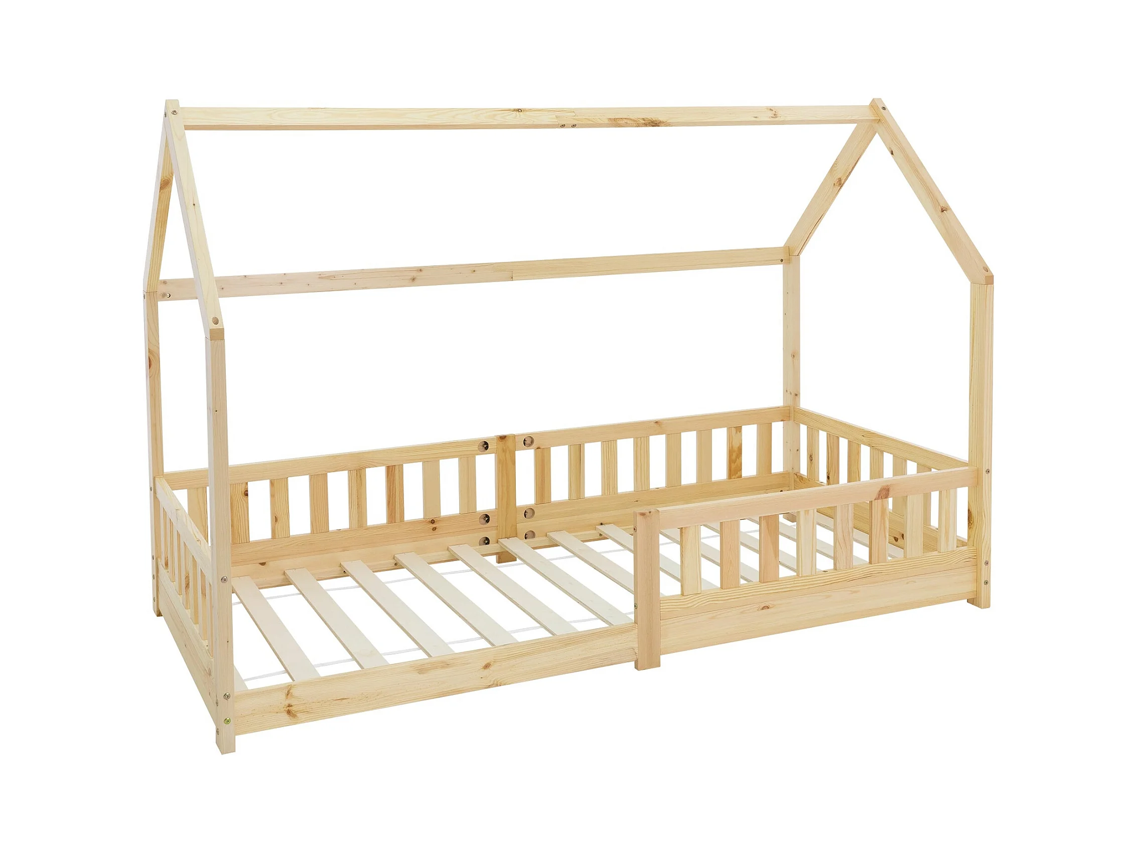 Lit d'enfants Tipi 90x200cm naturel style maison avec toit et sommier à lattes grille de sécurité bois de pin massif tente de jeu pour filles/garçons