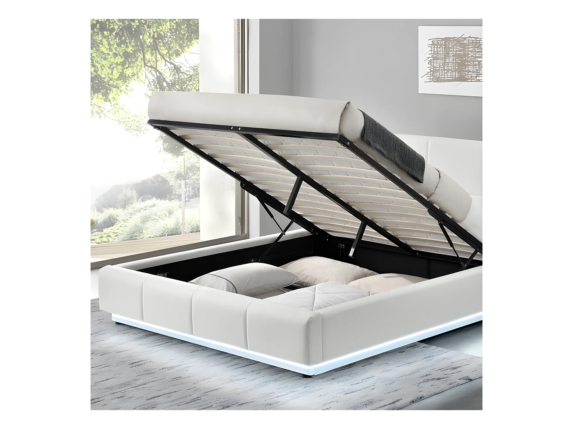 Lit Design Alexi Avec Sommier Et Coffre De Rangement - Couleurs - Blanc, Tailles - 140x190
