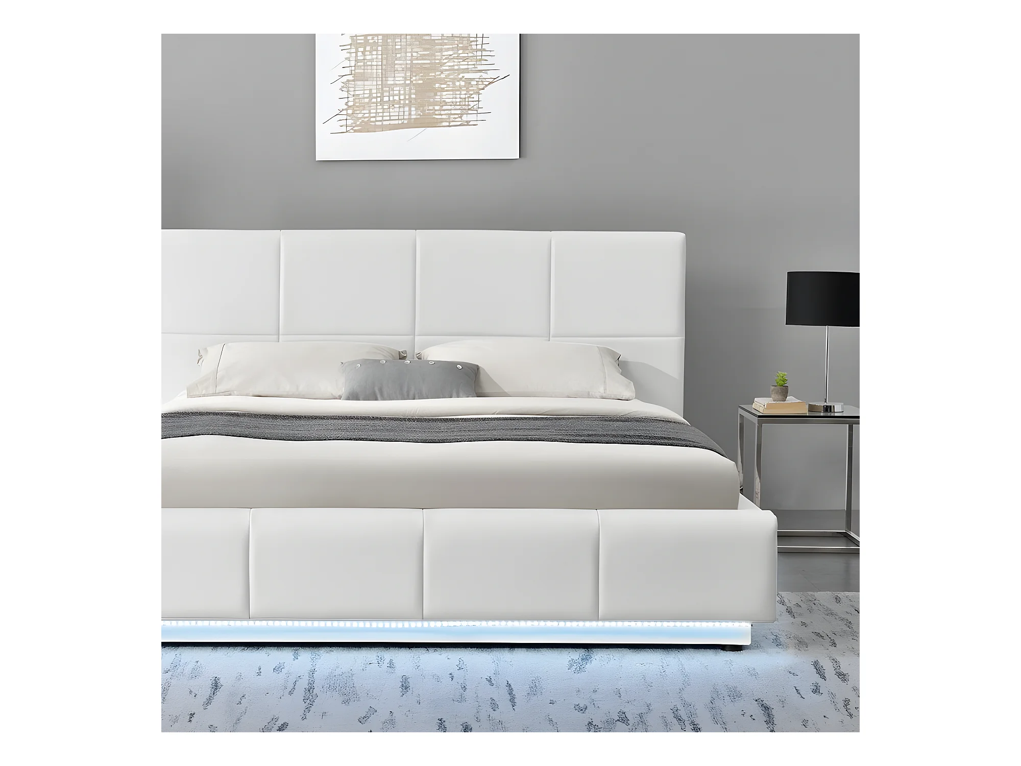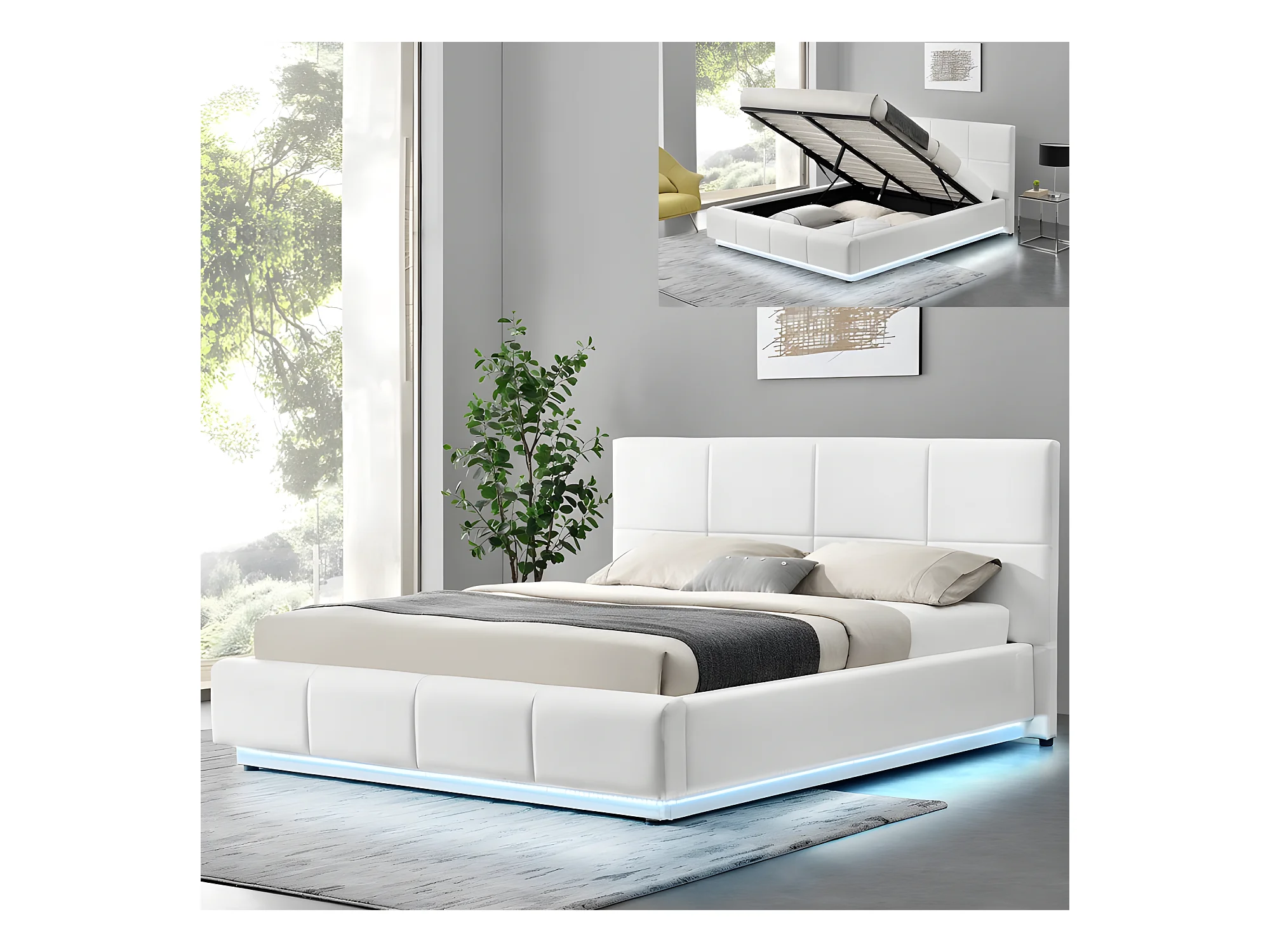 Lit Design Alexi Avec Sommier Et Coffre De Rangement - Couleurs - Blanc, Tailles - 180x200