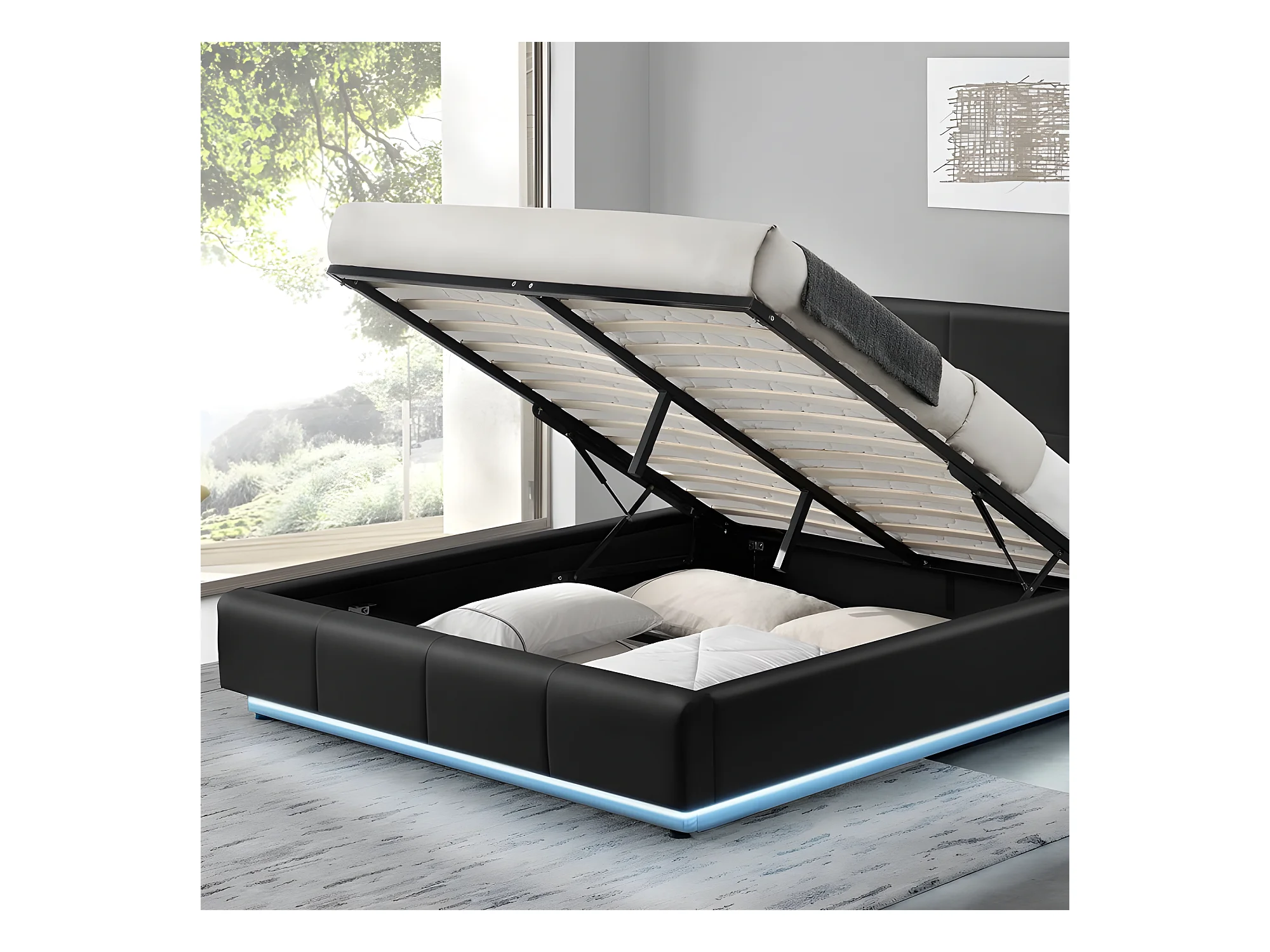 Lit Design Alexi Avec Sommier Et Coffre De Rangement - Couleurs - Noir, Tailles - 140x190