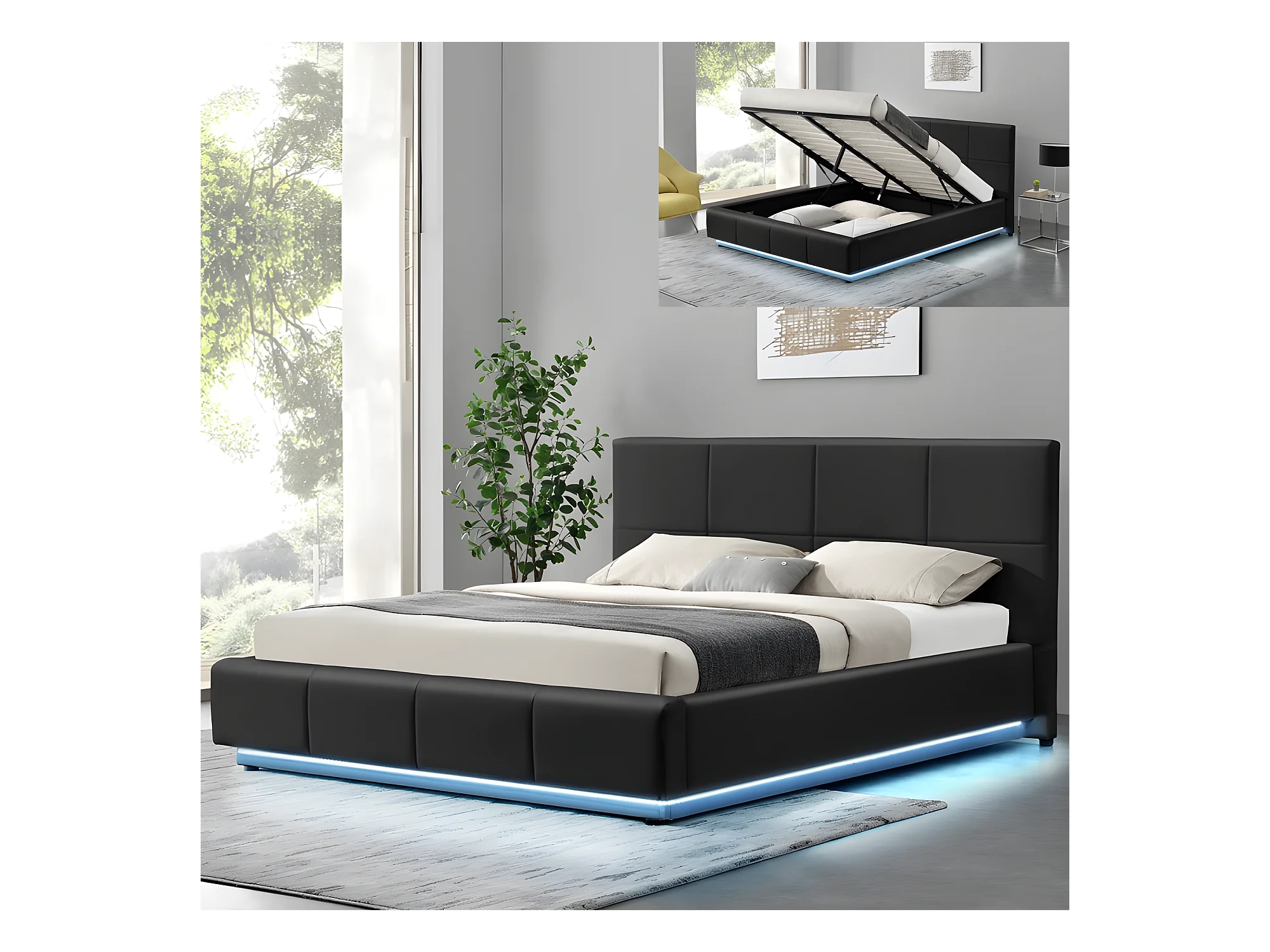 Lit Design Alexi Avec Sommier Et Coffre De Rangement - Couleurs - Noir, Tailles - 180x200