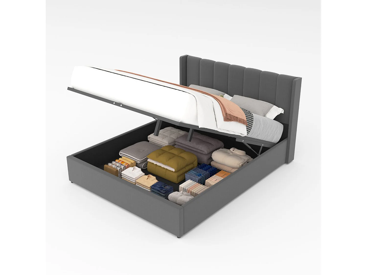 Lit design avec coffre de rangement 140x190cm en velours gris ARLINGTON