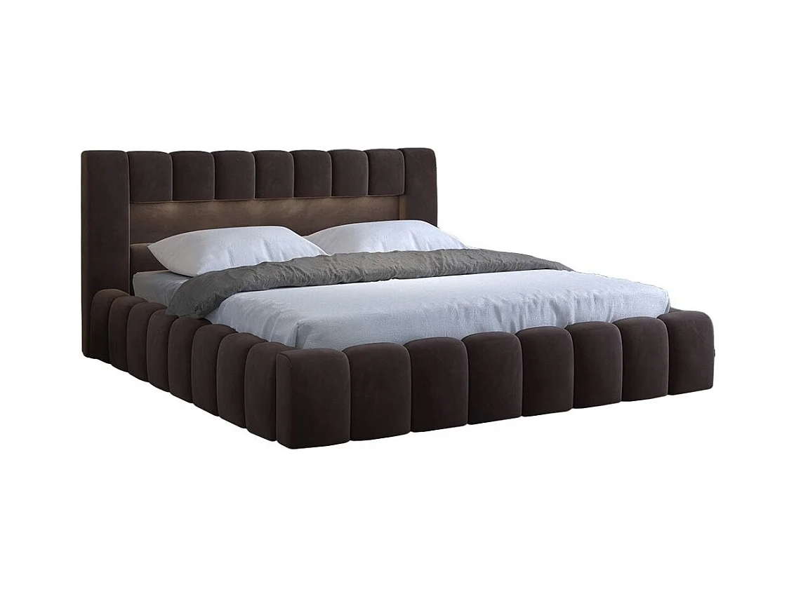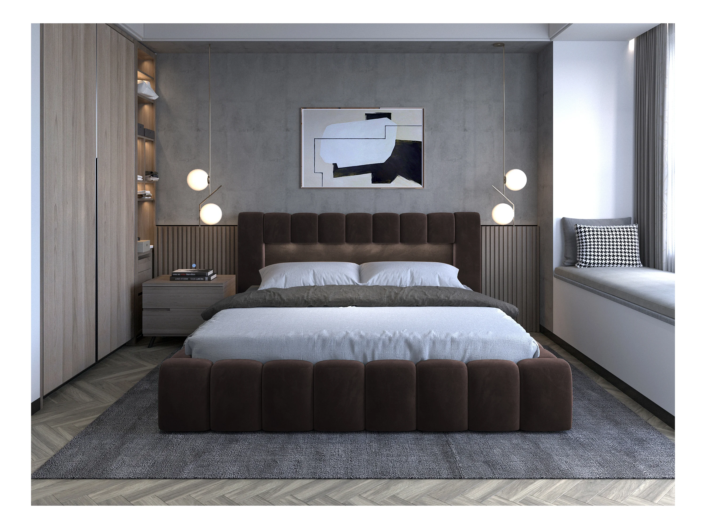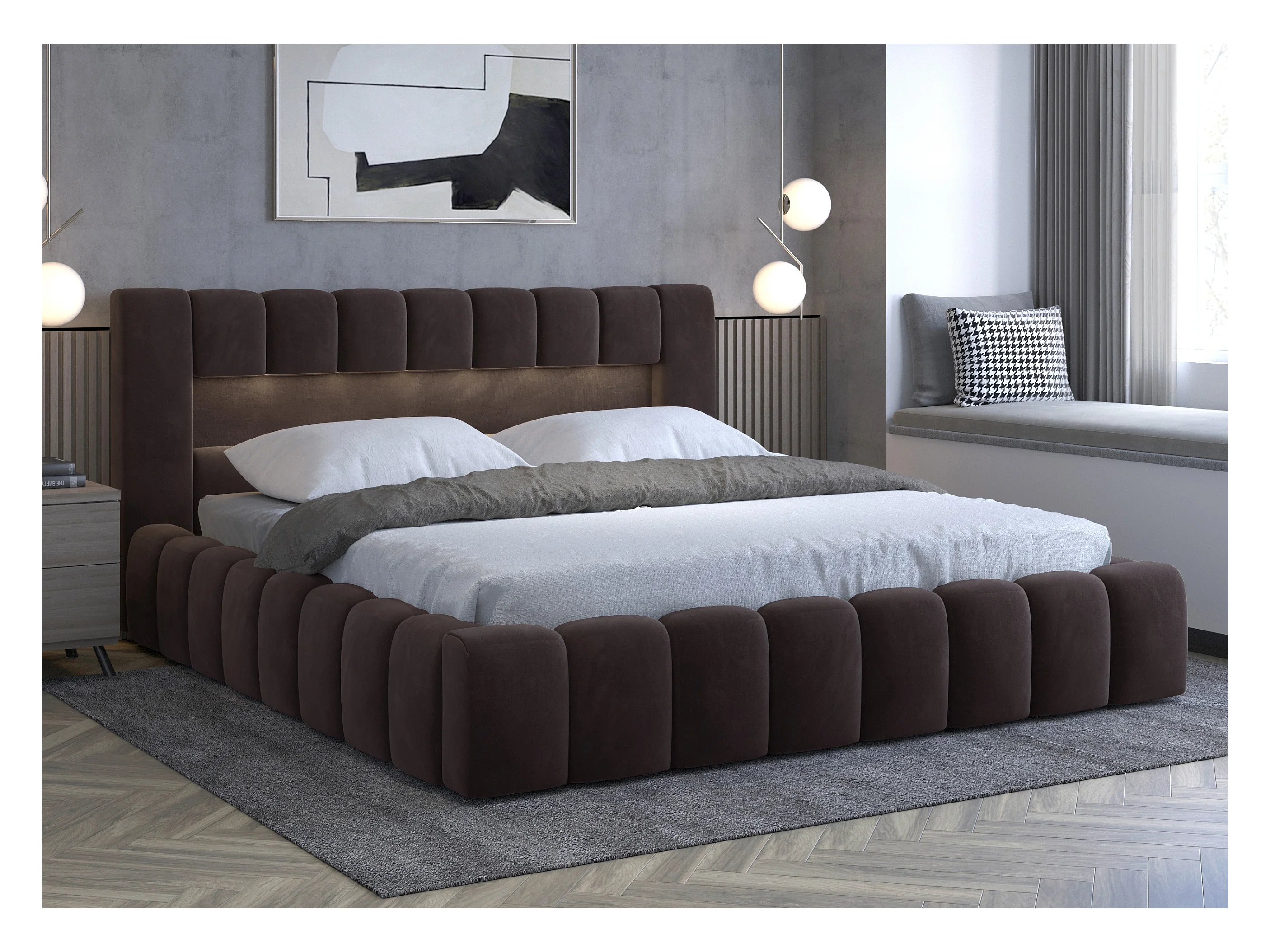 Lit design avec coffre tapissé velours Luto-Couleur Marron-180x200