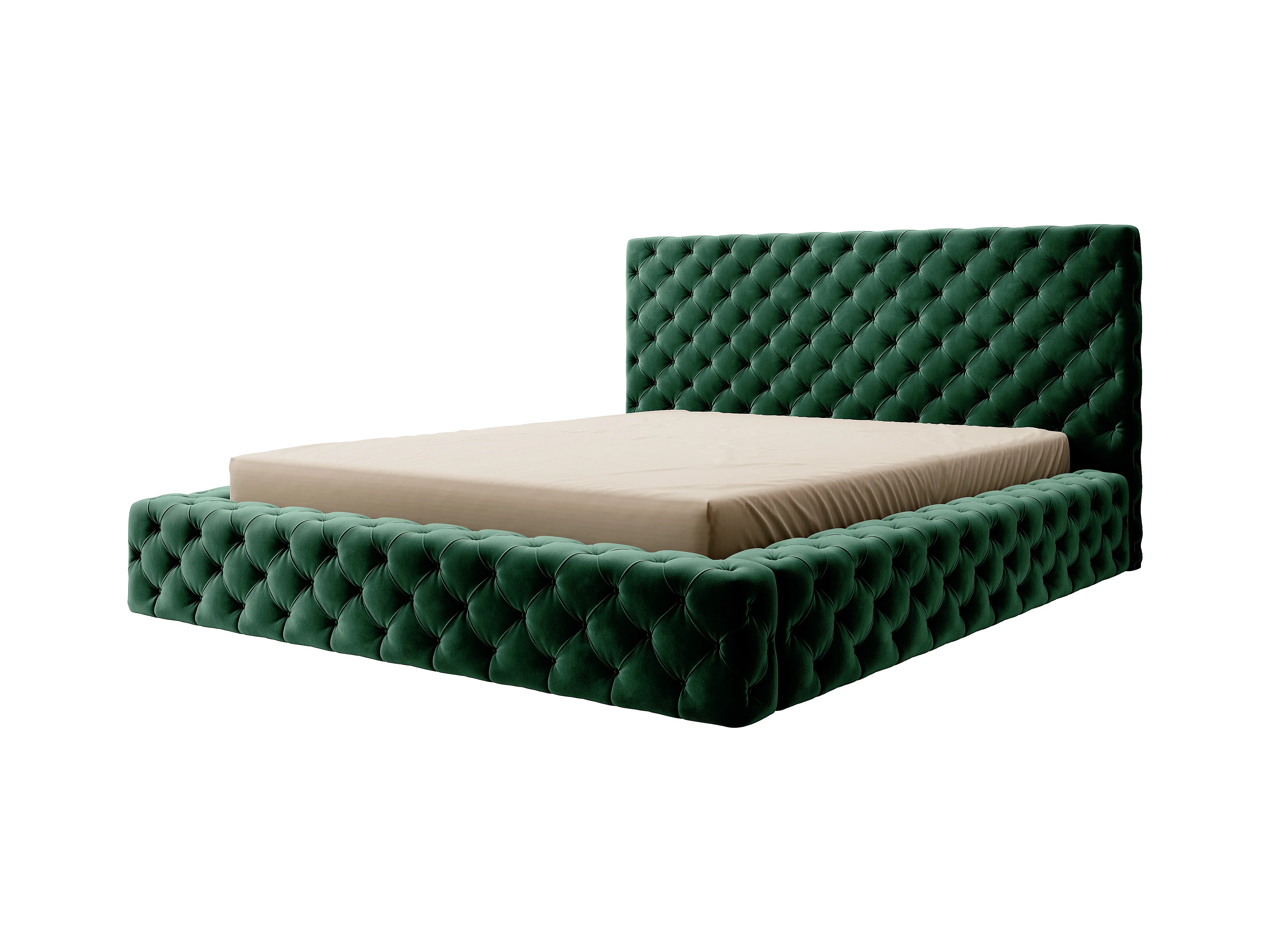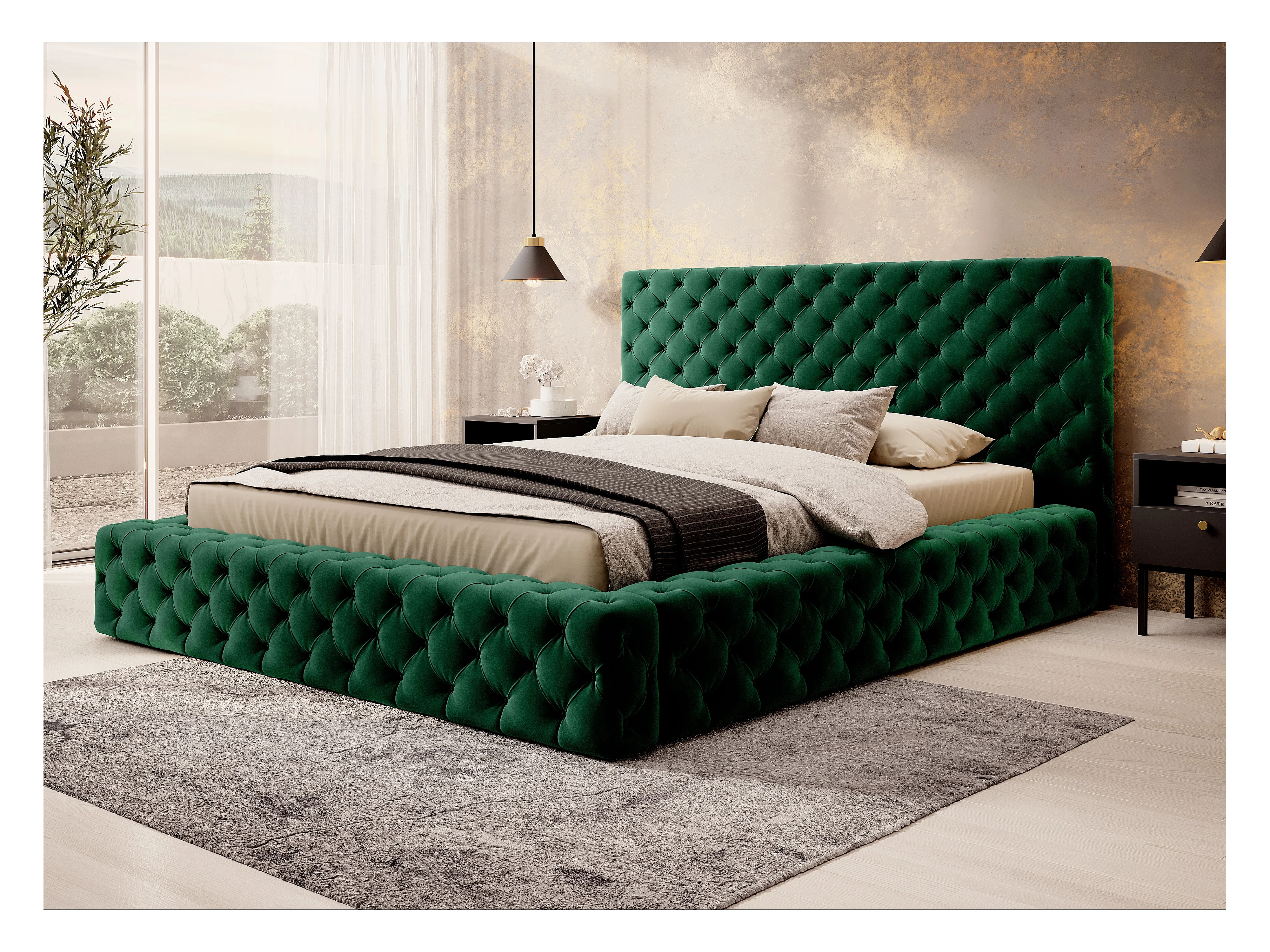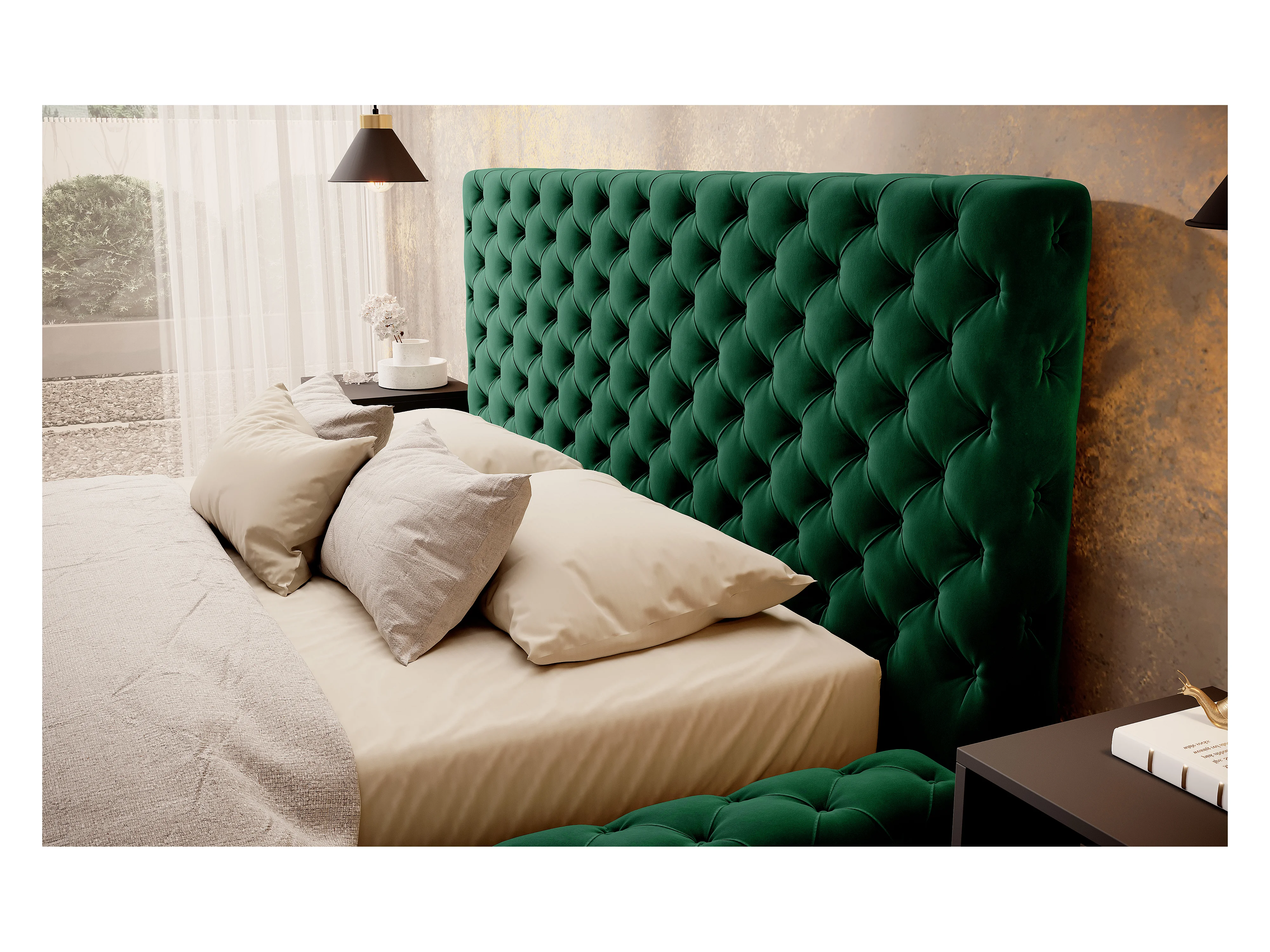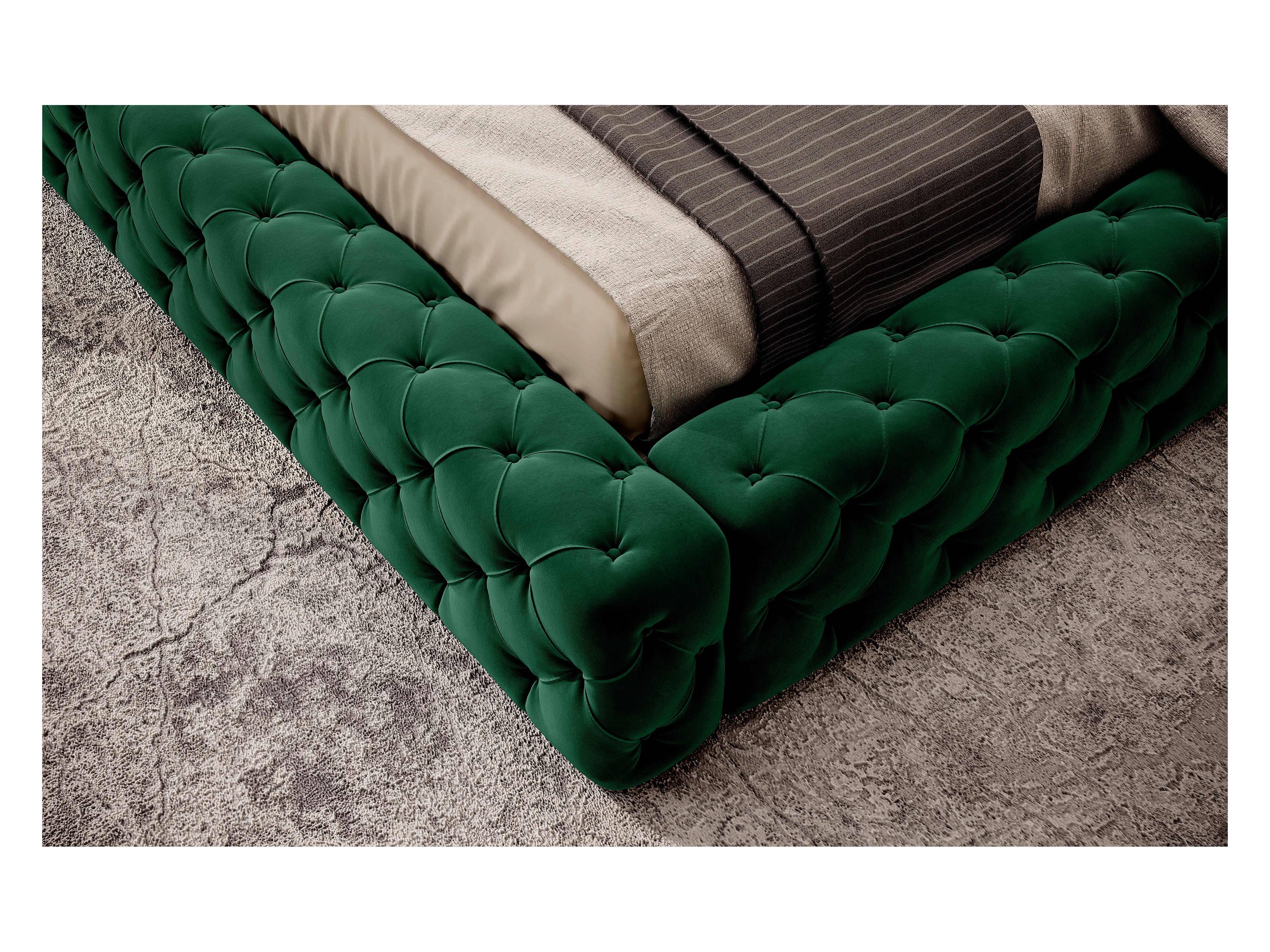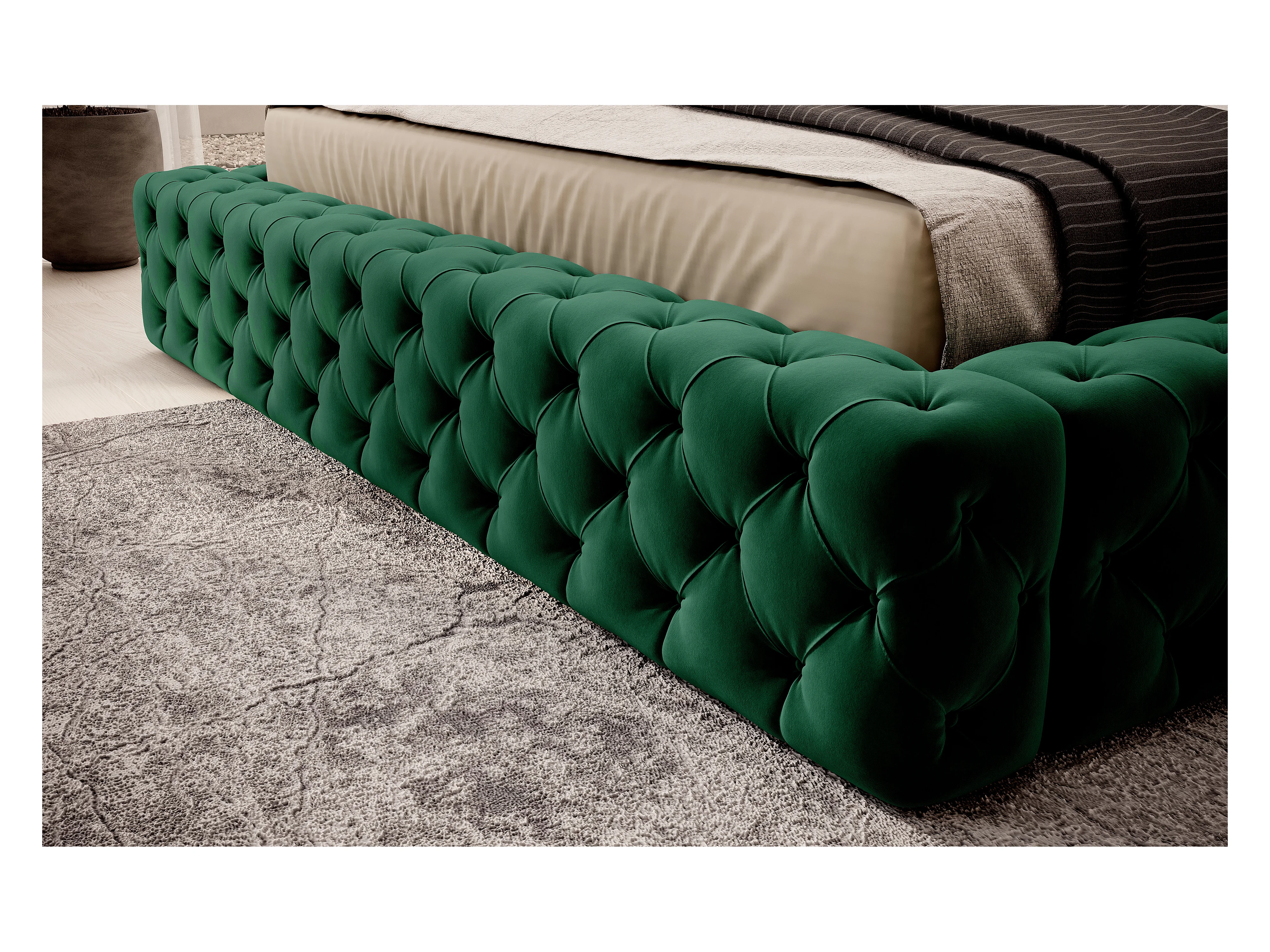 Lit design avec tête de lit et coffre capitonné velours vert Prince - 3 tailles-180x200