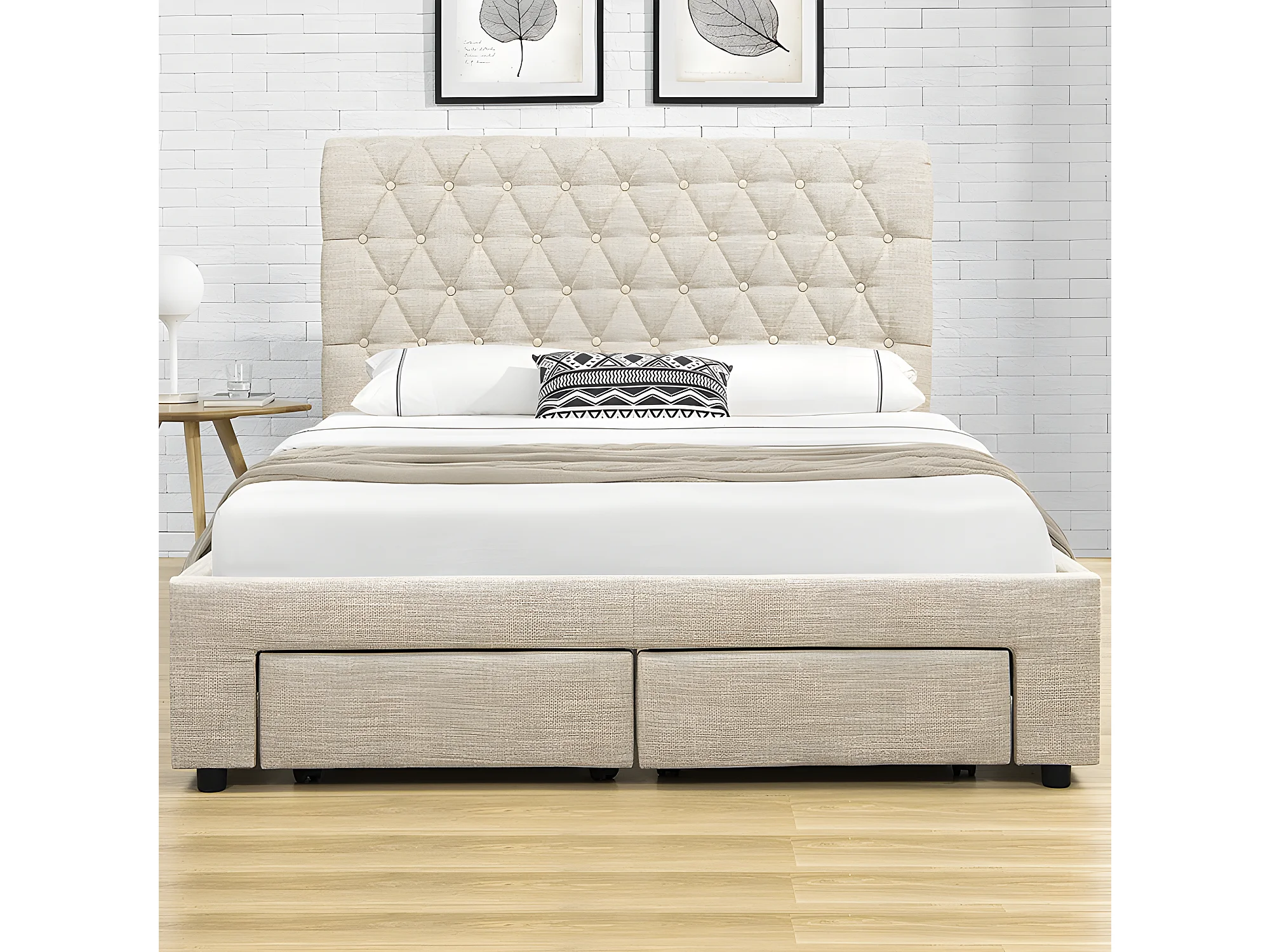 Lit Design Avec Tiroirs Hyde - Couleurs - Beige, Tailles - 160x200