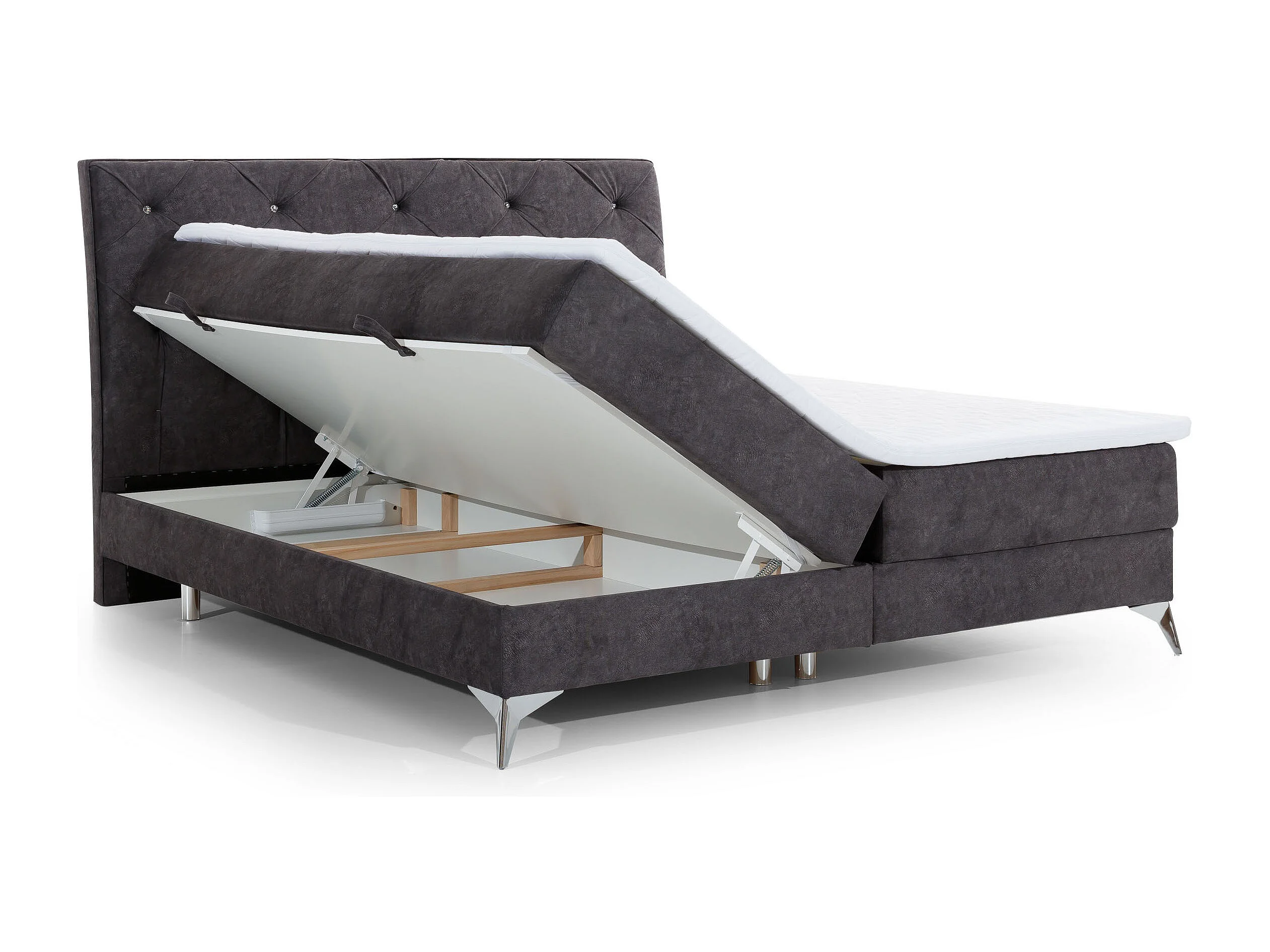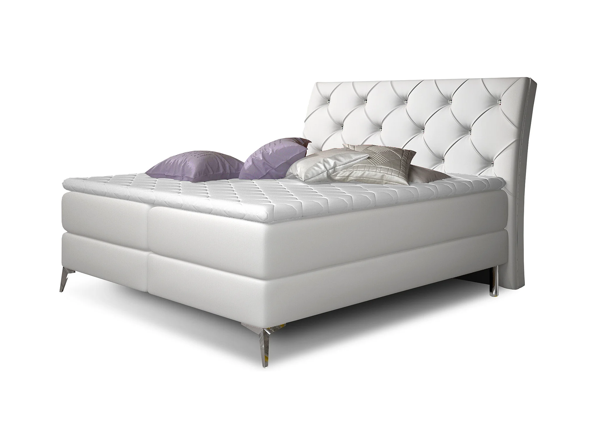 Lit design continental avec tête de lit capitonnée strass simili cuir blanc Banky-160x200