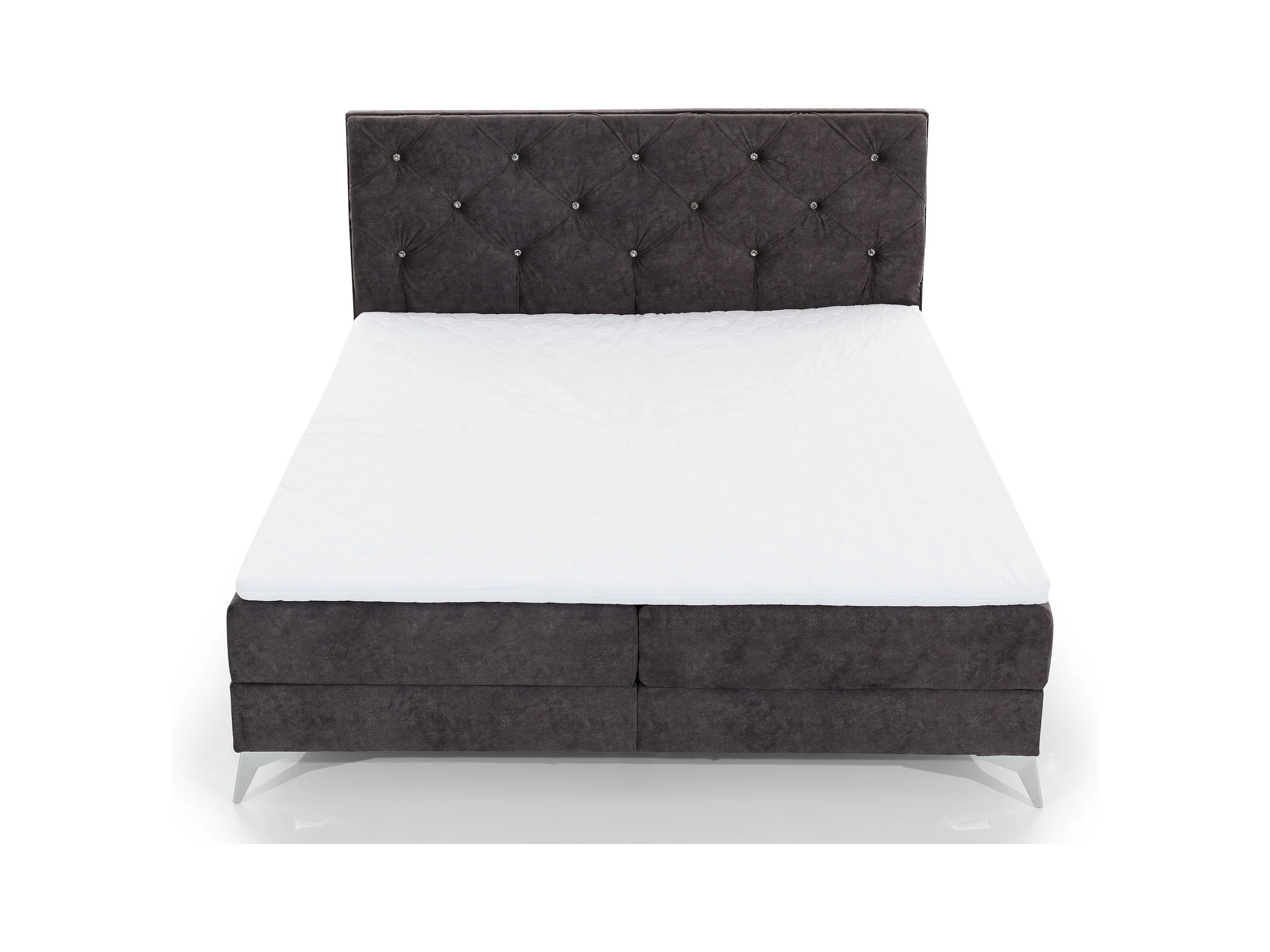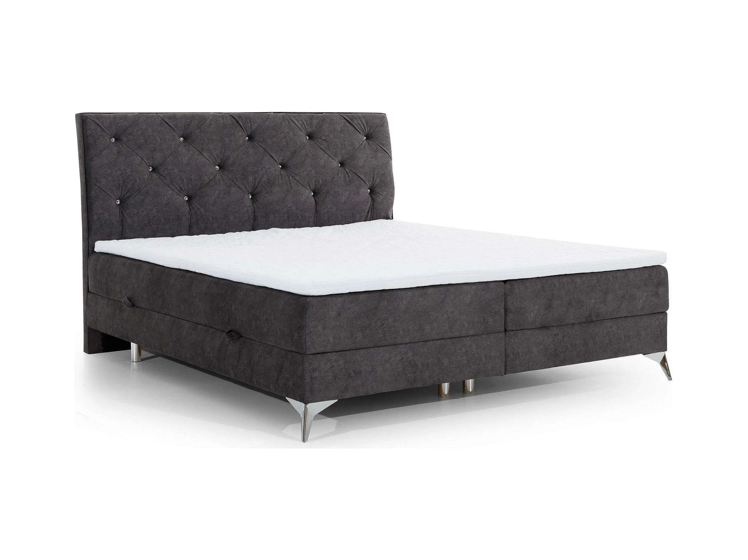 Lit design continental avec tête de lit capitonnée strass tissu jaune olive Banky-160x200
