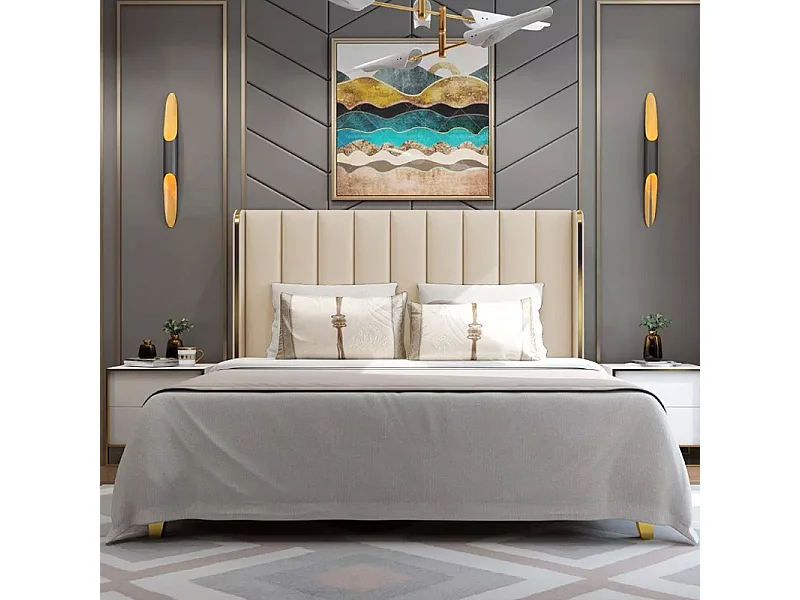 Lit Design Contour Or Avec Sommier Diana - Couleurs - Pu Beige, Tailles - 160x200