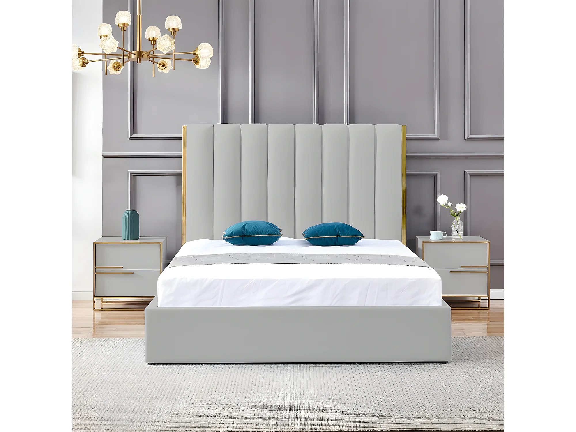 Lit Design Couleur Or Avec Coffre Veneto - Couleurs - Gris, Tailles - 160x200