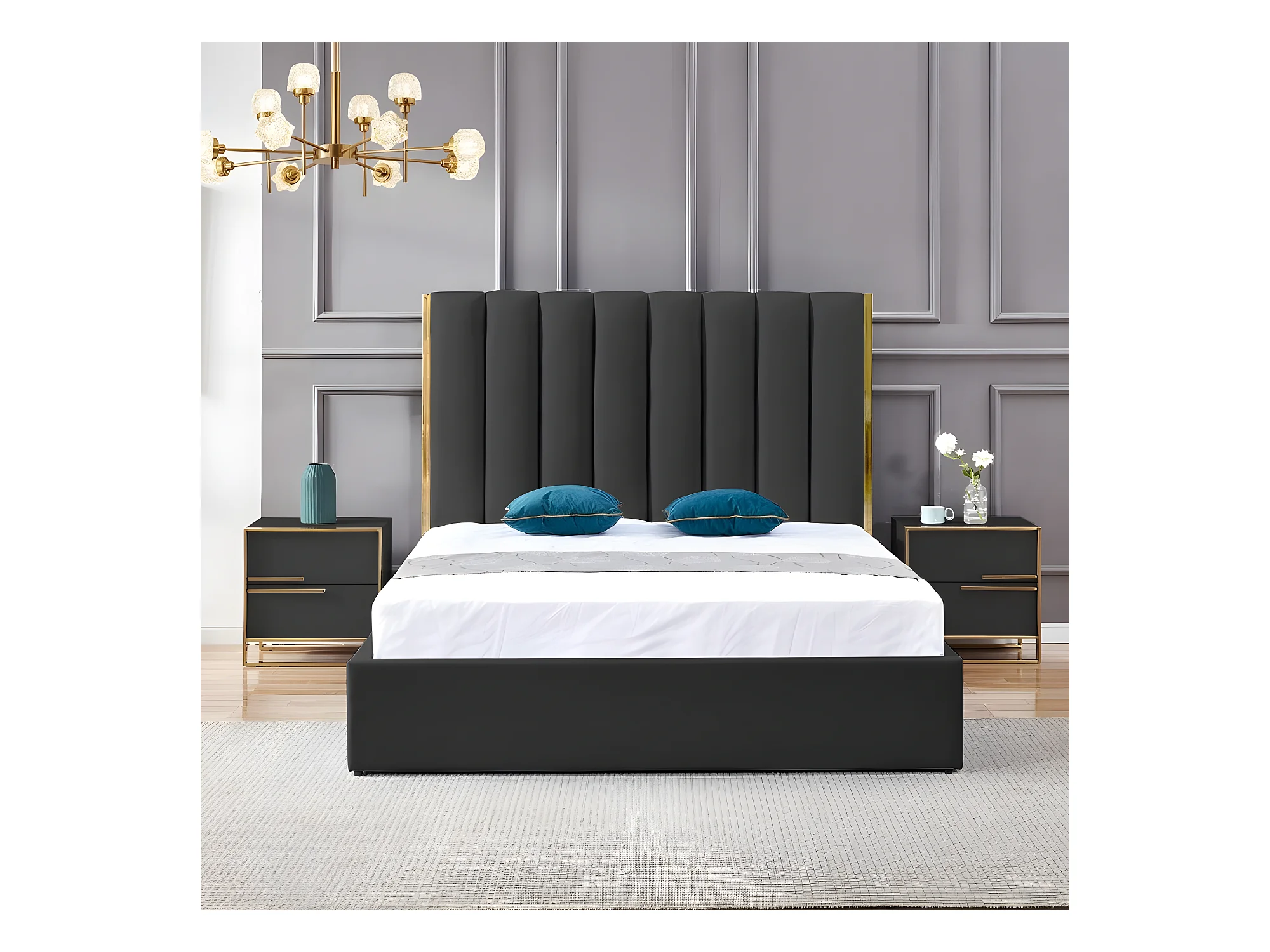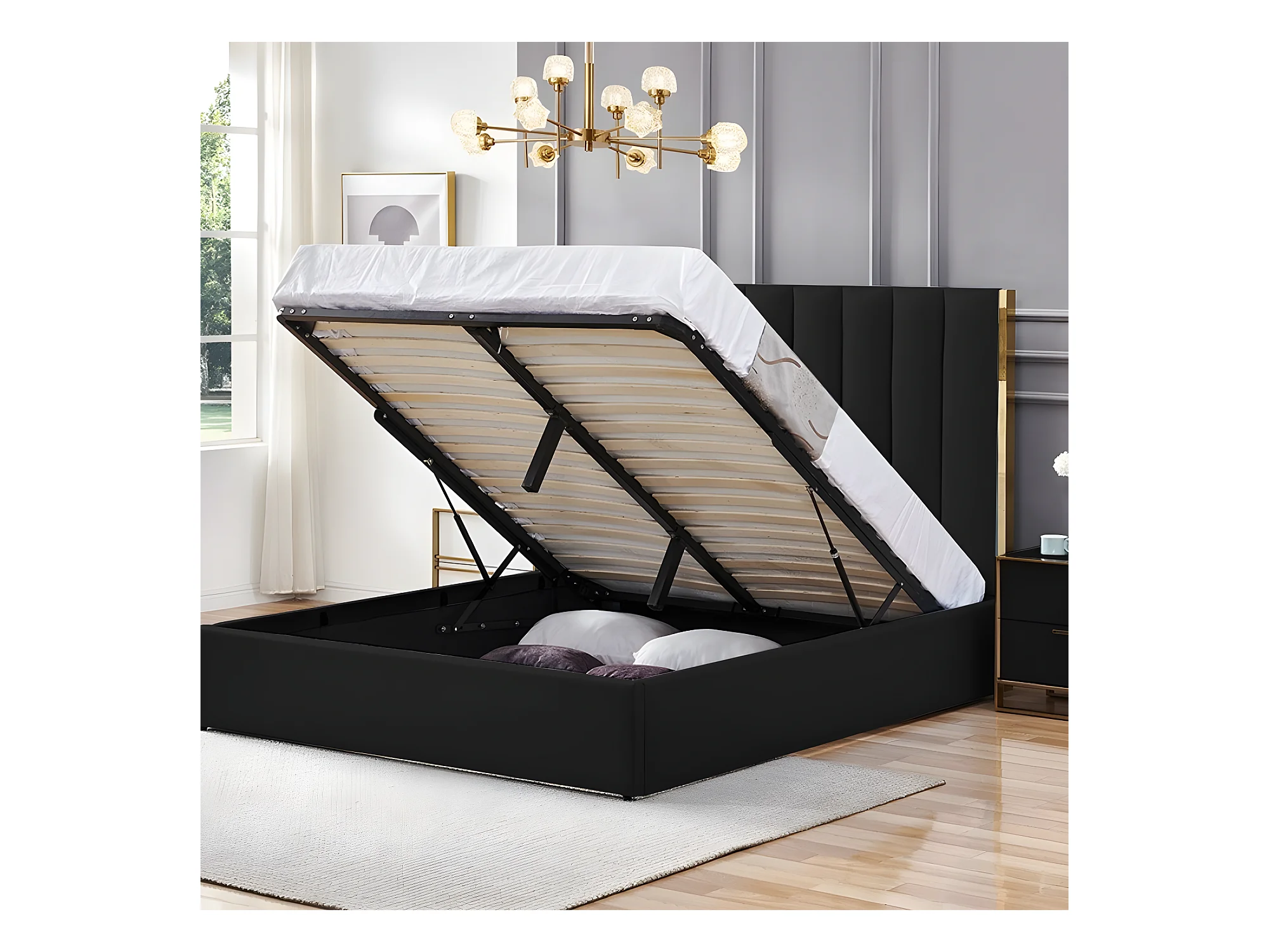 Lit Design Couleur Or Avec Coffre Veneto - Couleurs - Noir, Tailles - 160x200