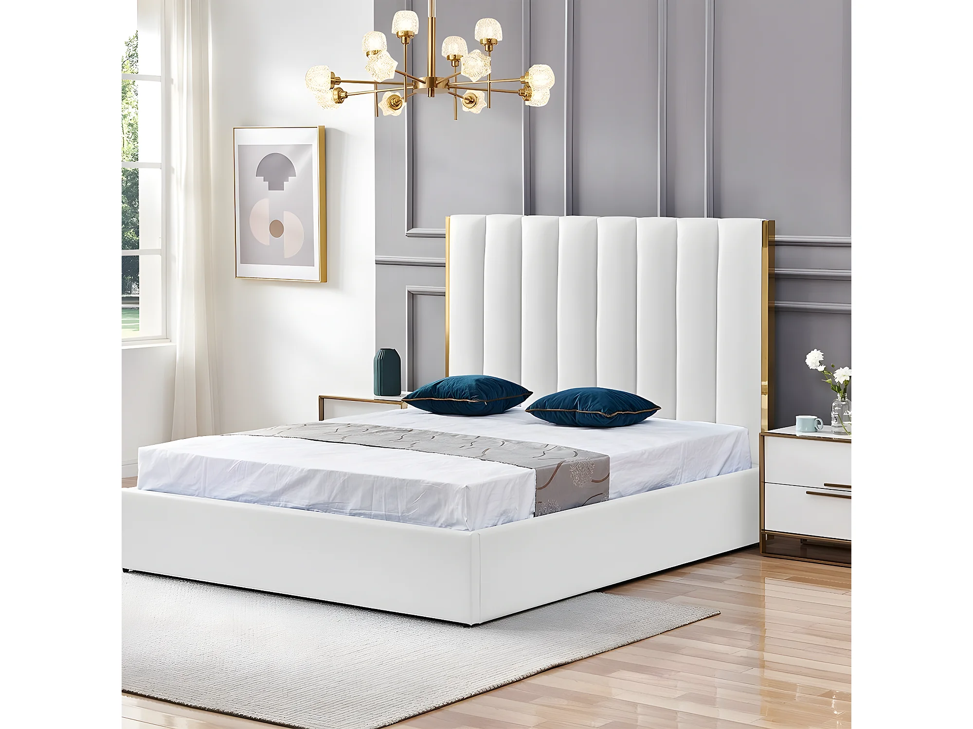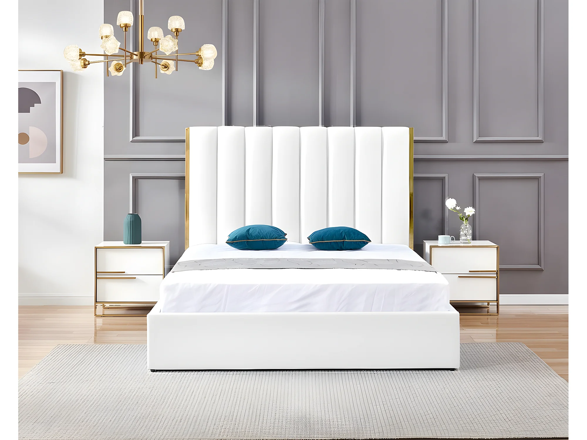 Lit Design Couleur Or Avec Coffre Veneto - Couleurs - Pu Blanc, Tailles - 160x200
