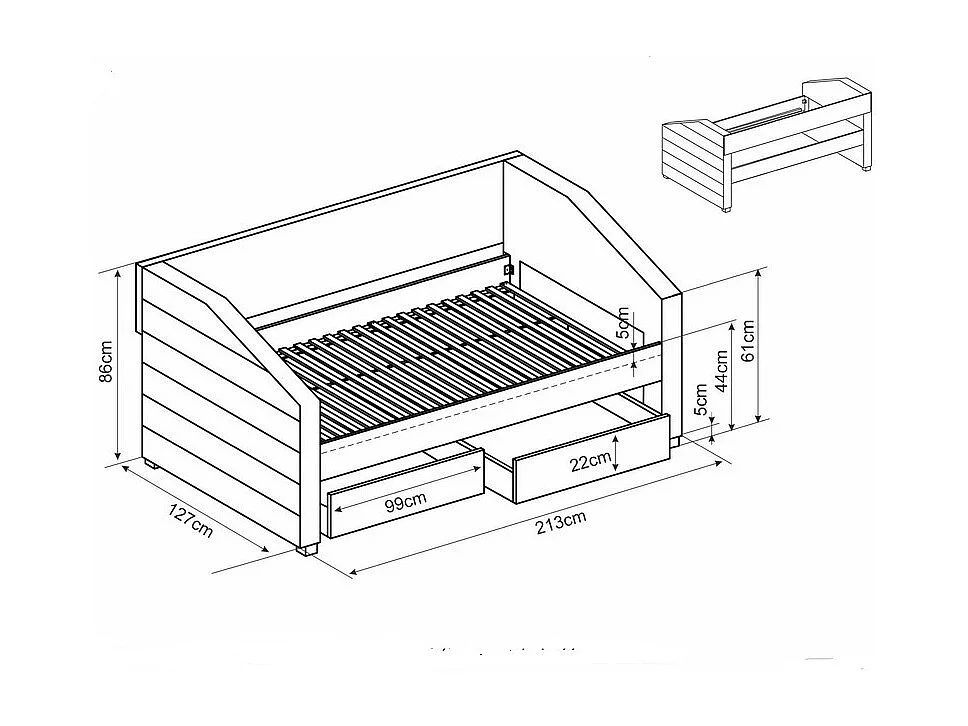 Lit design en velours gris 120 x 200 cm avec tiroirs Lolite