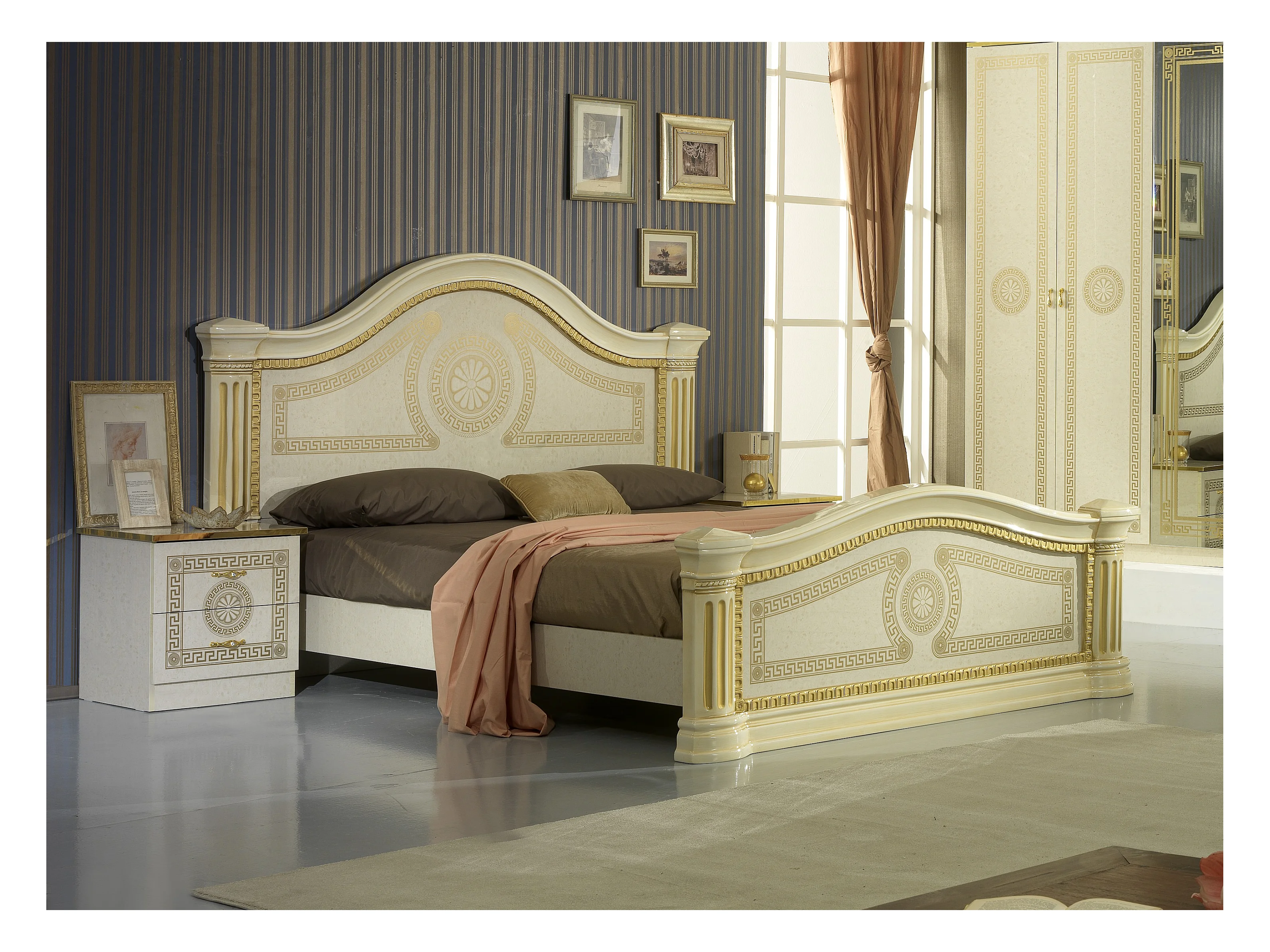 Lit design laqué beige et doré Savana 160x200