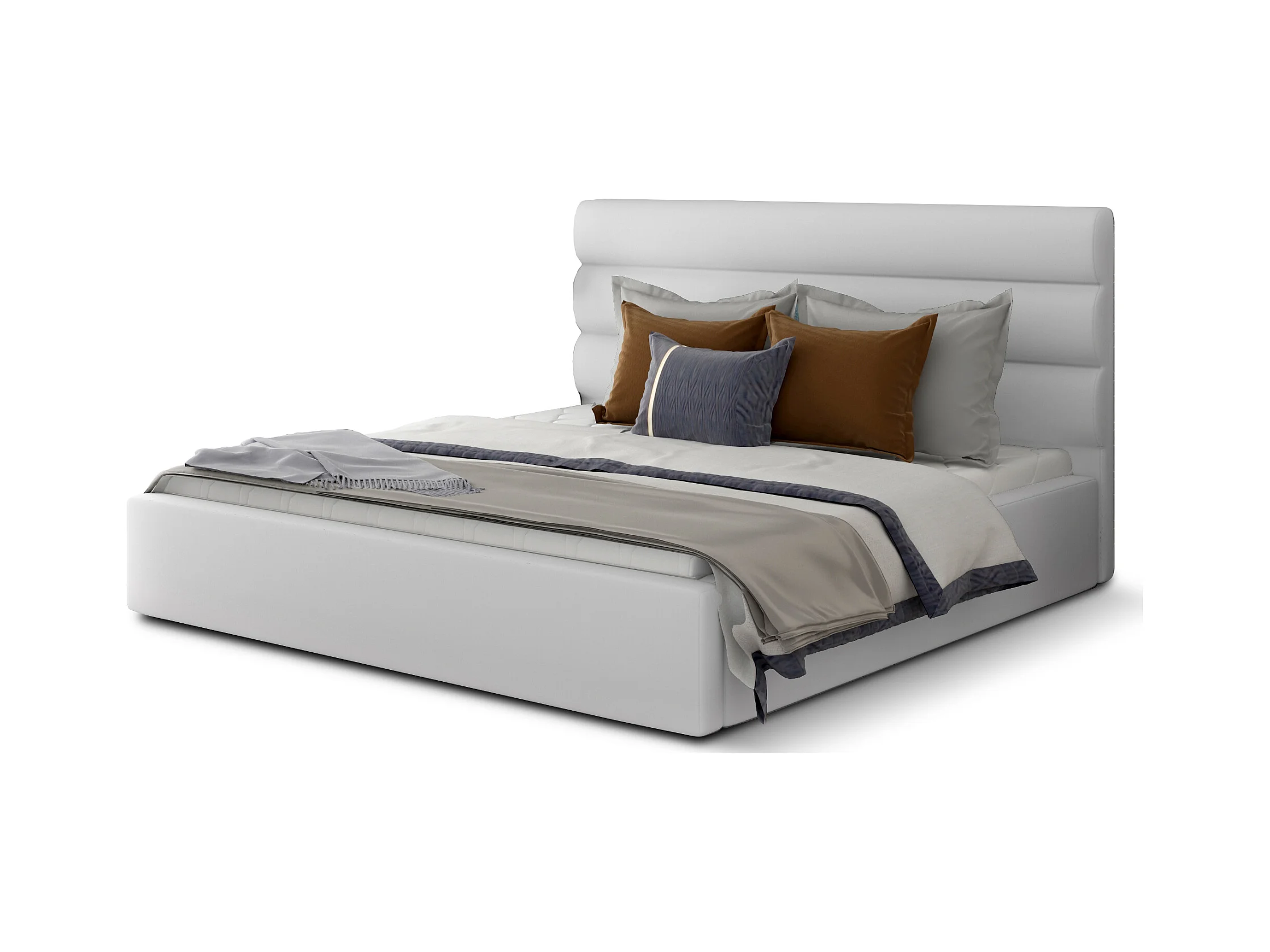 Lit design simili cuir blanc avec coffre de rangement Klarina - 4 tailles-160x200