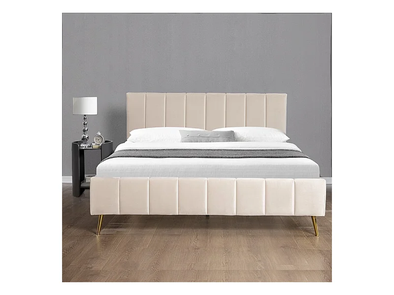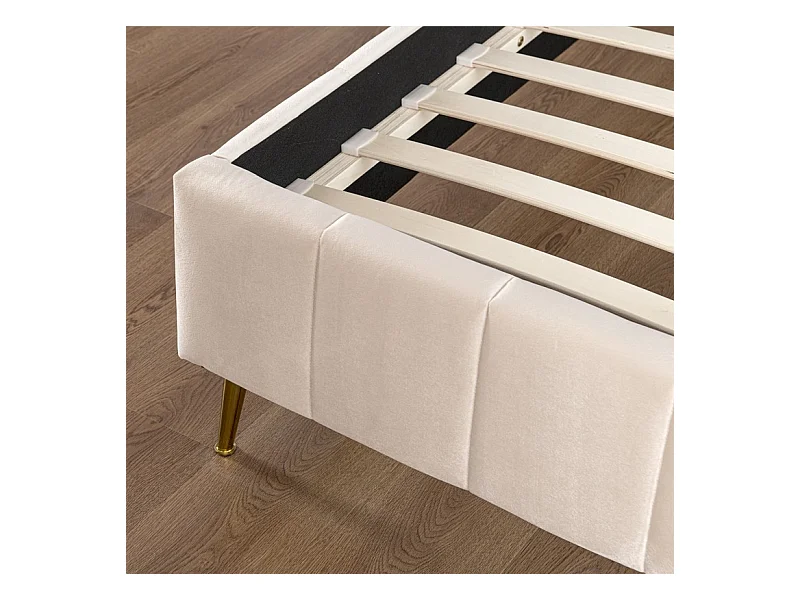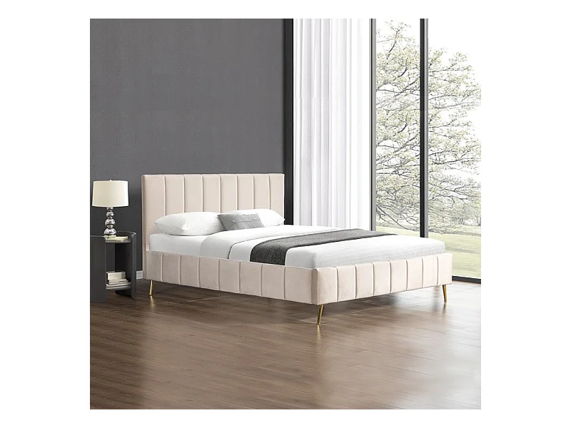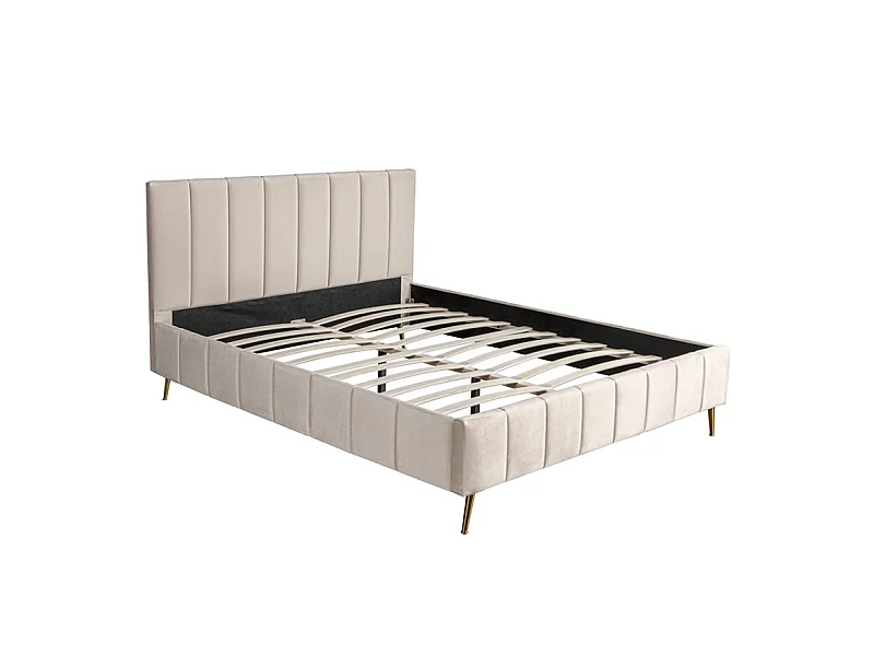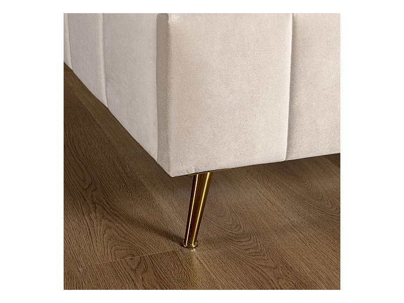 Lit Design Sommier Velours Pied Or Auster - Couleurs - Velours Beige, Tailles - 160x200