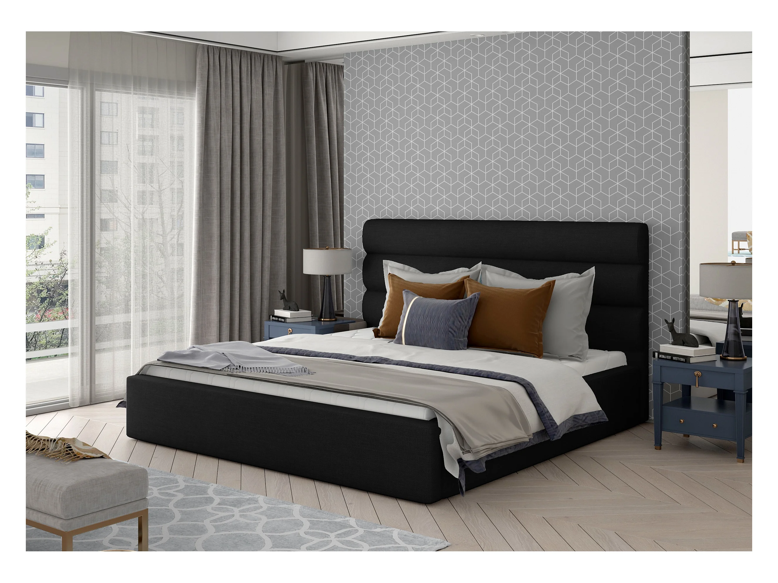 Lit design tissu noir avec coffre de rangement Klarina - 4 tailles-160x200