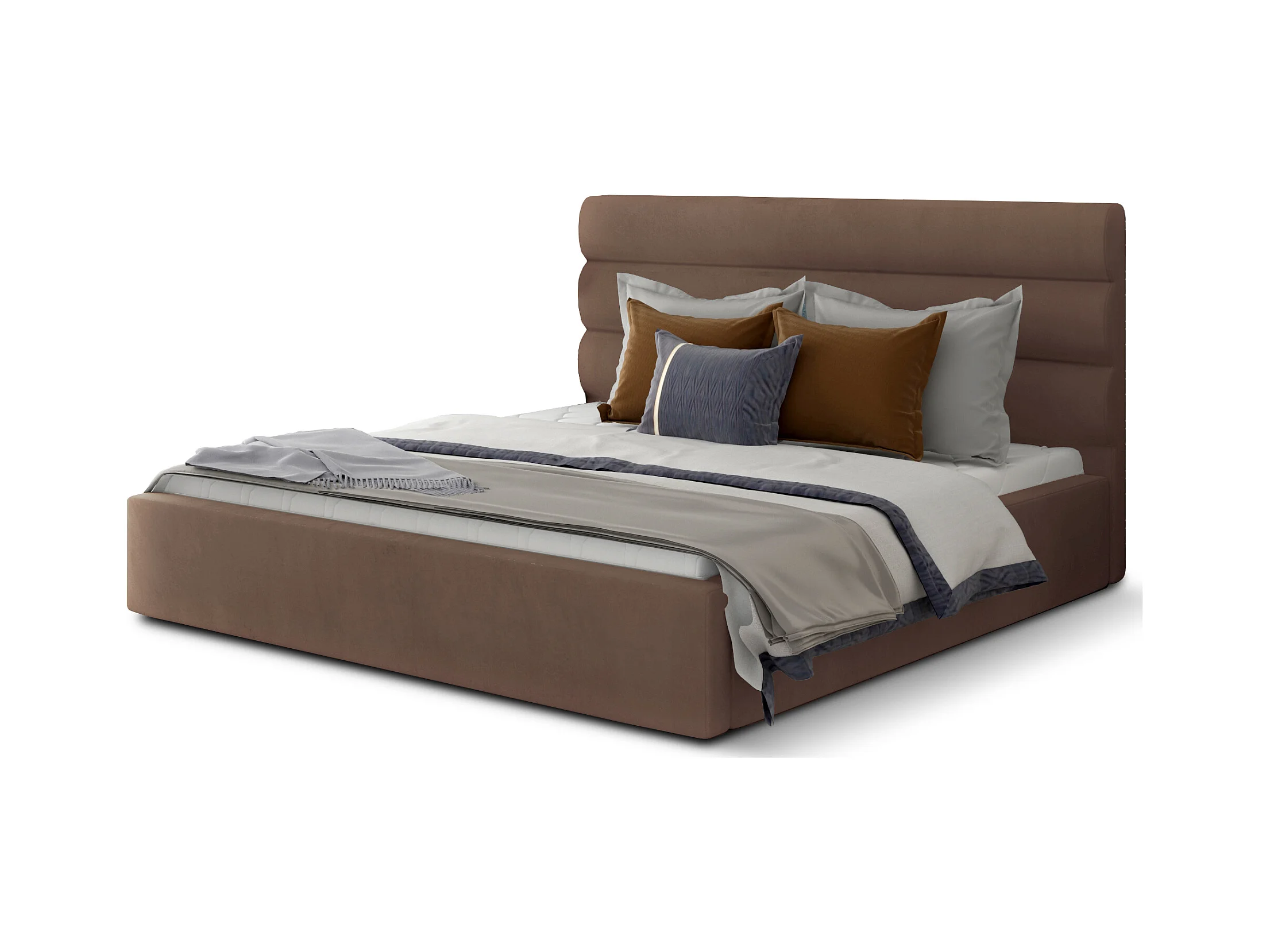 Lit design velours marron clair avec coffre de rangement Klarina - 4 tailles-180x200