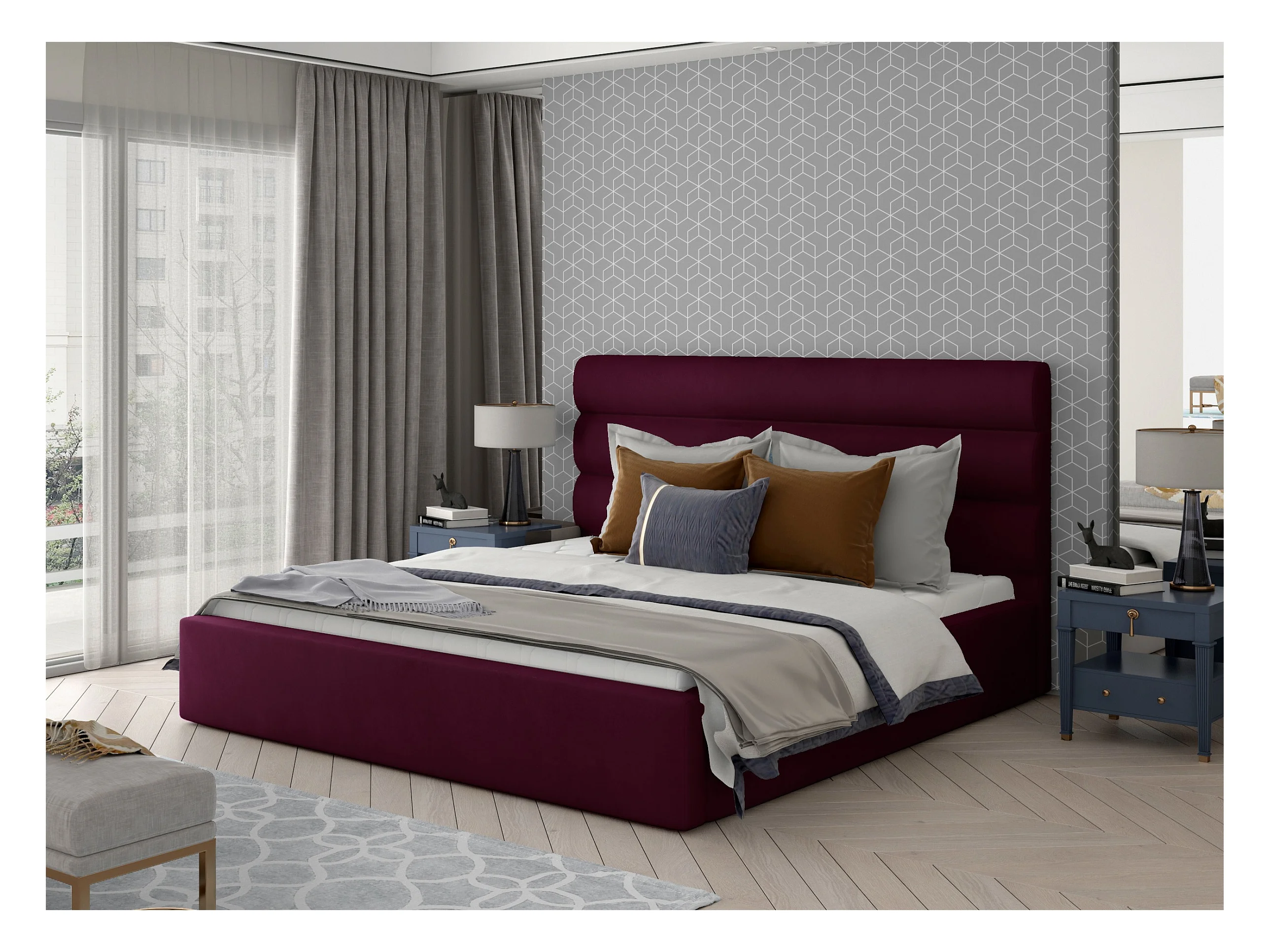 Lit design velours prune Klarina - 4 tailles-140x200