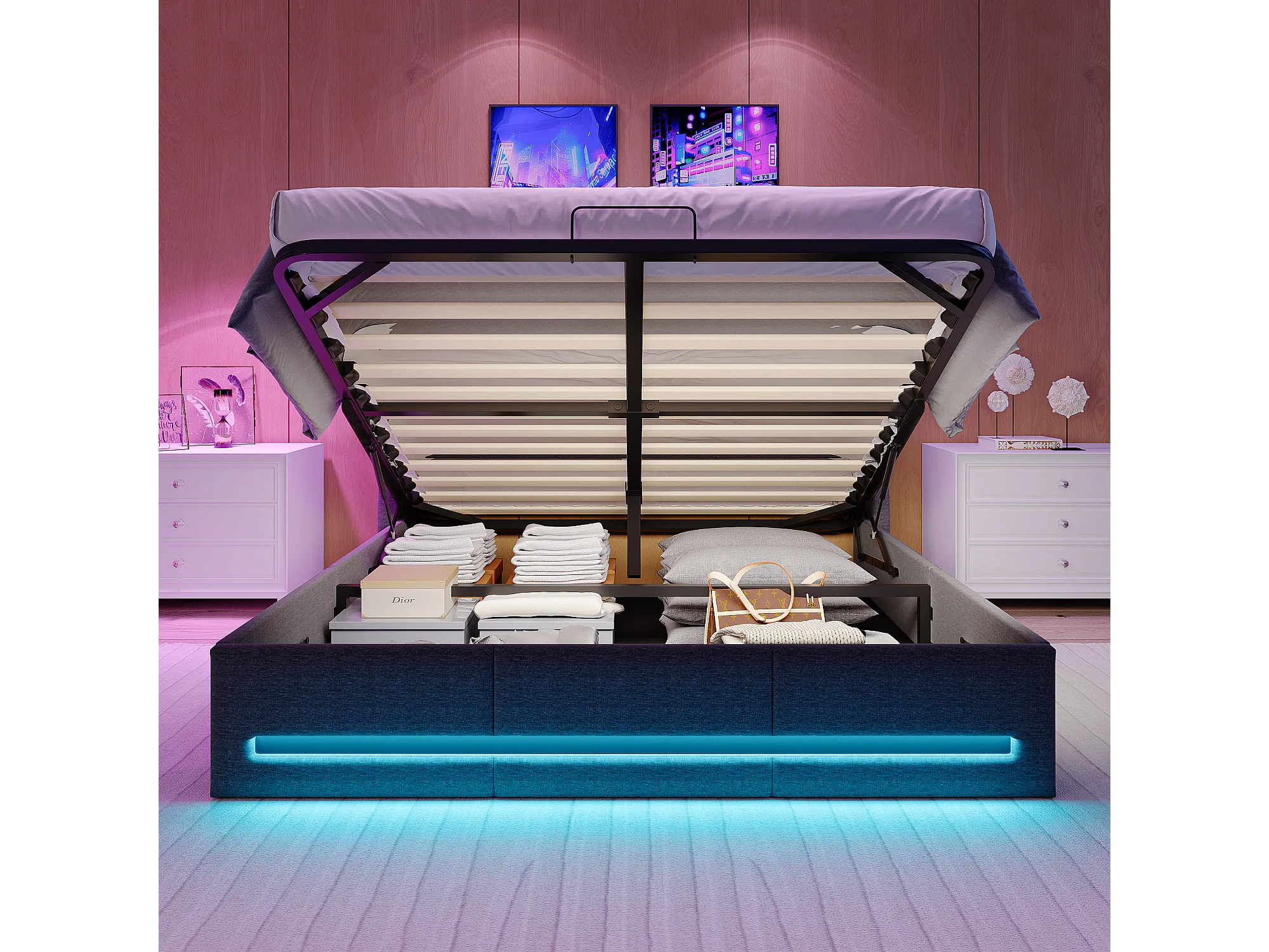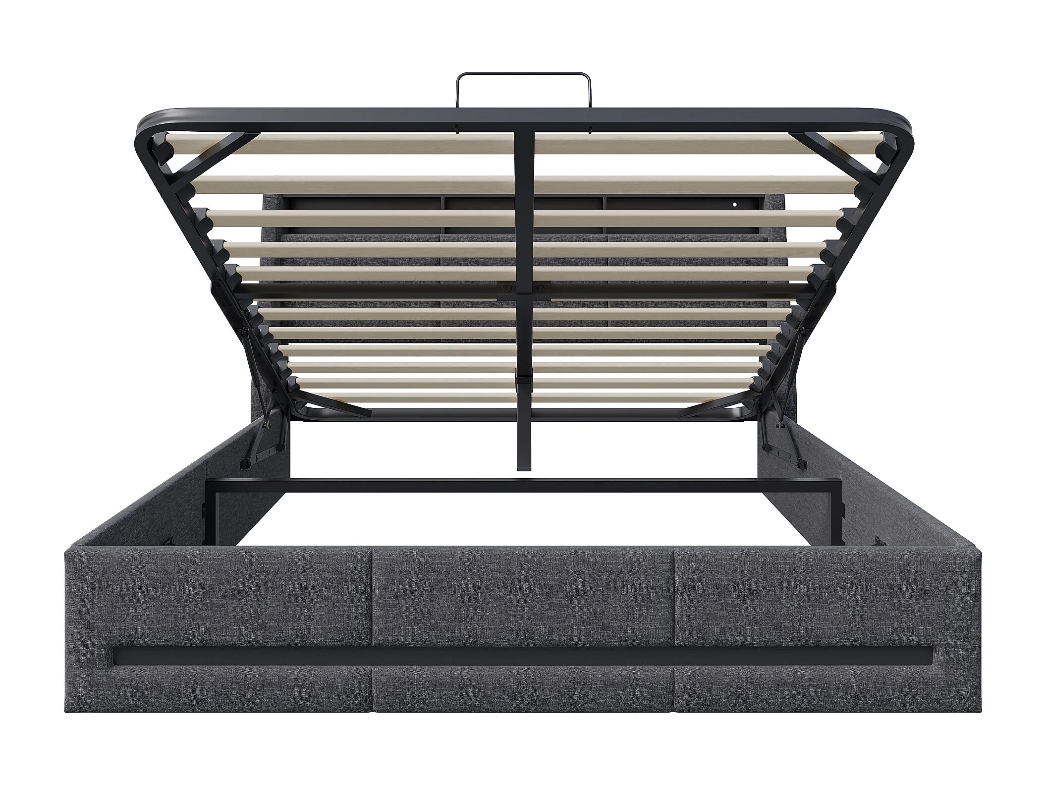 Lit double 140*190CM, armoire avec barre pneumatique, avec barre lumineuse et prise, gris,Chanvre