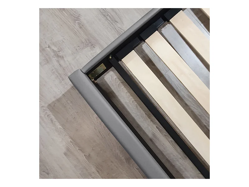 Lit double 140 x 190 cm en simili gris clair + sommier fixe - PANDORA