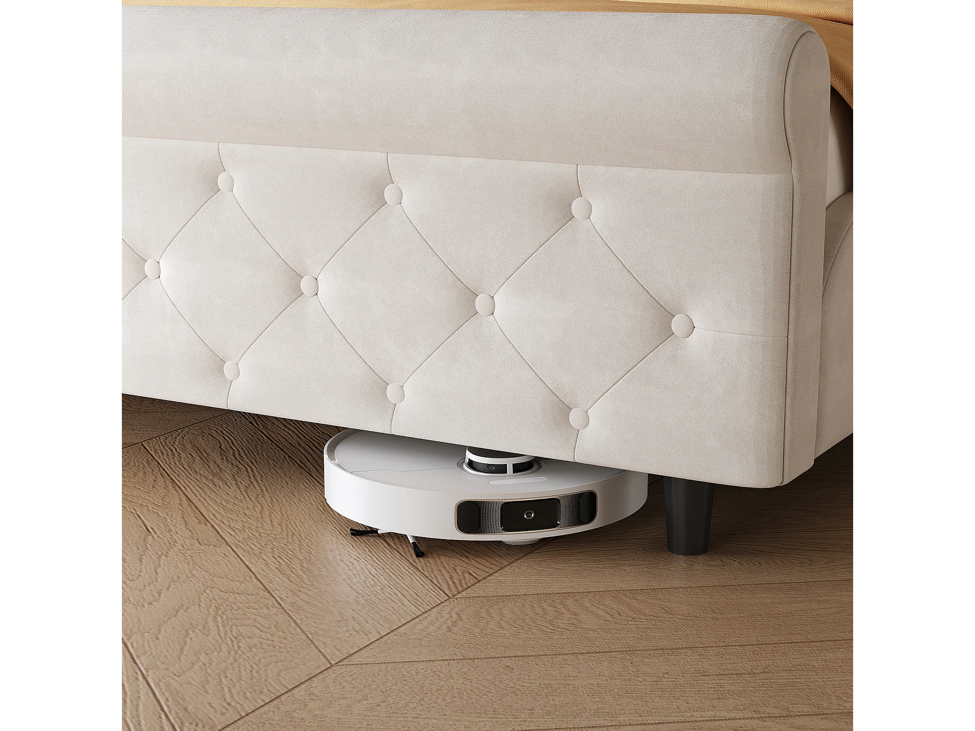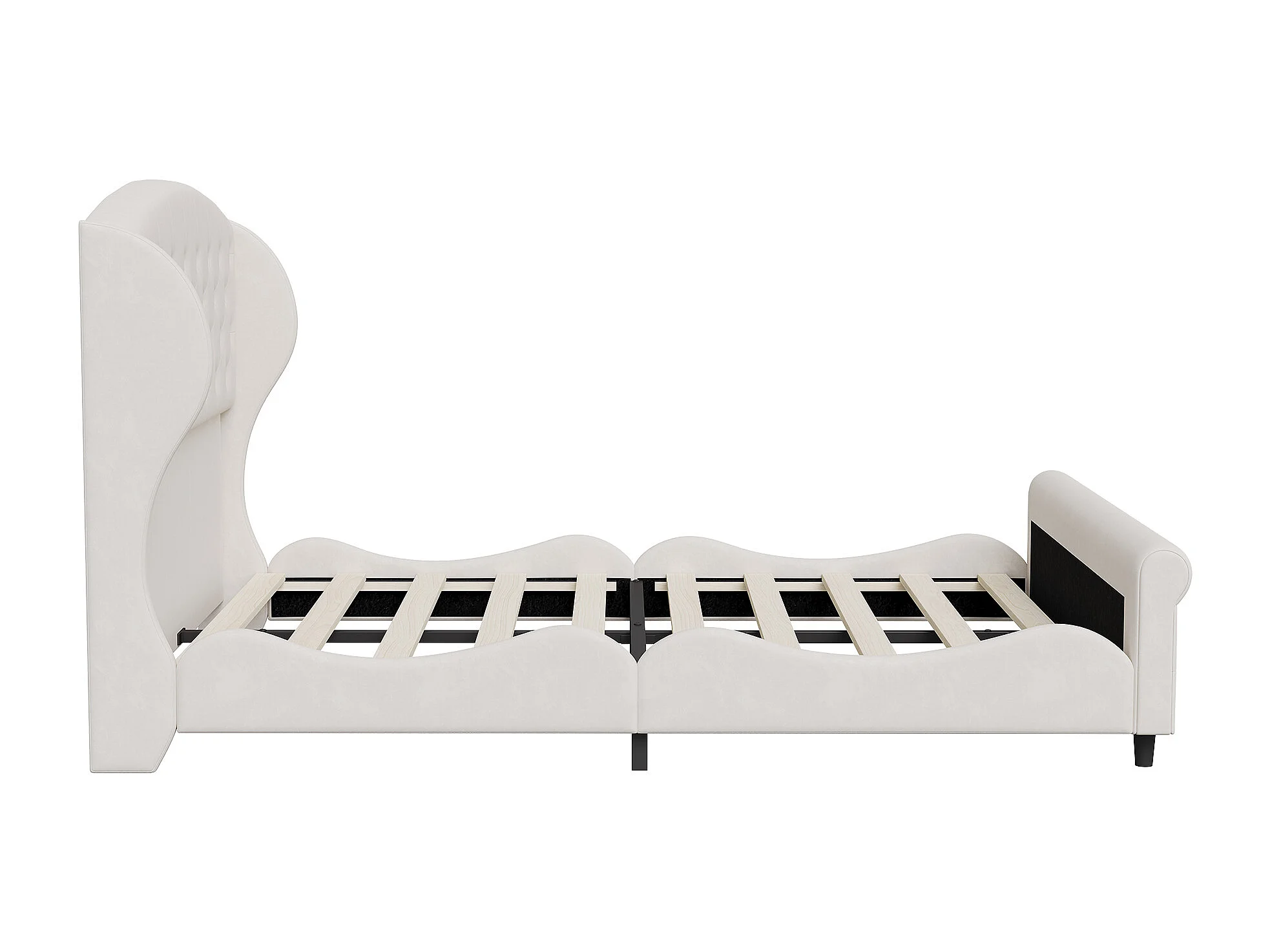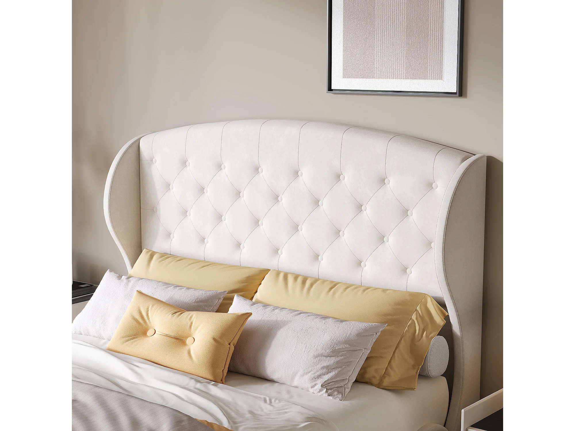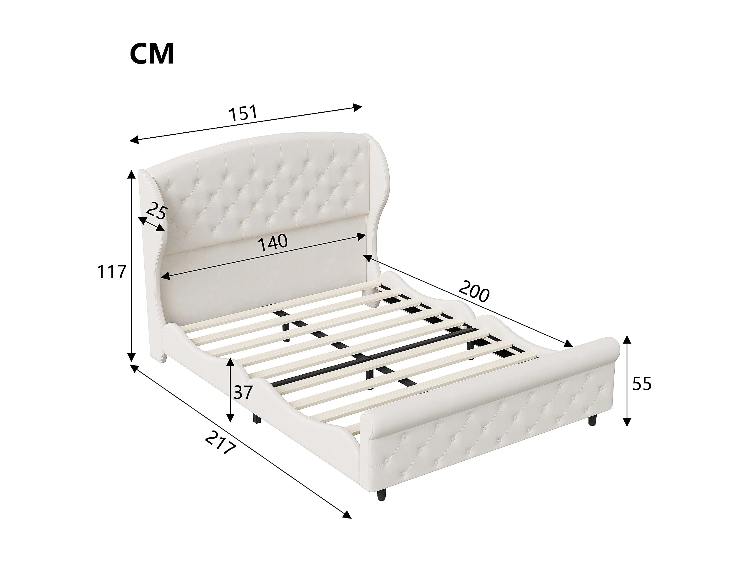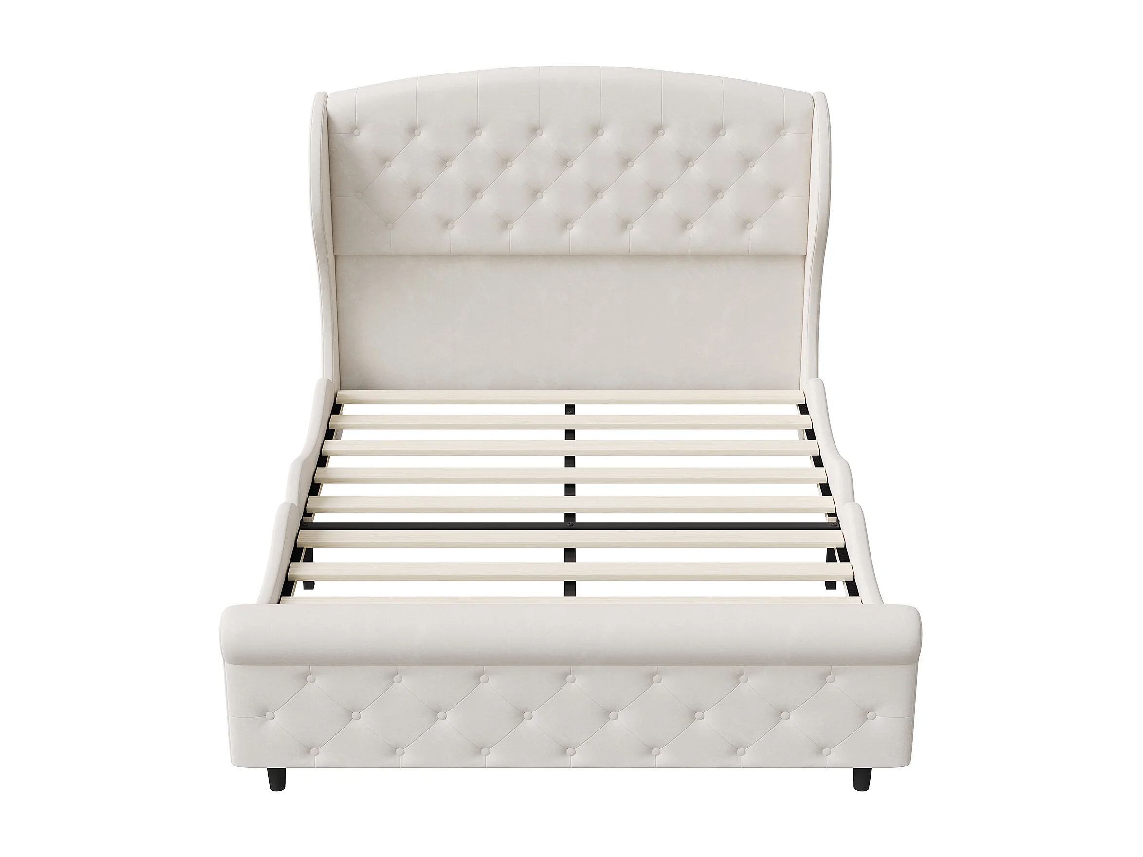 Lit double 140 x 200 cm, avec sommier à lattes et tête de lit, style européen, velours, beige