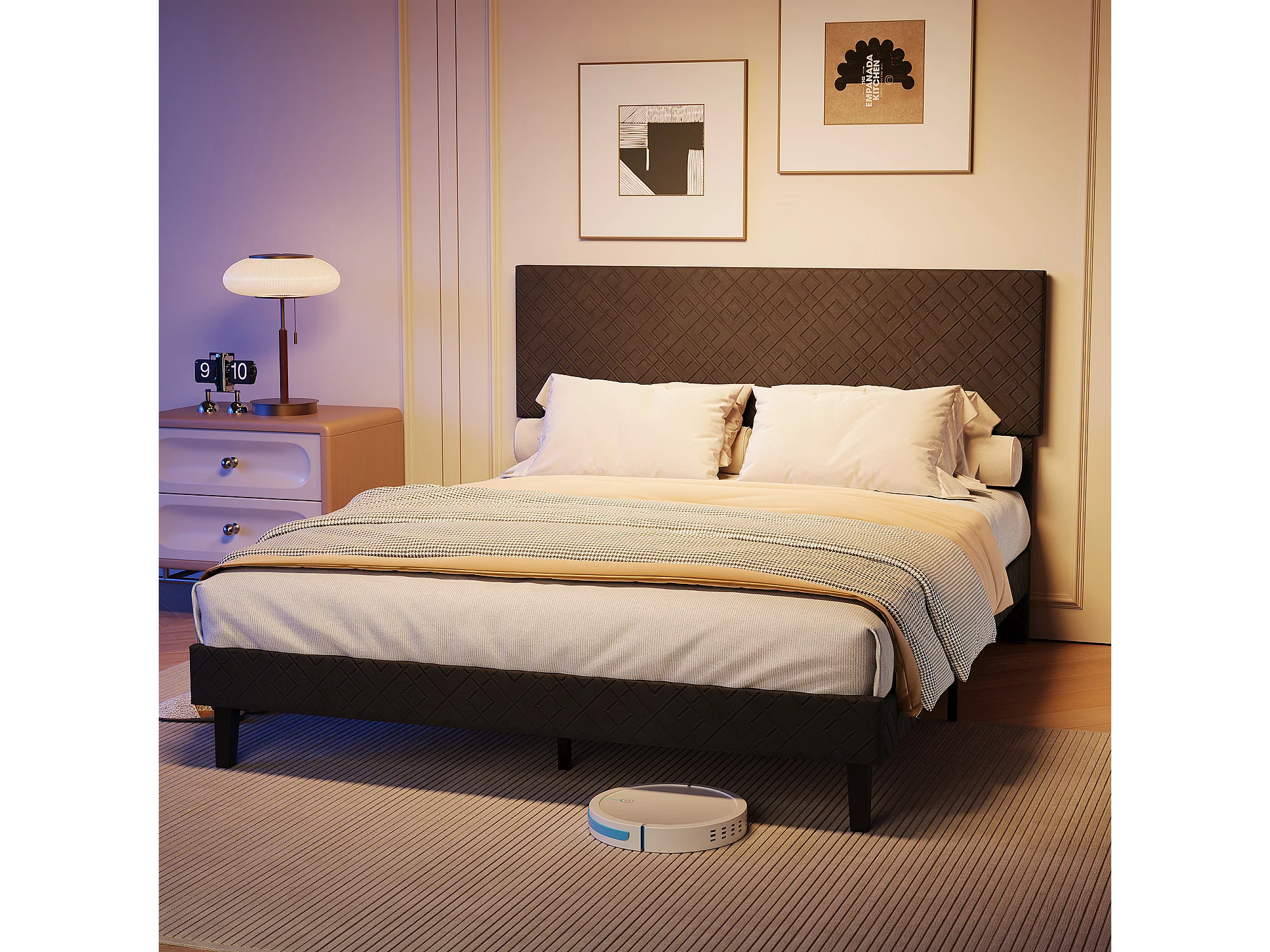 Lit double 140 x 200 cm avec sommier à lattes - tête de lit réglable en hauteur - robuste et durable - lin - gris