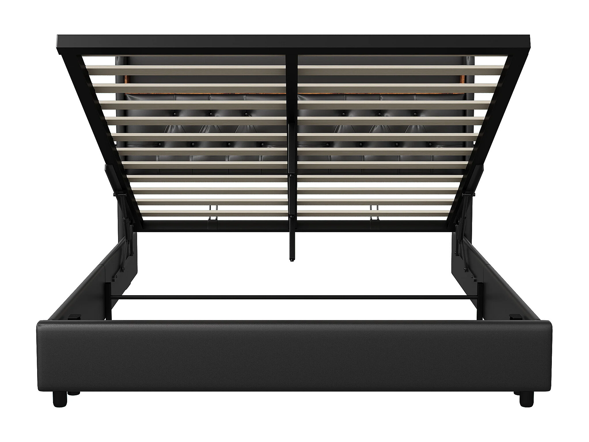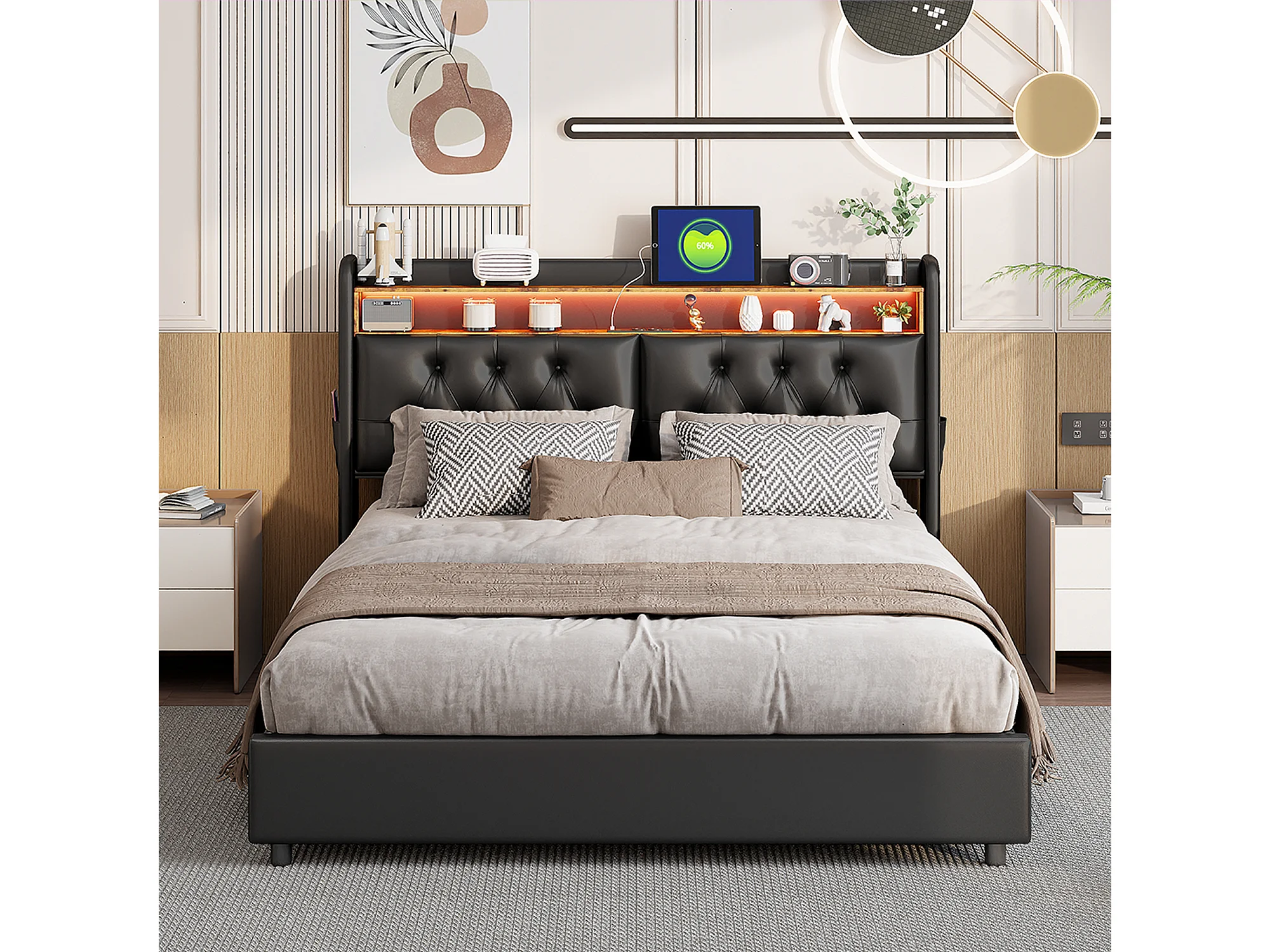 Lit double 140 x 200 cm, lit double avec USB et LED, lit rembourré avec sommier à lattes, PU, Noir