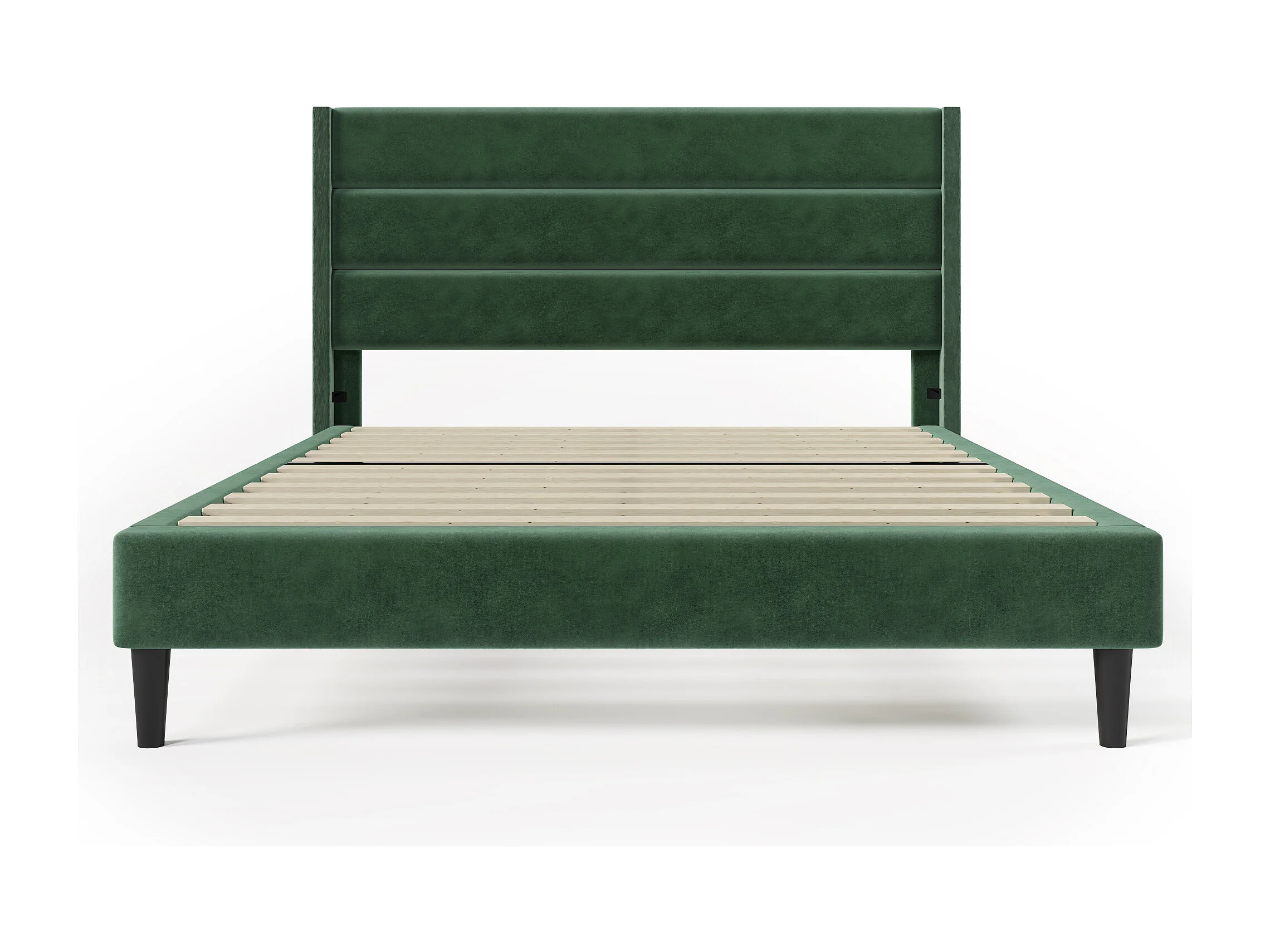 Lit double 140 x 200 cm, sommier à lattes et tête de lit, design moderne, Velours vert foncé, sans matelas